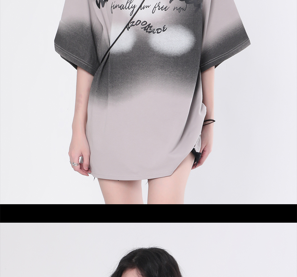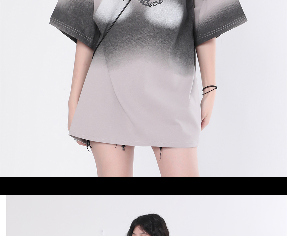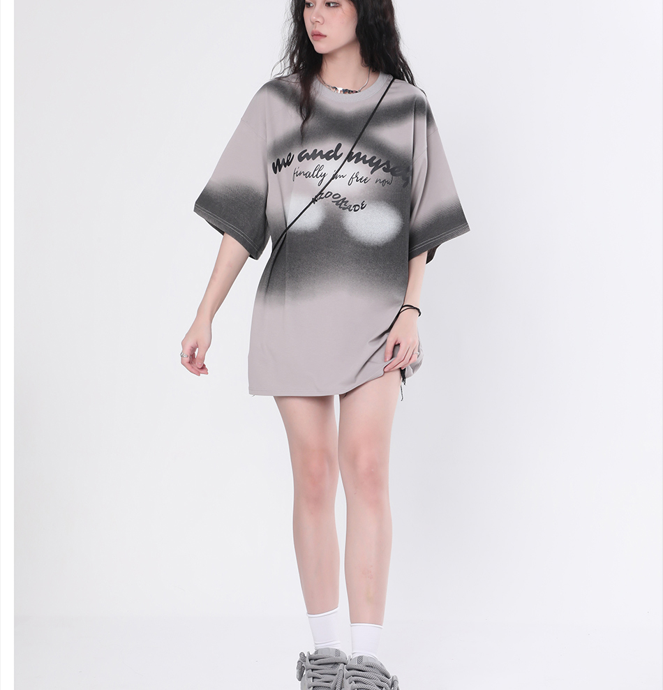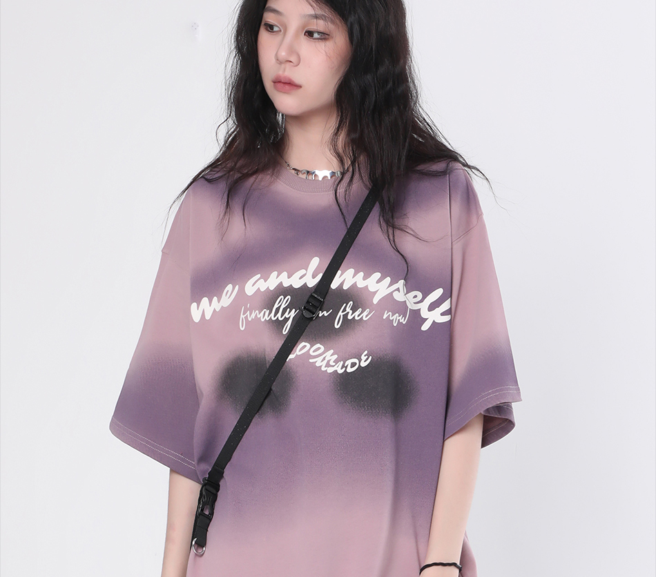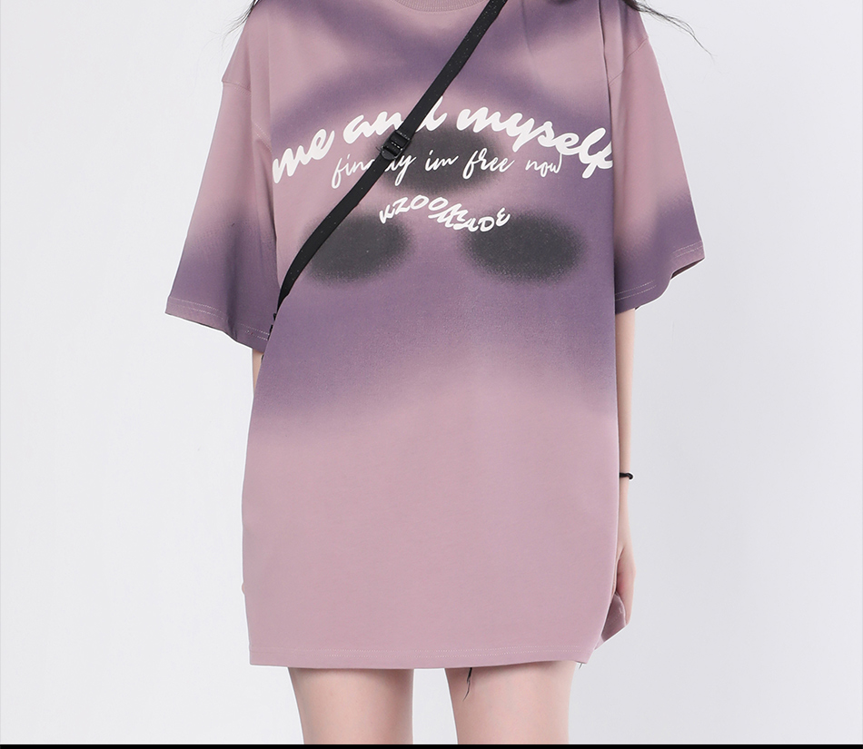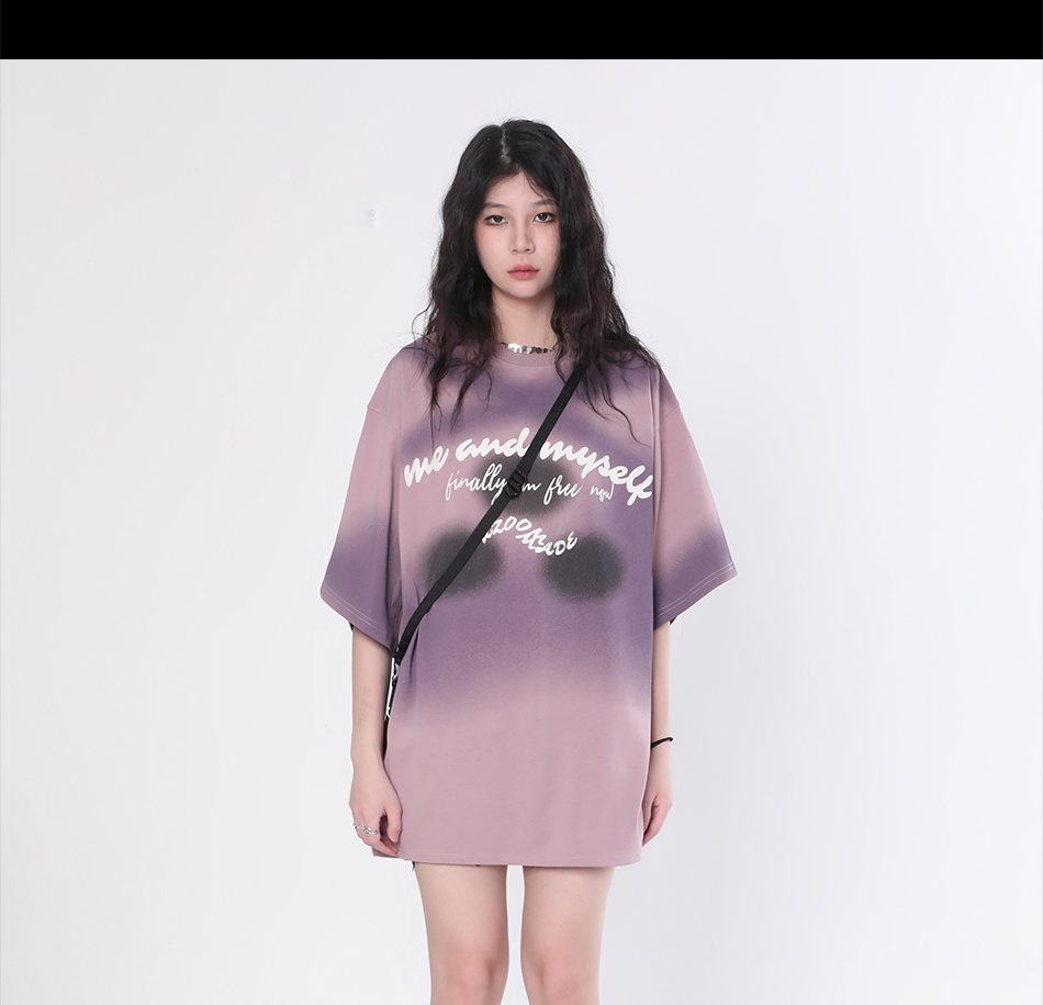 【坐吃山空】夏季圓領短袖T恤女復古小眾設計感漸層紮染寬鬆上衣