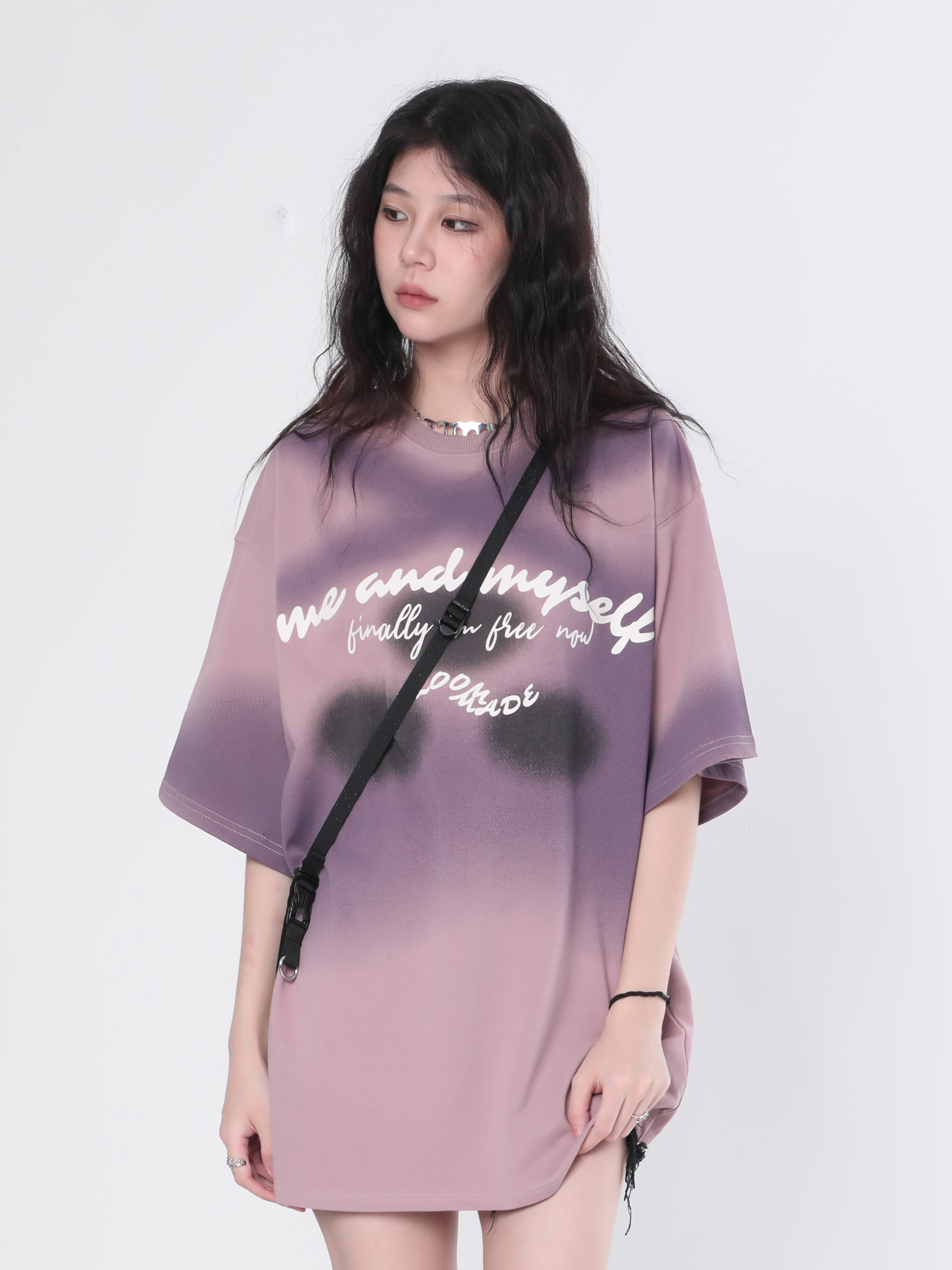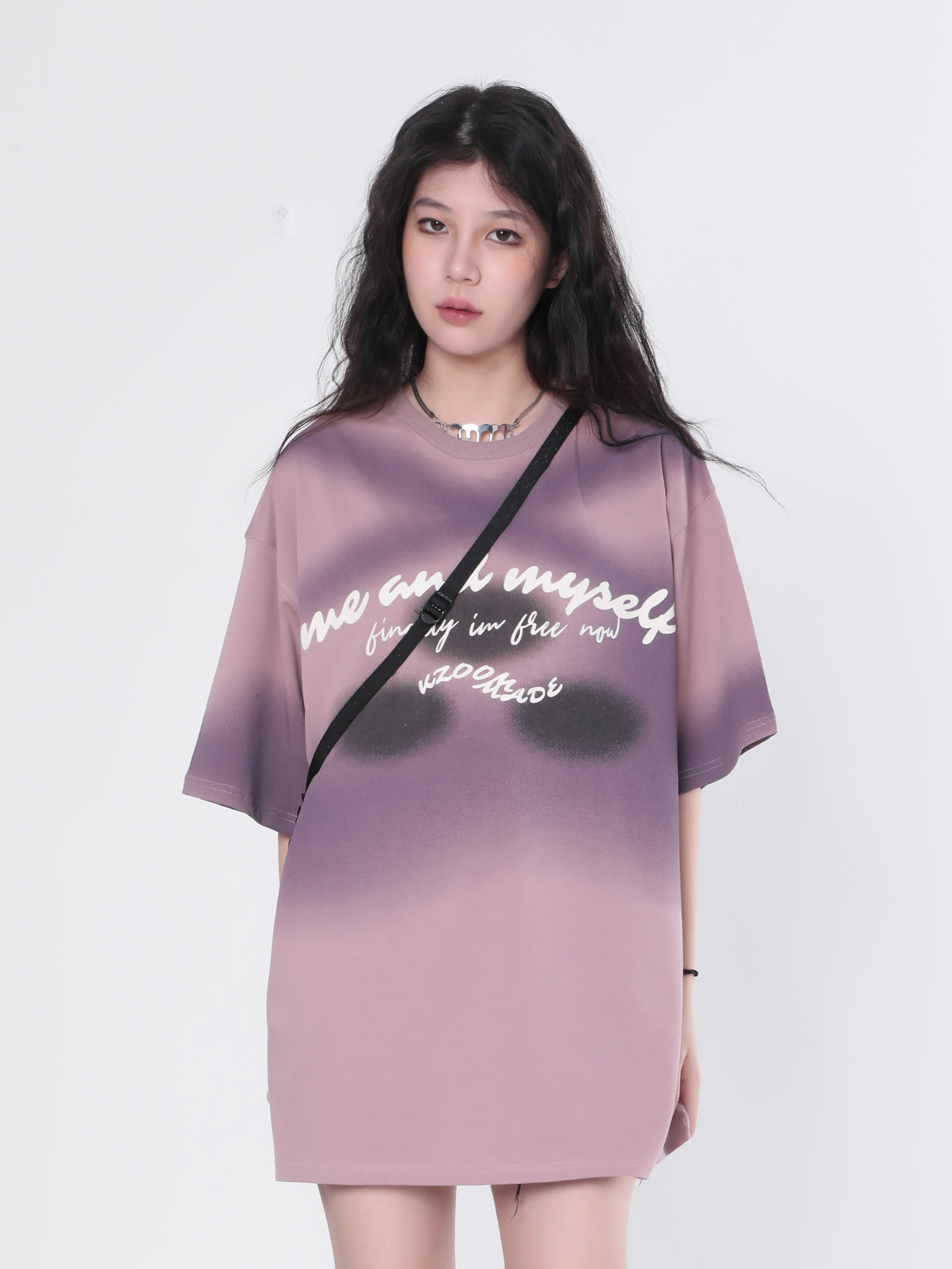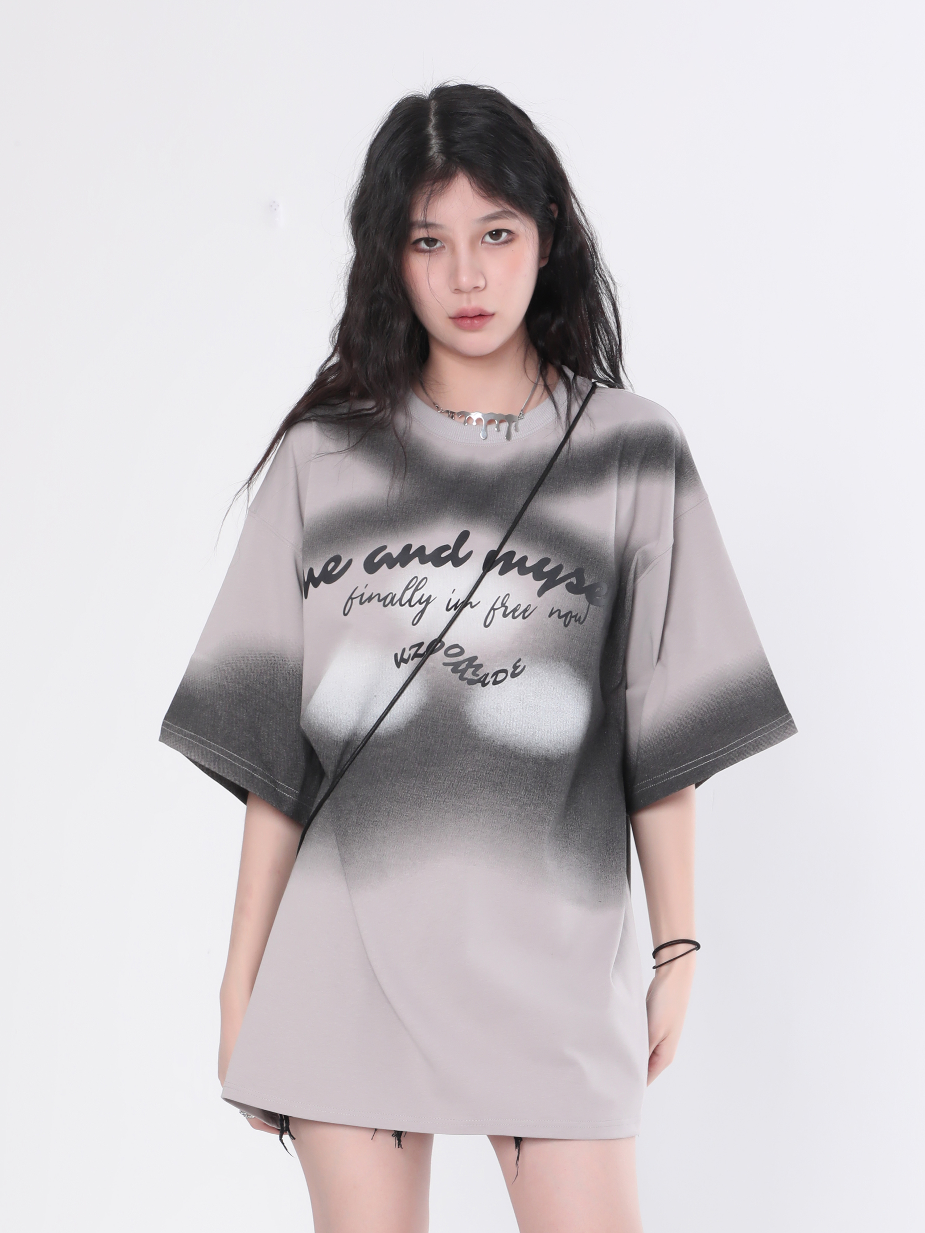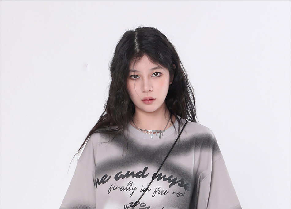 【坐吃山空】夏季圓領短袖T恤女復古小眾設計感漸層紮染寬鬆上衣