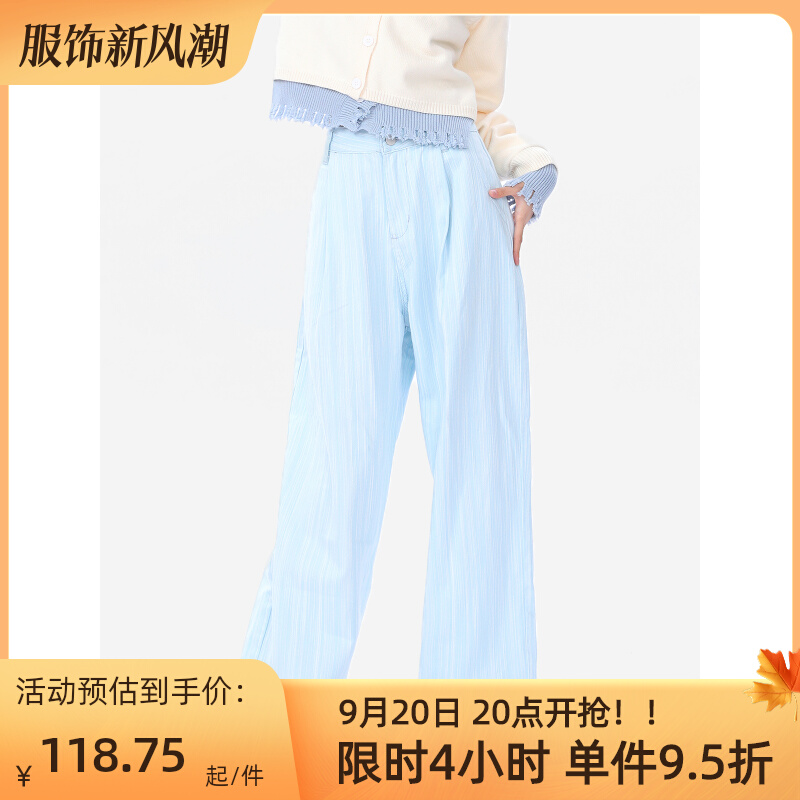 WEYWOT多巴胺穿搭新款直筒牛仔褲女夏季甜酷寬鬆肌理感闊腿拖地褲
