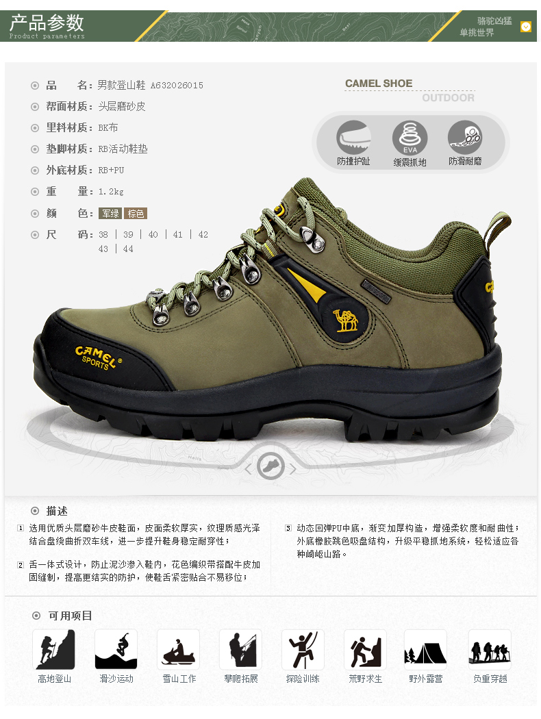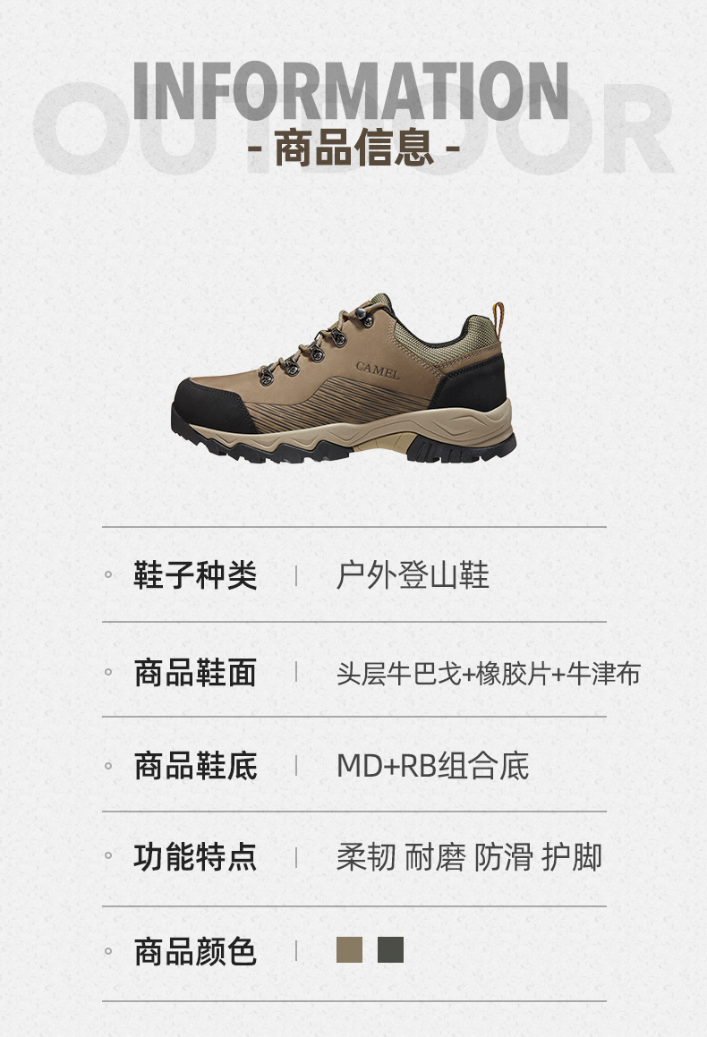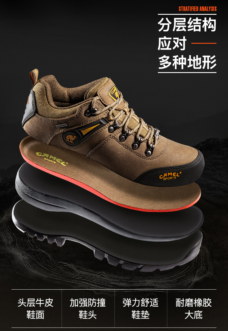 駱駝戶外登山鞋夏季防滑低幫耐磨男士徒步鞋男牛皮鞋潮流運動男鞋