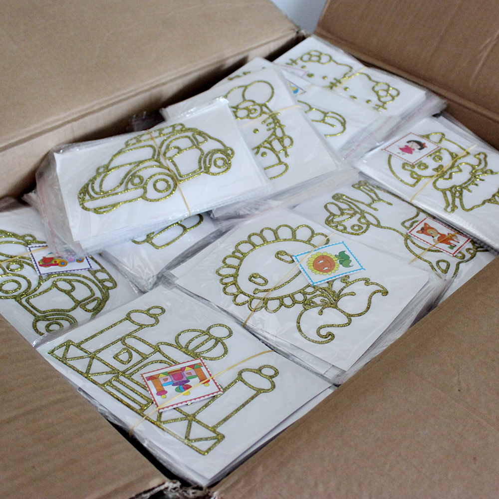 如需选图,单款500套以上即可。包装上10套一个图案,订量越多,图案混装越多。