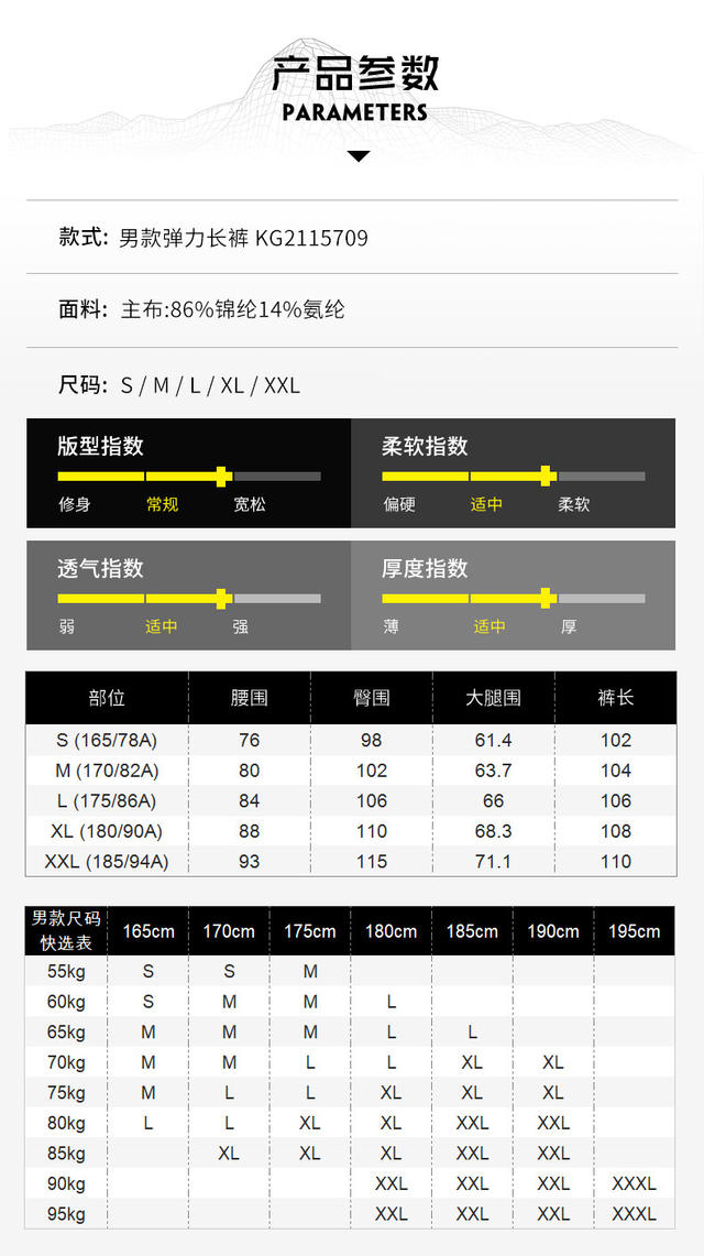 21款凱樂石戶外速乾褲夏季薄款透氣運動男款彈力快乾長褲5709