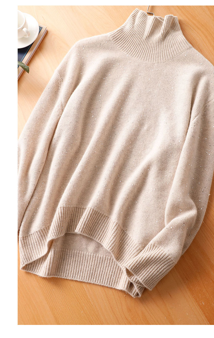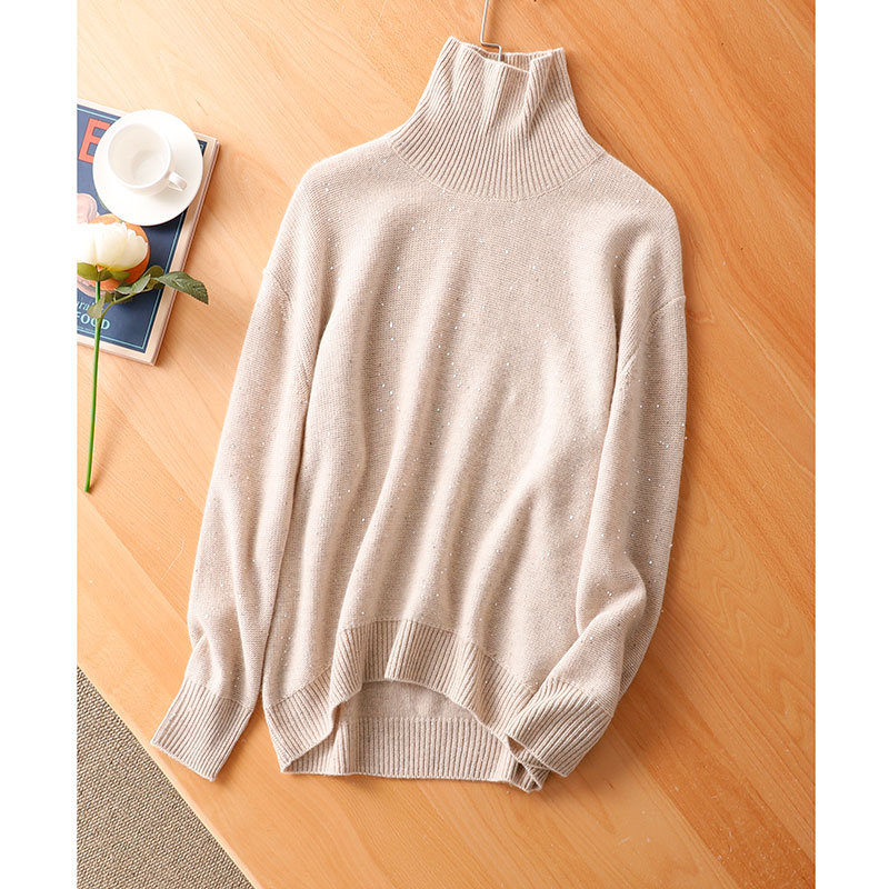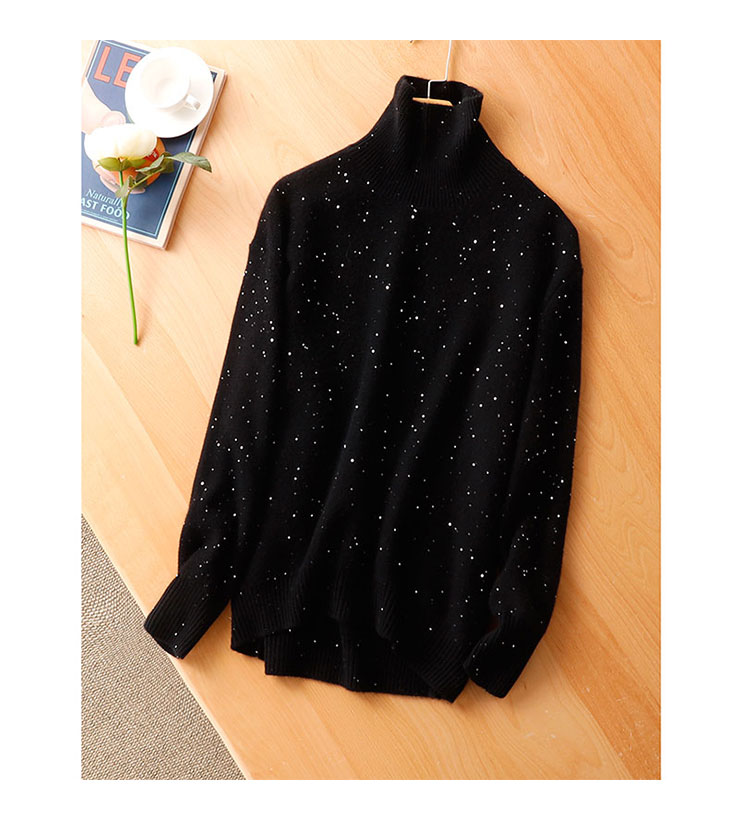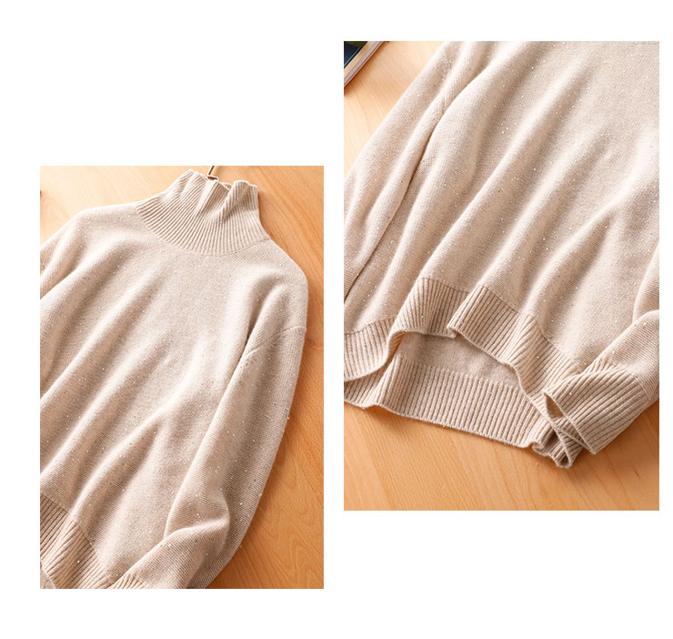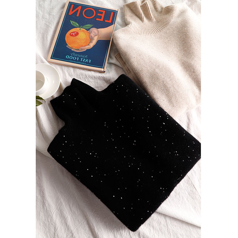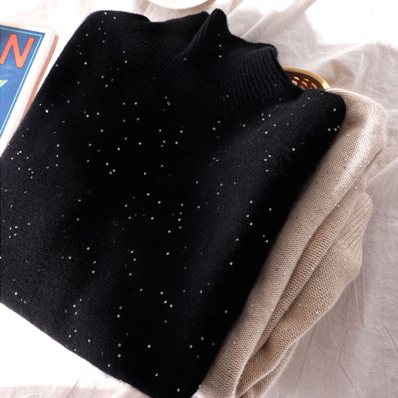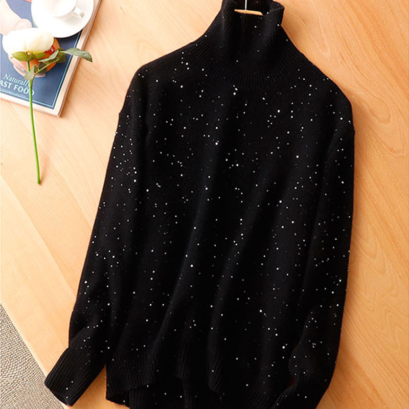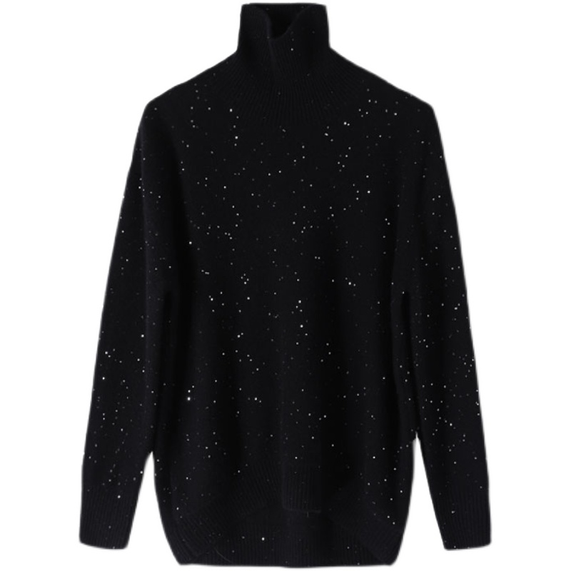 隱隱星辰閃光亮片山羊絨女式寬鬆高領時尚針織衫亮絲加厚打底毛衣