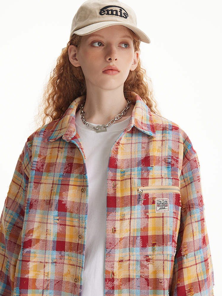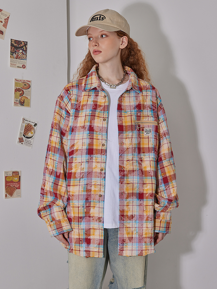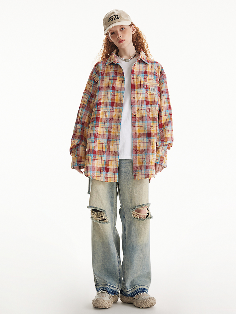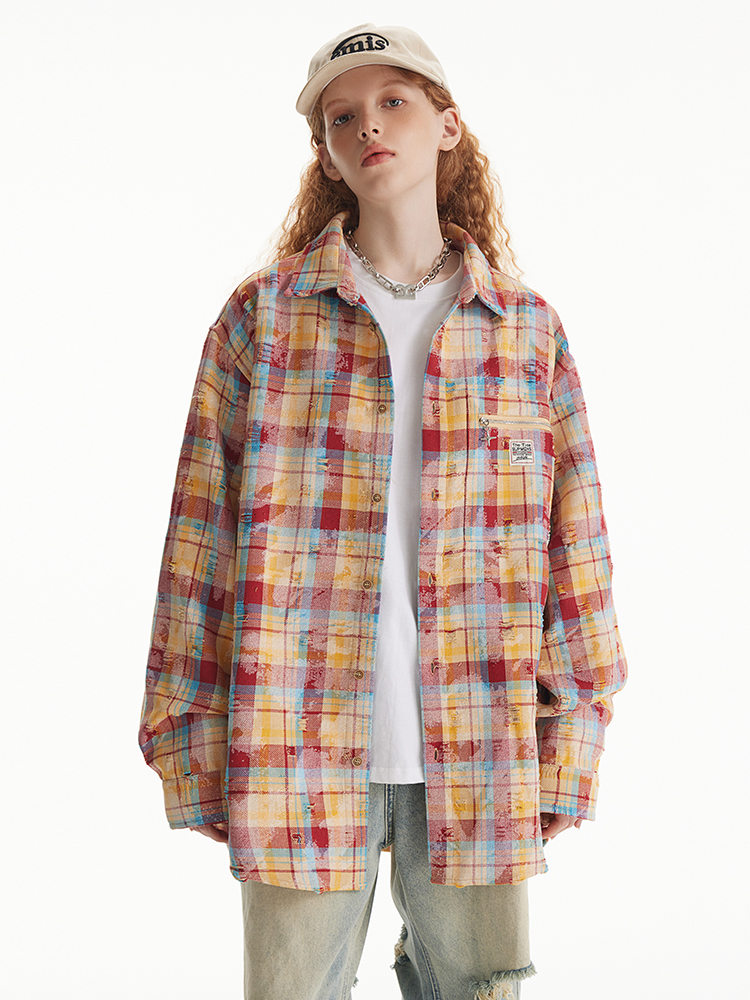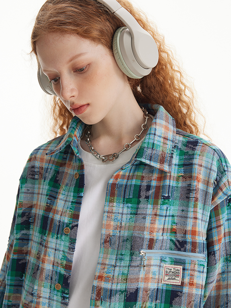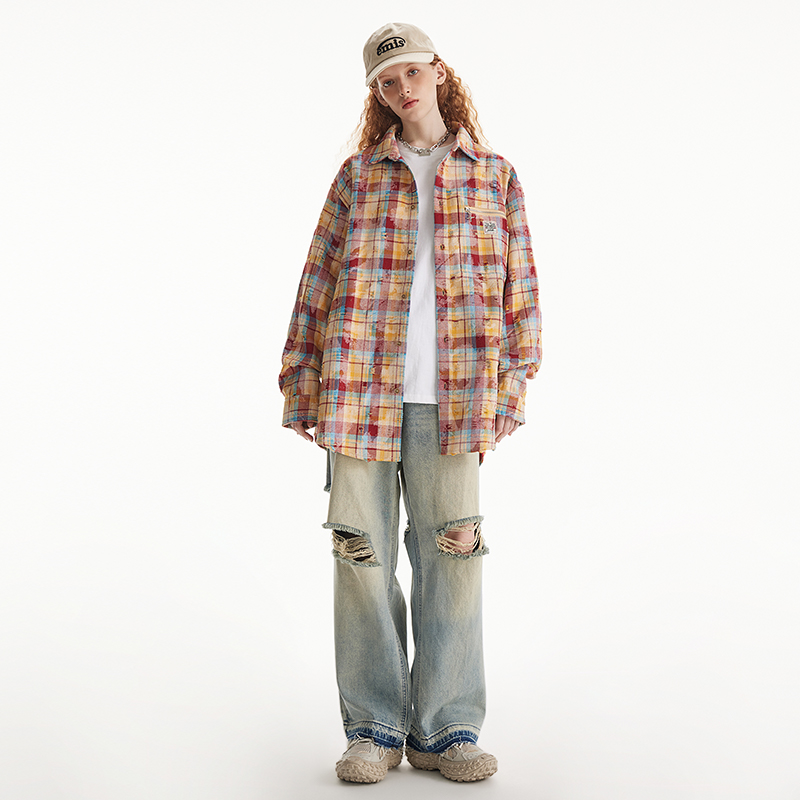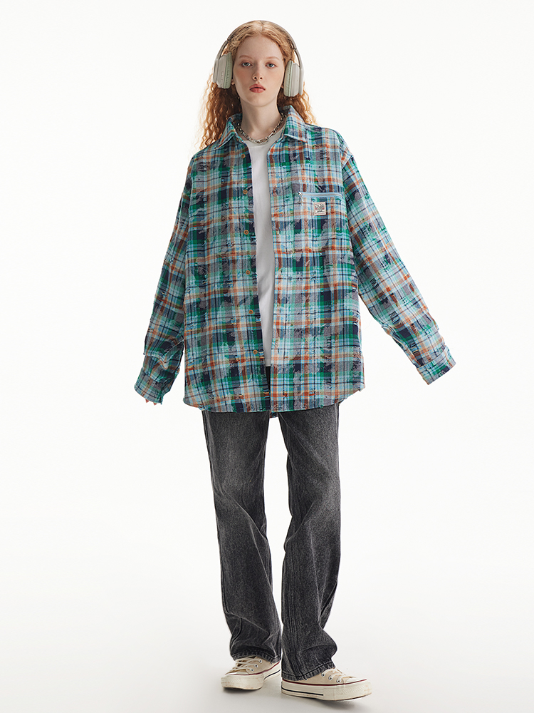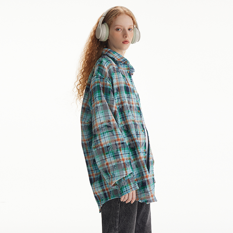 BEETLE TOWN 格子長袖襯衫女秋百搭基礎休閒薄款開衫上衣男女同款
