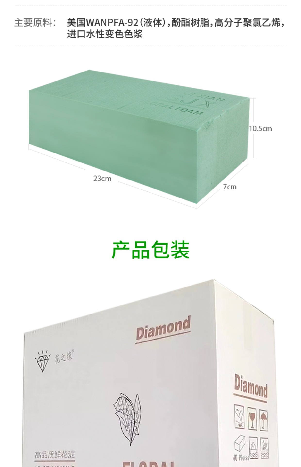 颜色 花之缘®️鲜花泥40块装,经济型鲜花泥40块装,花之缘(40块装钻石品质)视频同款,4块钻石款鲜花泥尝鲜装,花之缘®️高品质40块装(单块塑封)不脏手