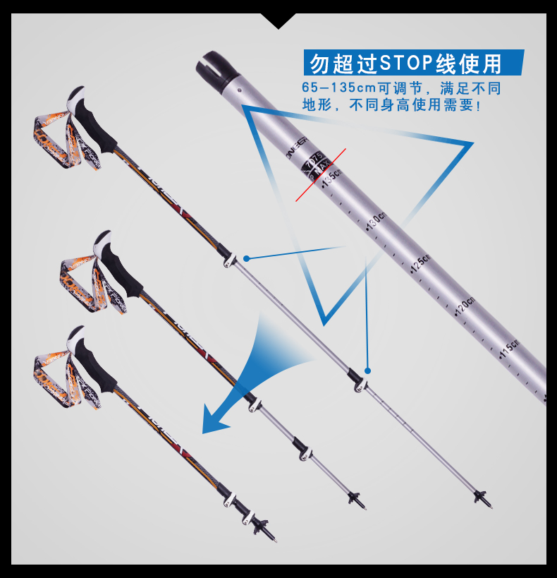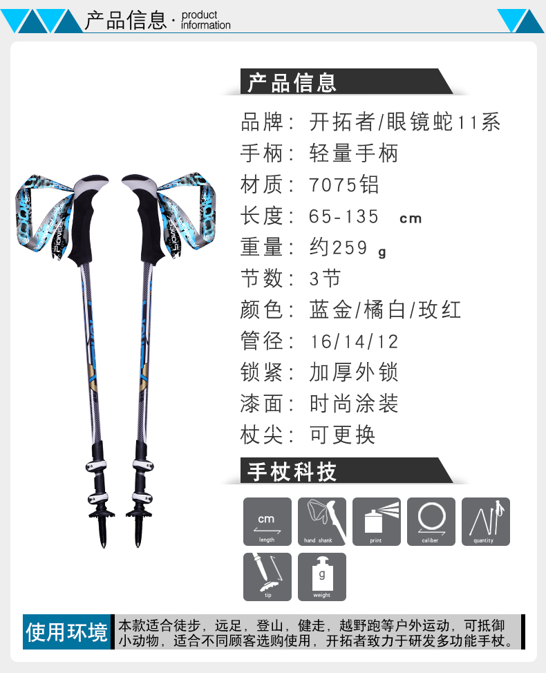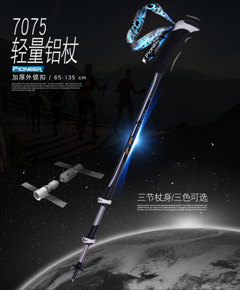 開拓者7075鋁合金登山杖 外鎖伸縮手杖三節柺杖戶外徒步爬山裝備