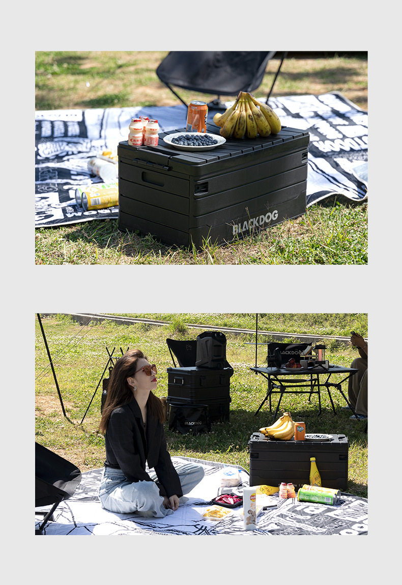 黑狗戶外露營摺疊收納箱黑化摺疊箱野營車載整理箱家用儲物置物箱