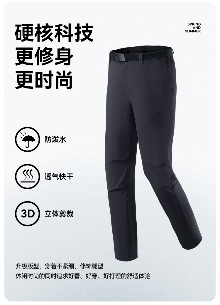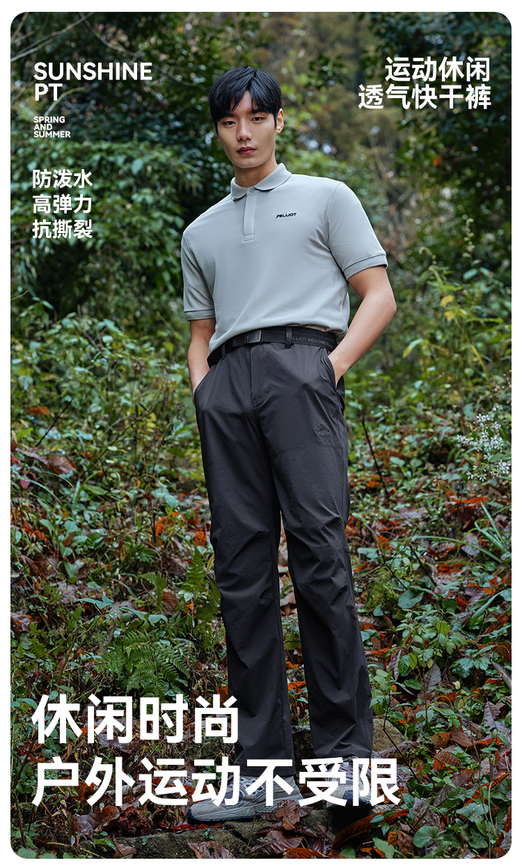 伯希和速乾褲男2023春夏新款戶外防風防水直筒高彈休閒登山長褲