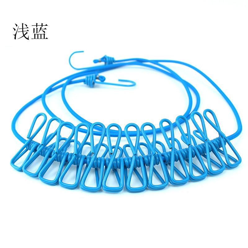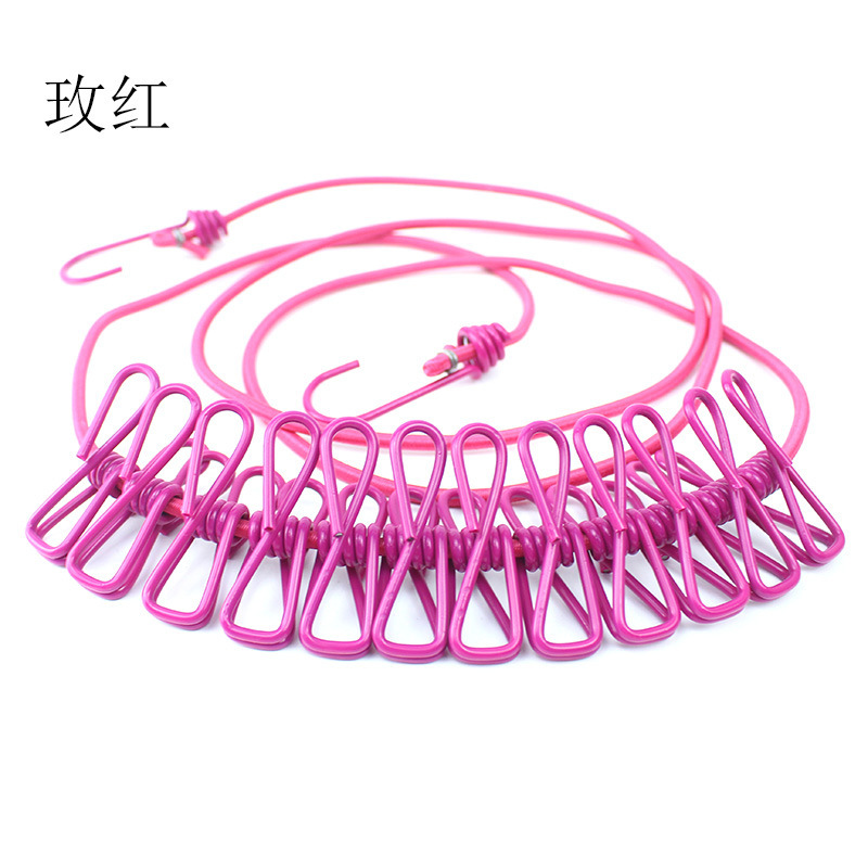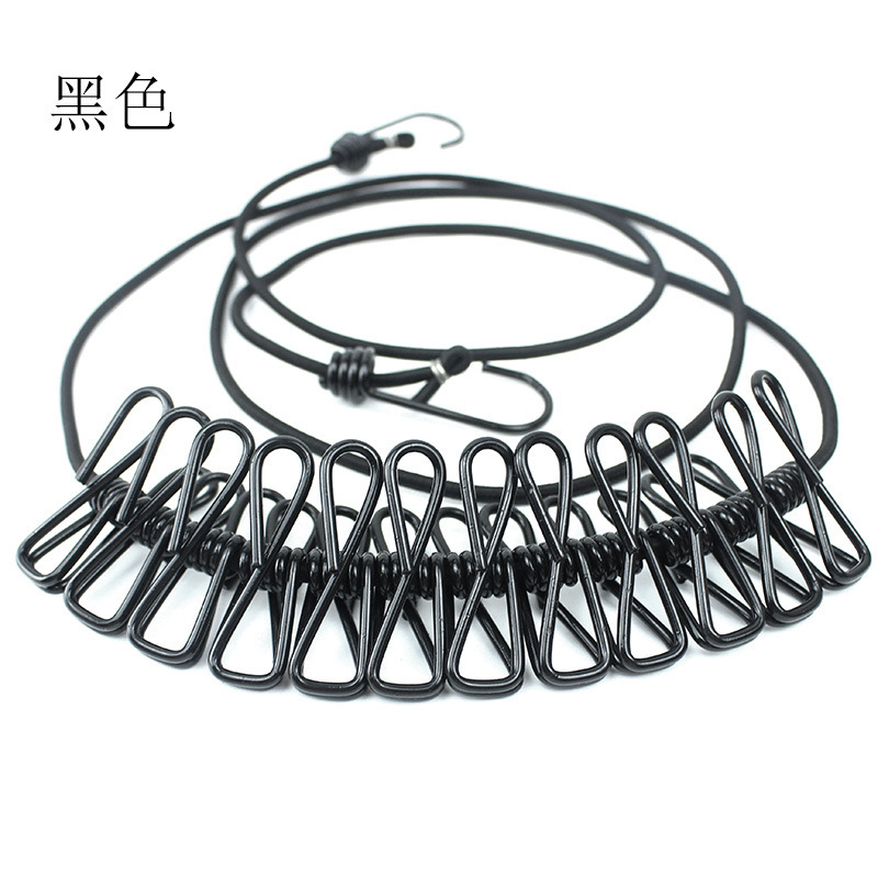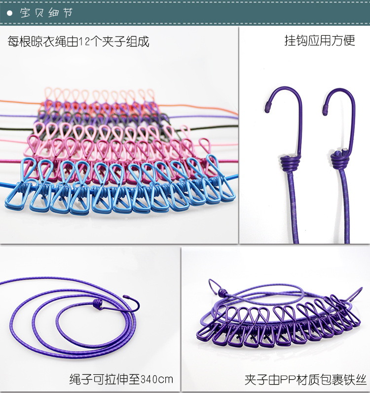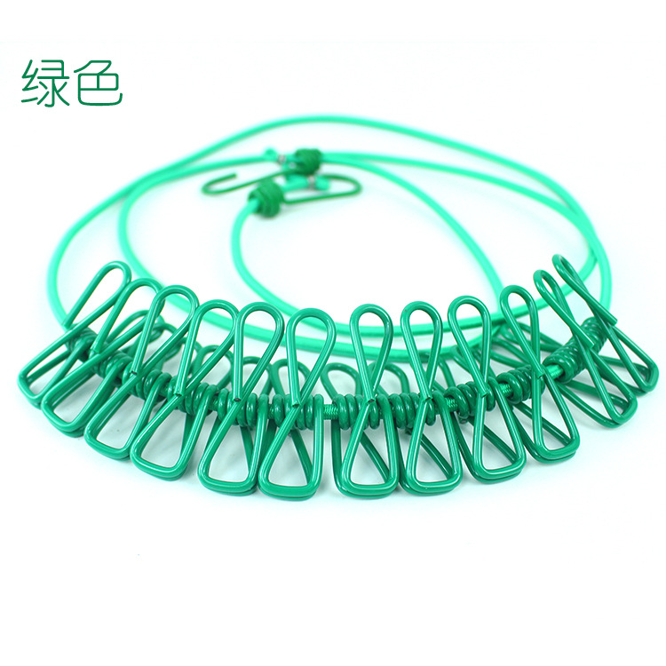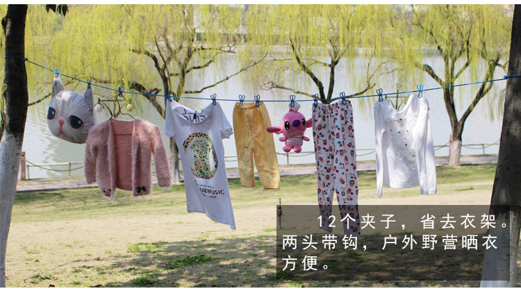 带夹晾衣绳 旅行便携可伸缩防风弹力晒衣绳 晾衣架12个夹 晾衣绳