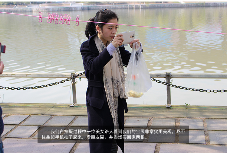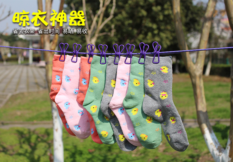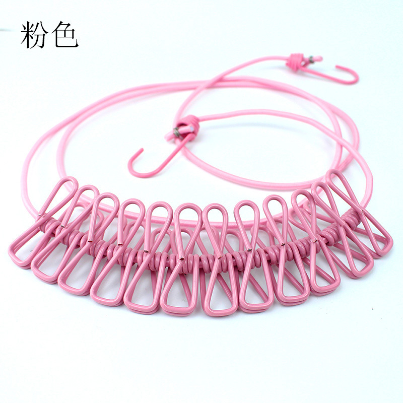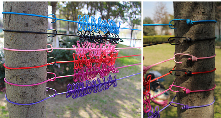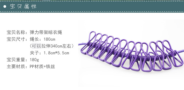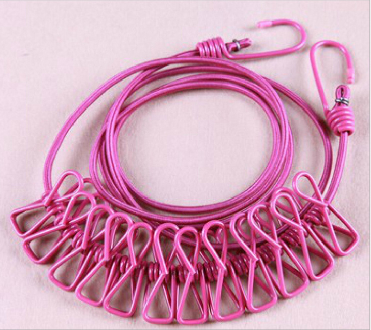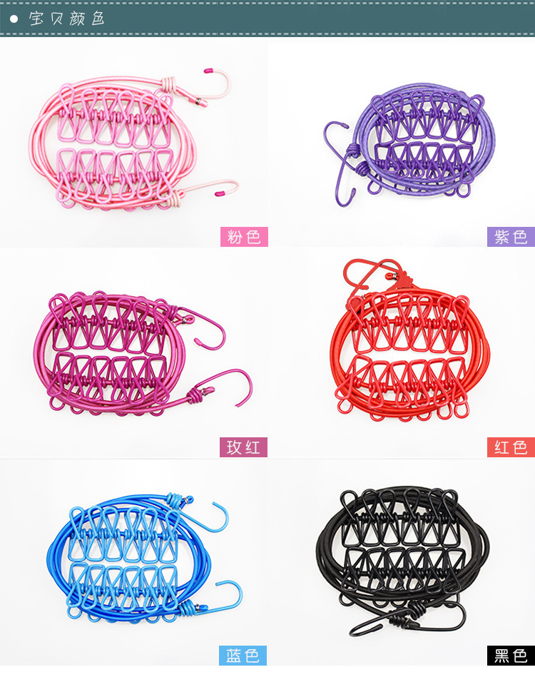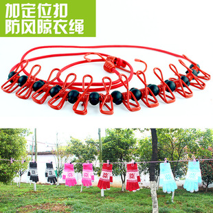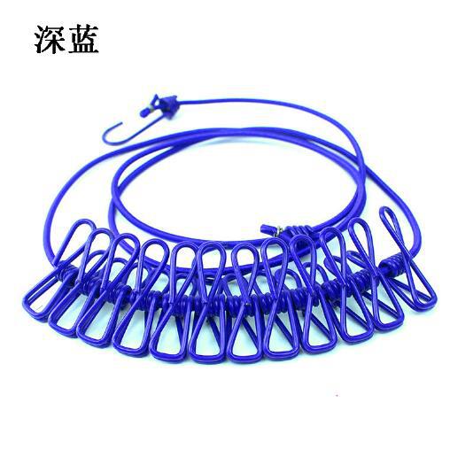 带夹晾衣绳 旅行便携可伸缩防风弹力晒衣绳 晾衣架12个夹 晾衣绳