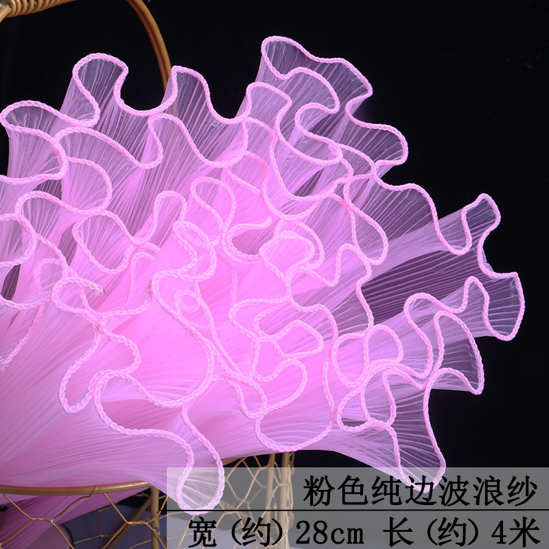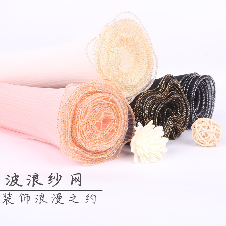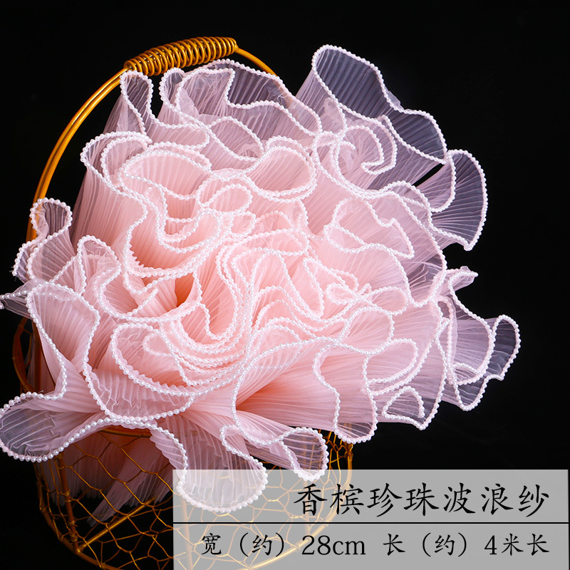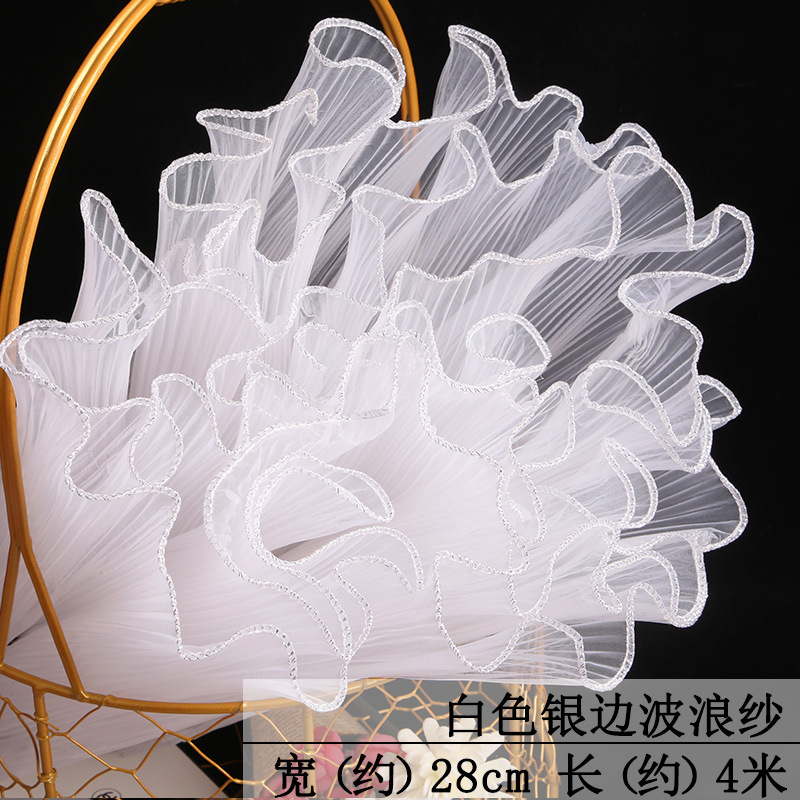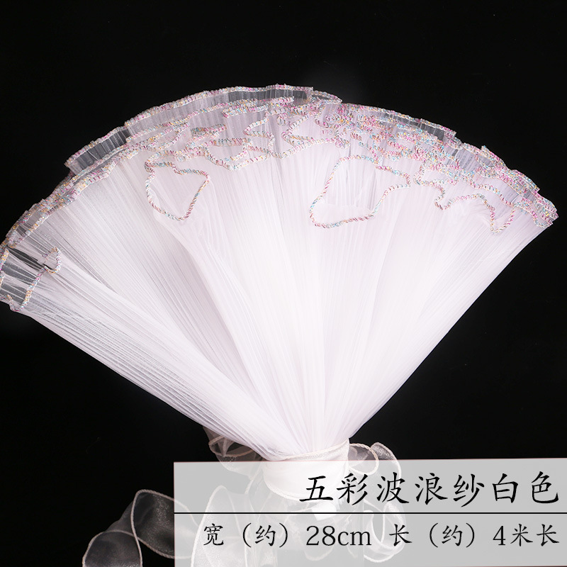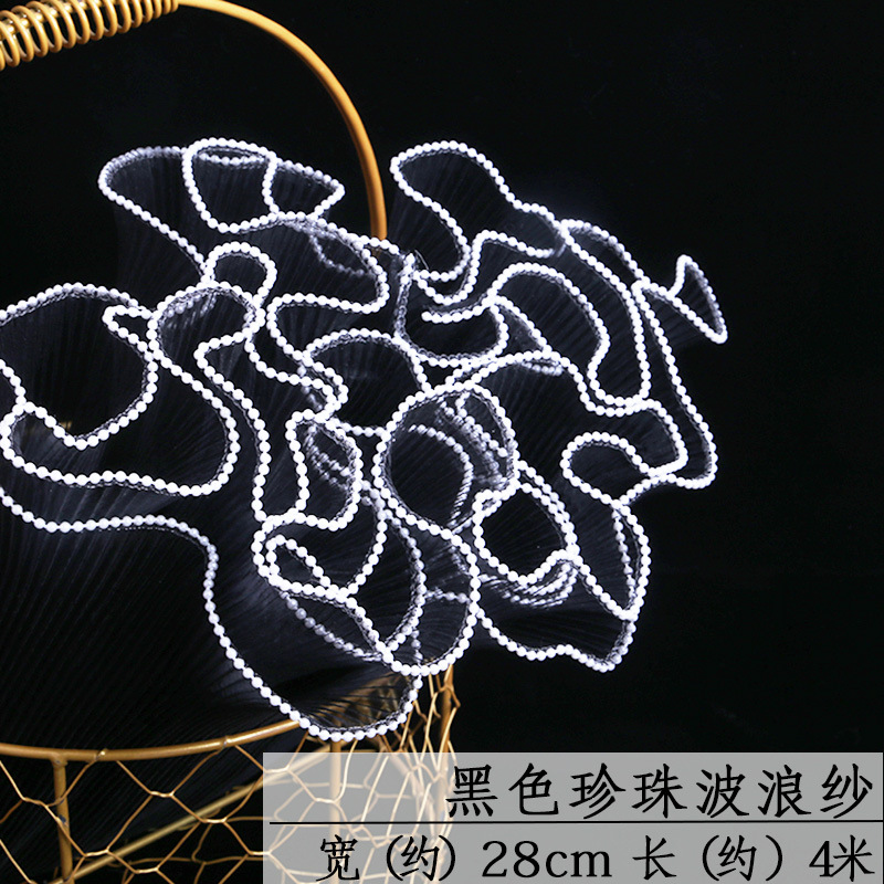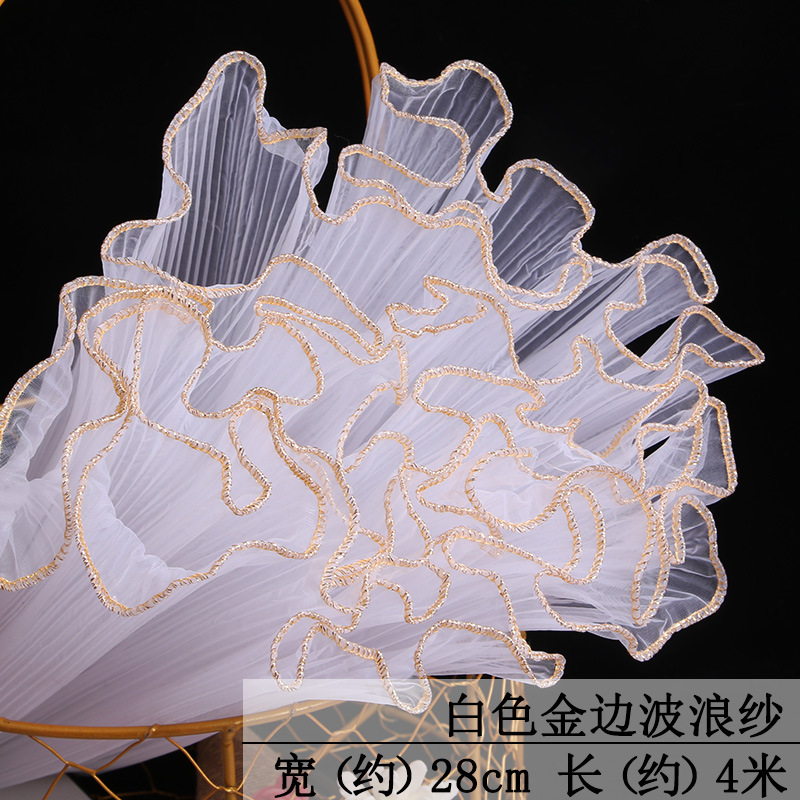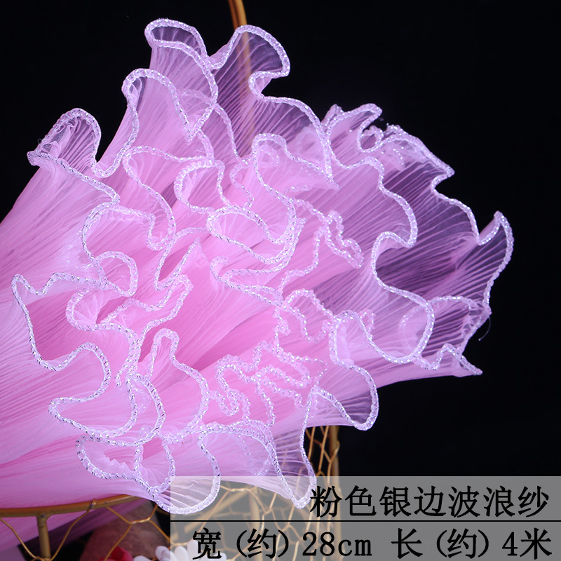 厂家批发28厘米宽鲜花包装纸节日送礼珍珠波浪网纱花束花艺拷边纱