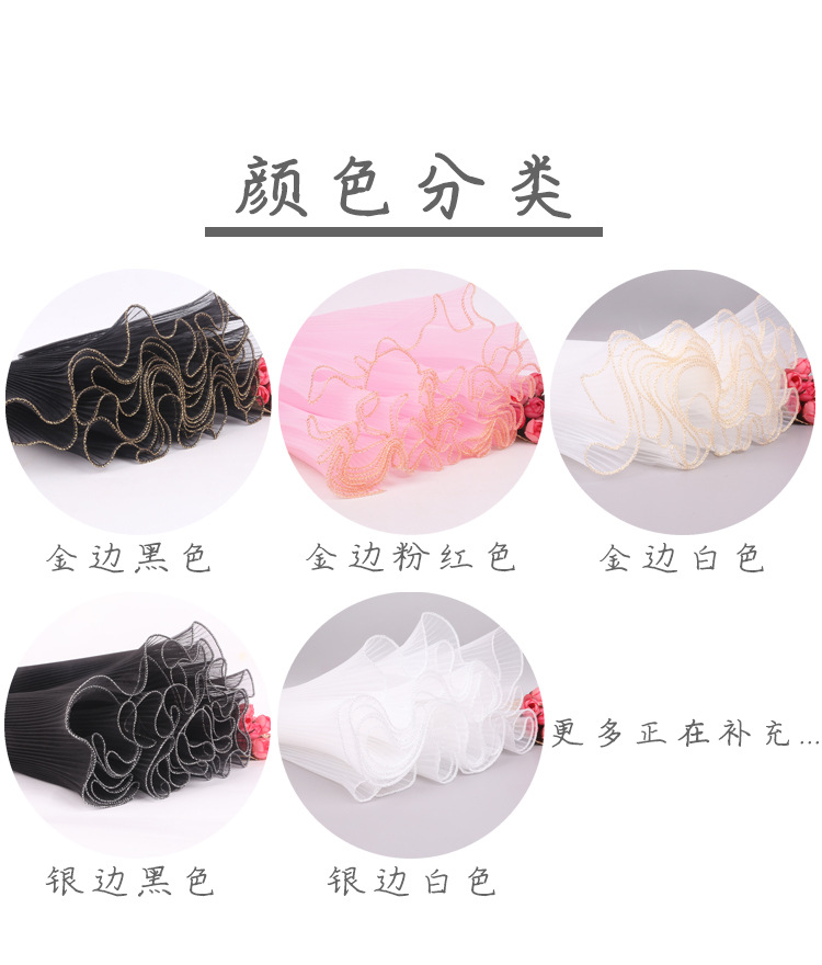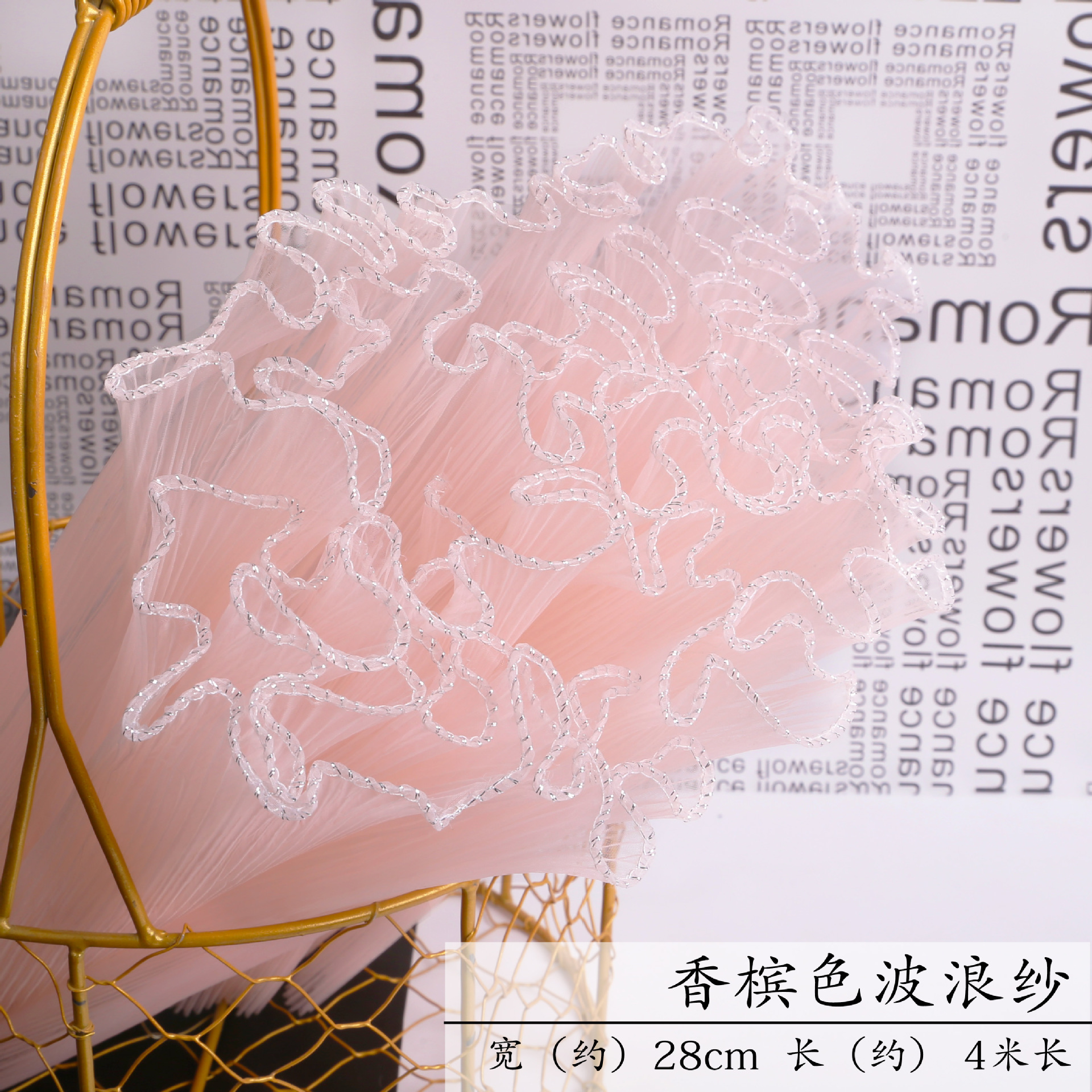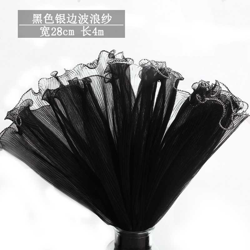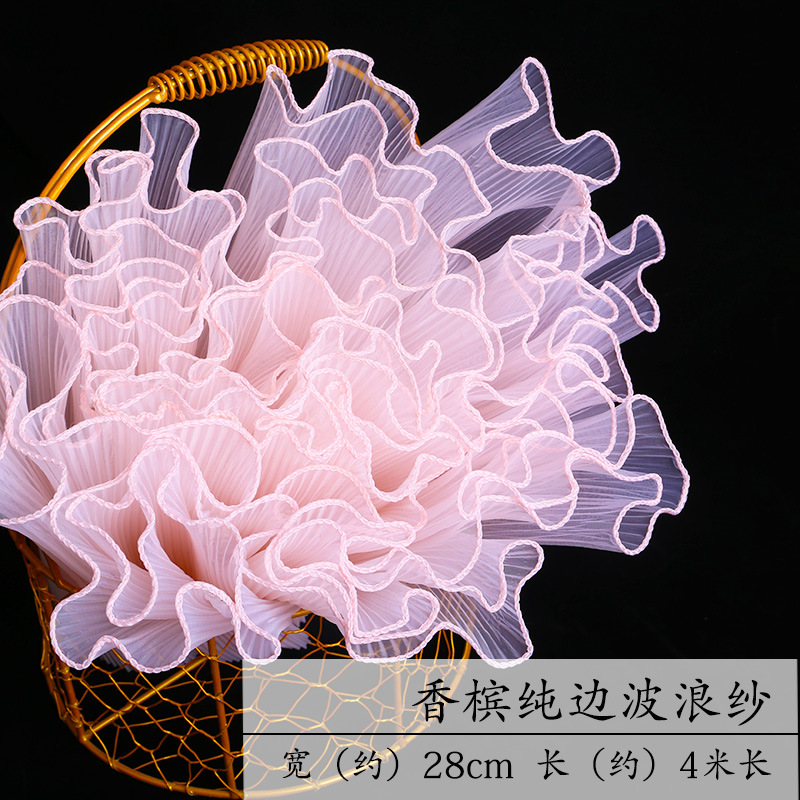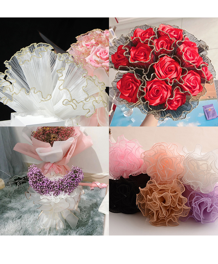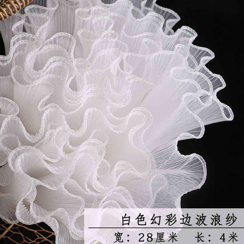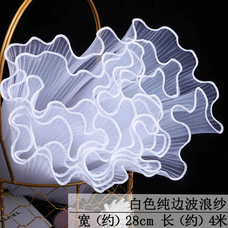 厂家批发28厘米宽鲜花包装纸节日送礼珍珠波浪网纱花束花艺拷边纱