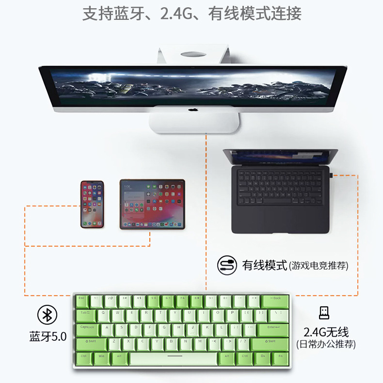 赤暴hw61抹茶无线蓝牙三模全键热插拔红轴电脑机械键盘亚马逊跨境