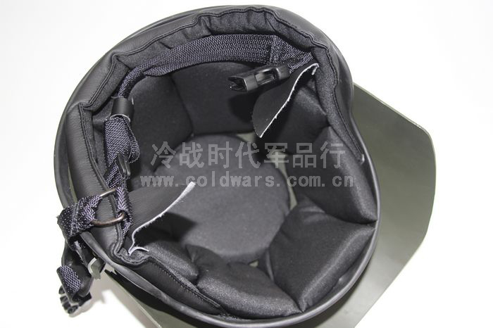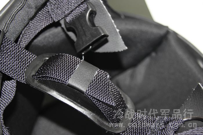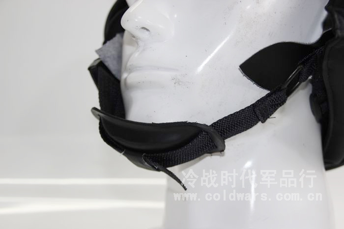 盔体内部,可以看到非常厚实的全包裹海棉垫层,两侧为了防止悬挂织带磨脸还安排了脸颊垫皮,非常人性化。