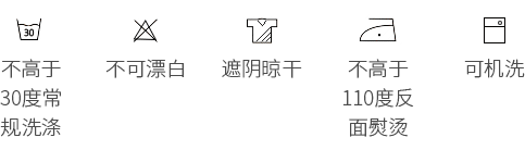 请在冷水中洗涤,请勿长时间浸泡,请勿和浅色衣服一起洗涤,