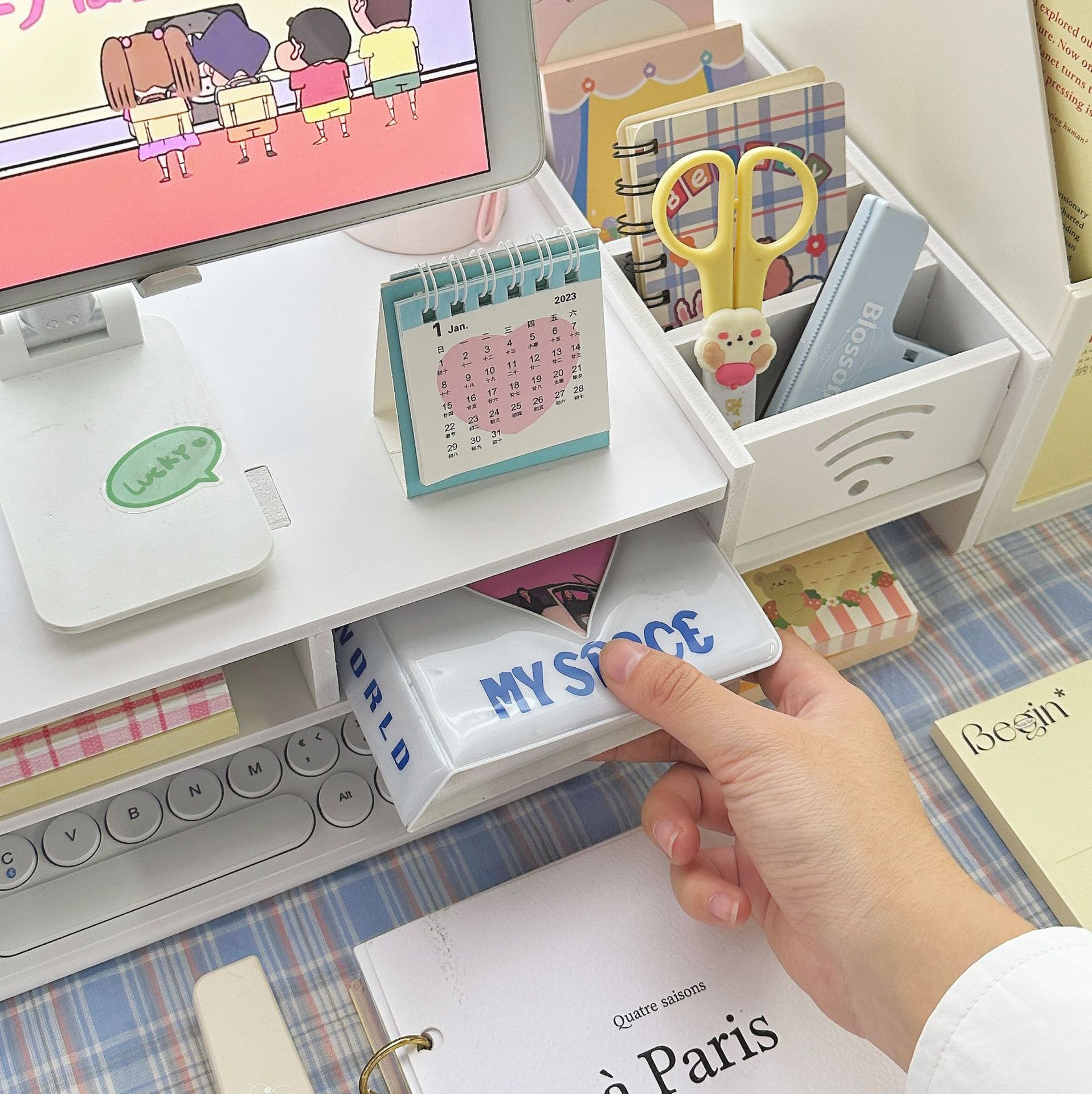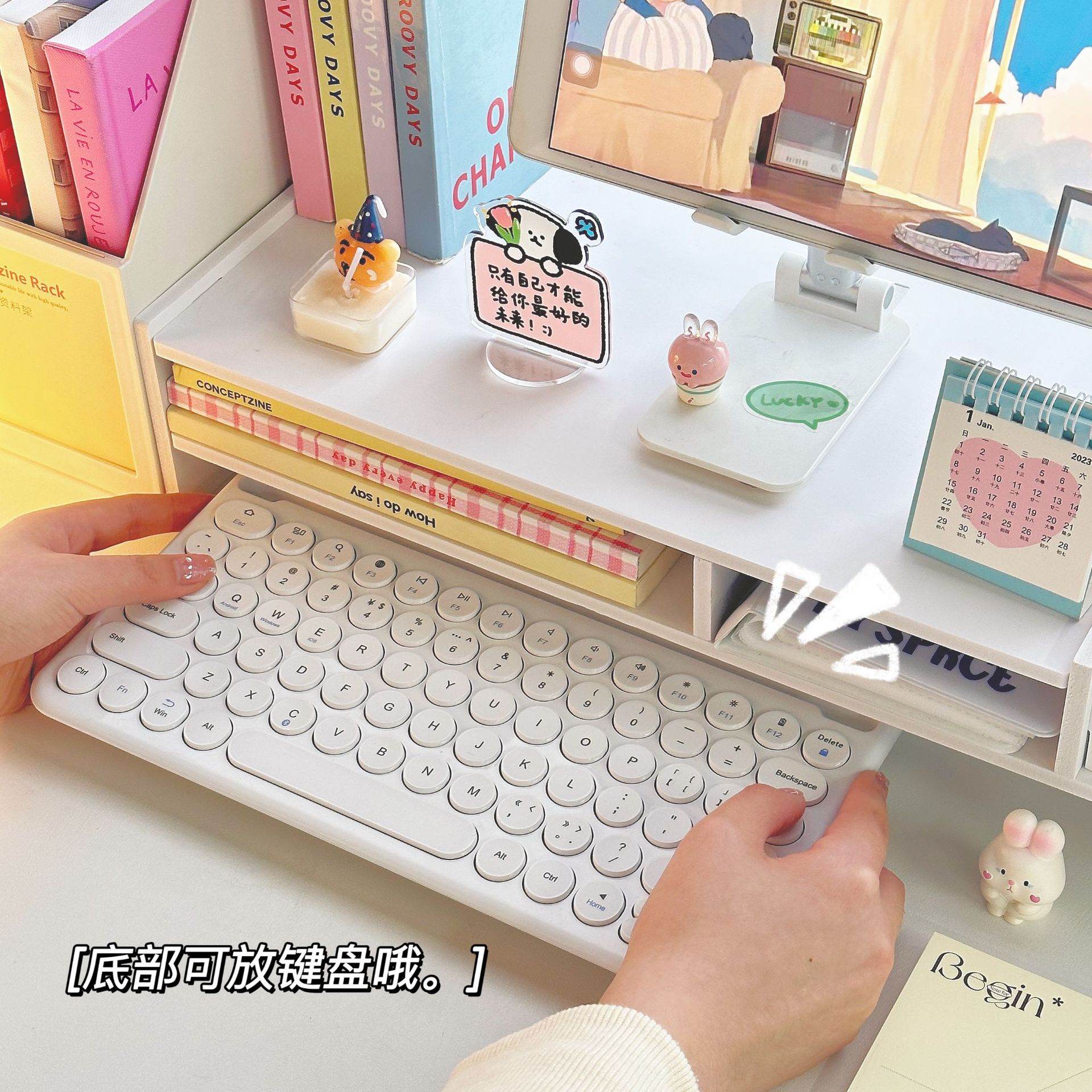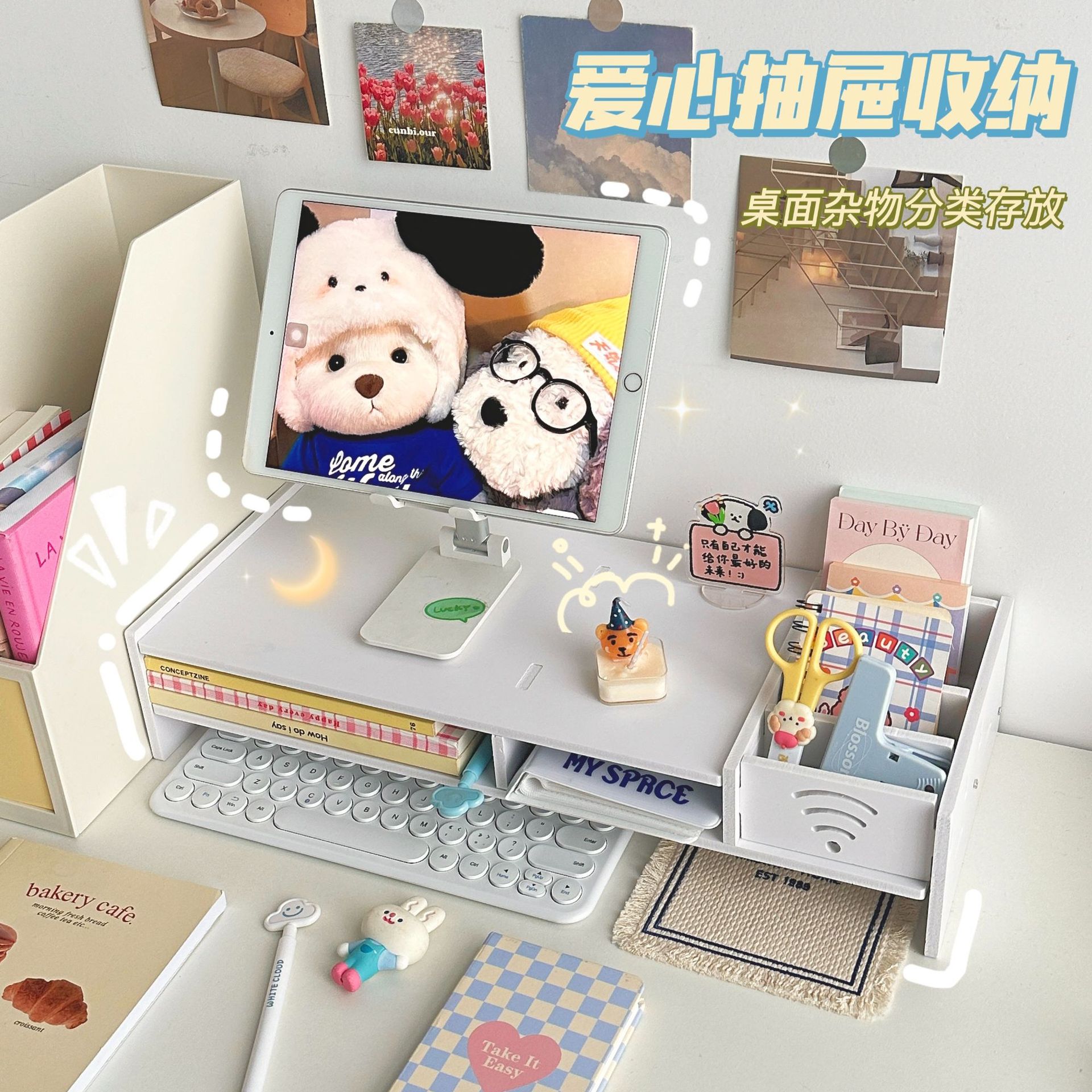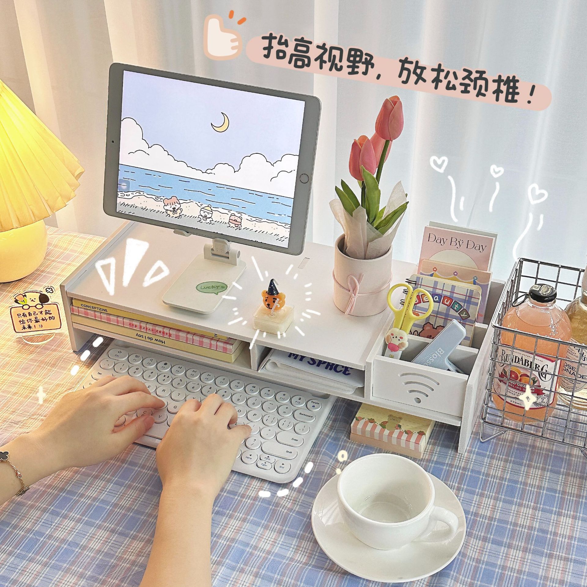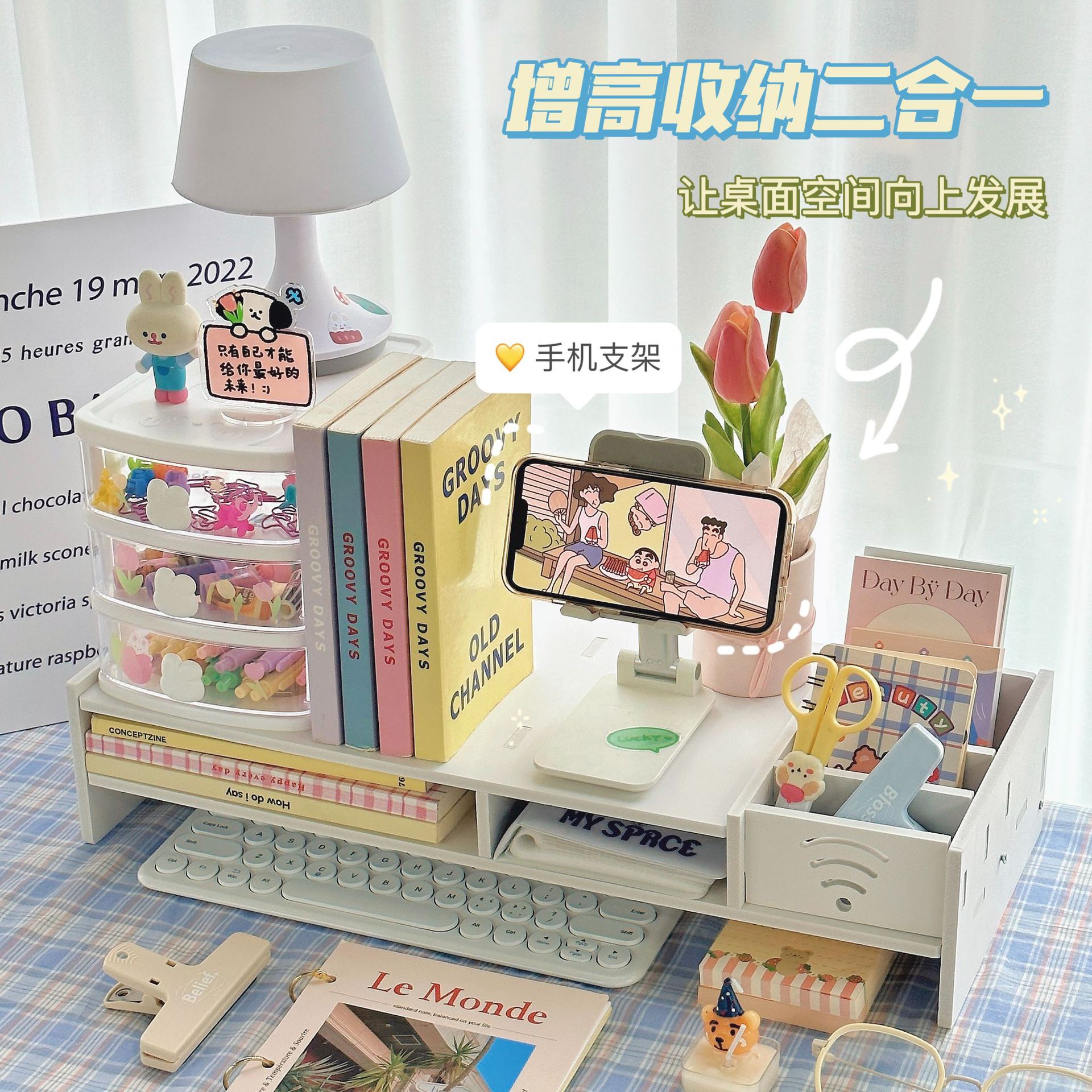 办公室桌面多功能收纳置物架抽屉台式电脑增高器架屏幕显示器支架