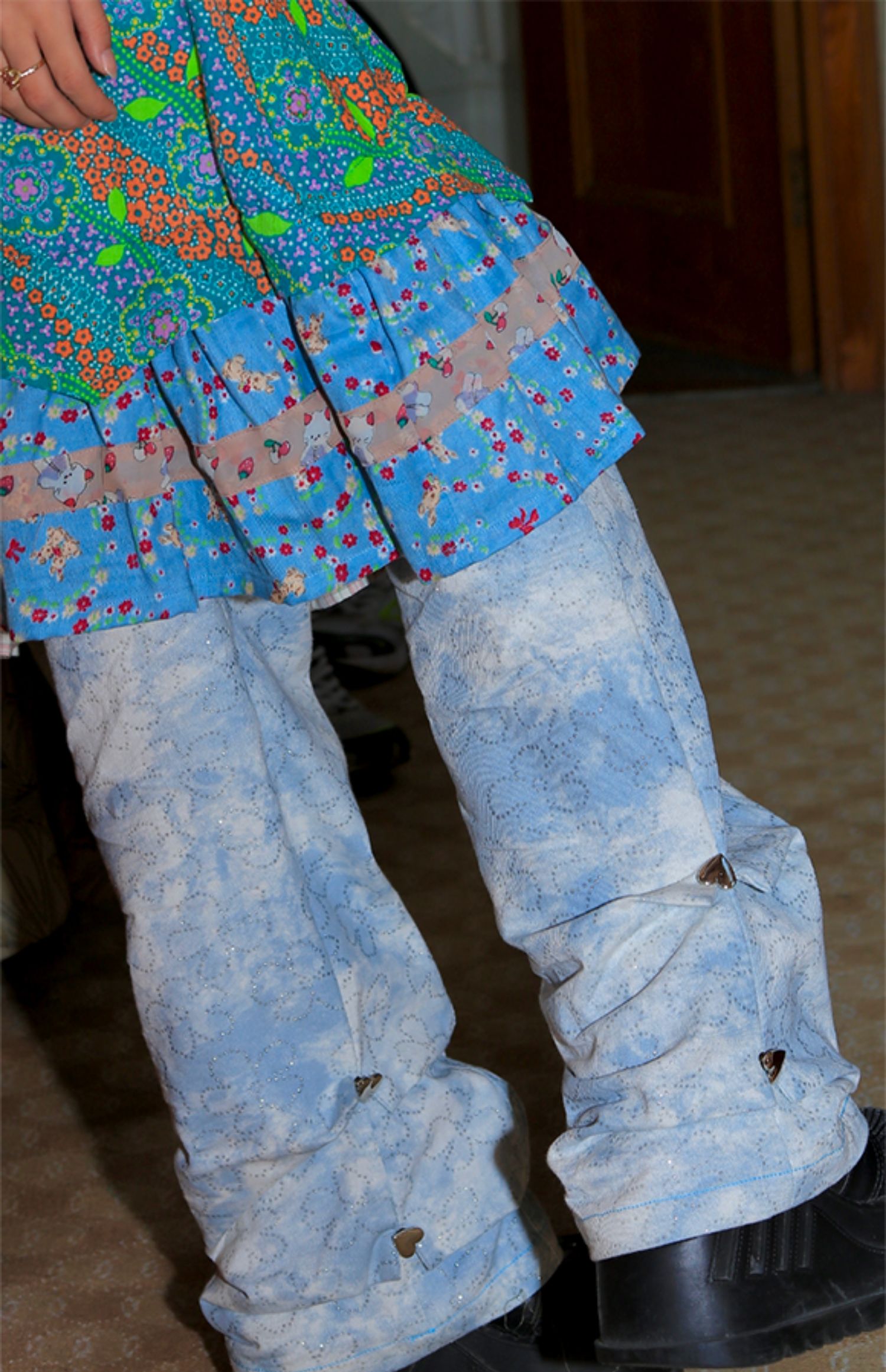 Dreaminess原創低腰大口袋寬鬆燙金花朵分割重工堆堆純棉牛仔褲