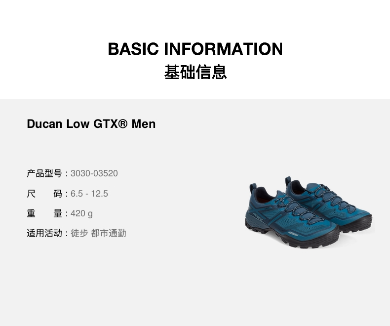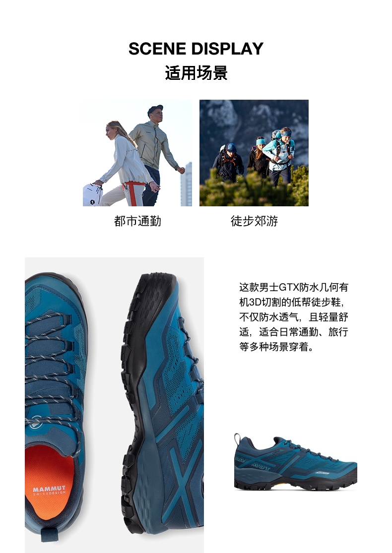 MAMMUT猛獁象新款Ducan男士戶外GTX防雨水透氣耐磨緩震低幫徒步鞋