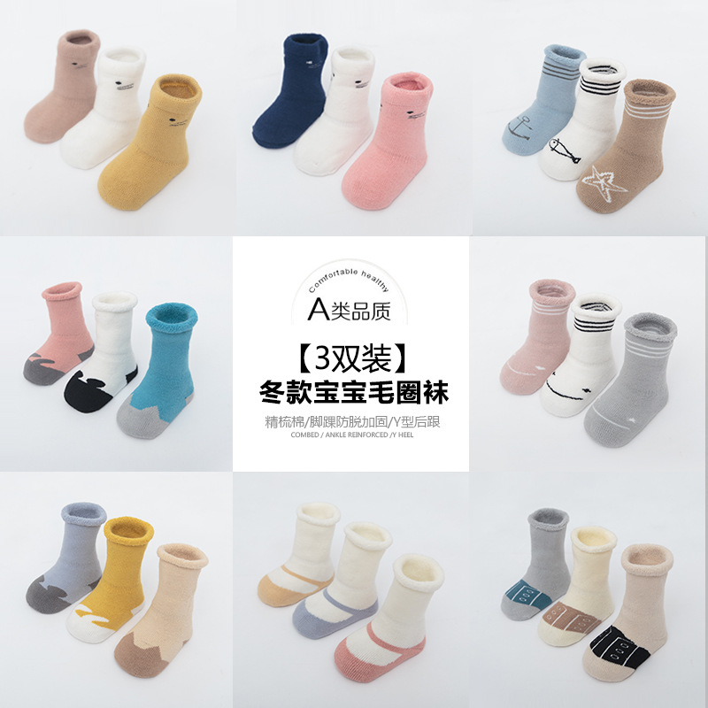 18秋冬毛圈加厚婴儿袜子新生儿毛巾中筒儿童宝宝袜子精梳棉0-3岁