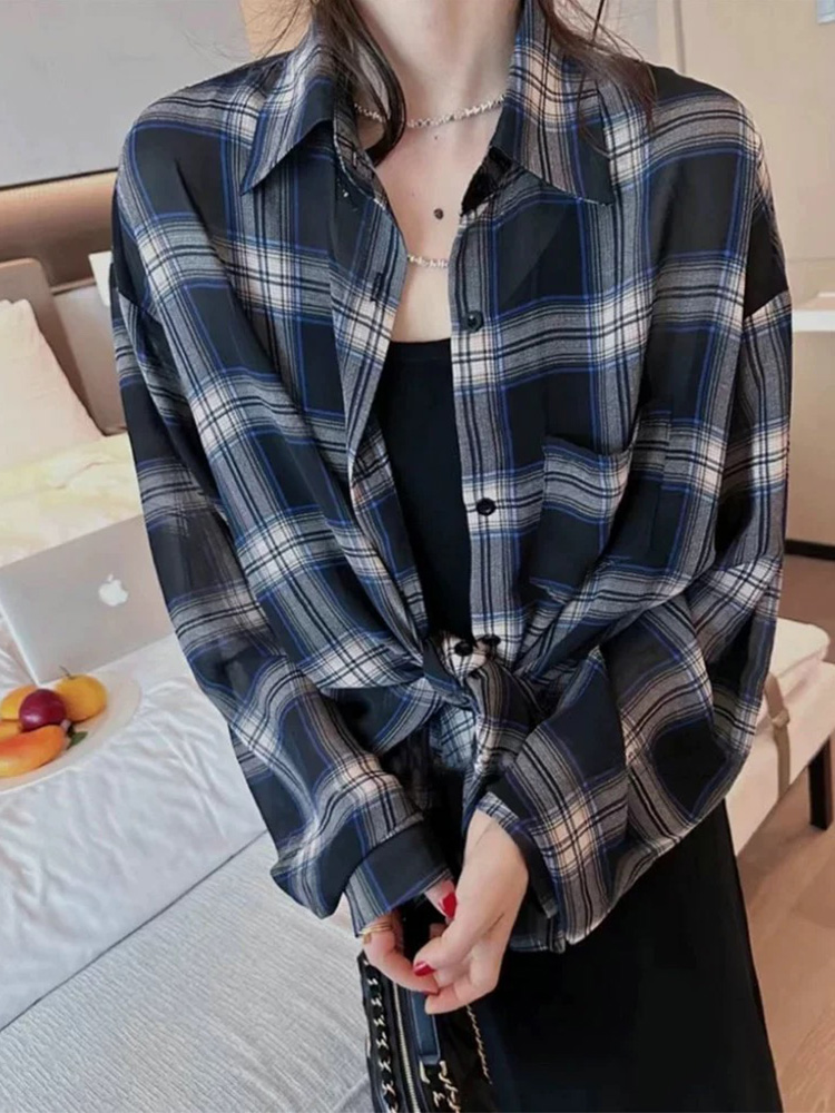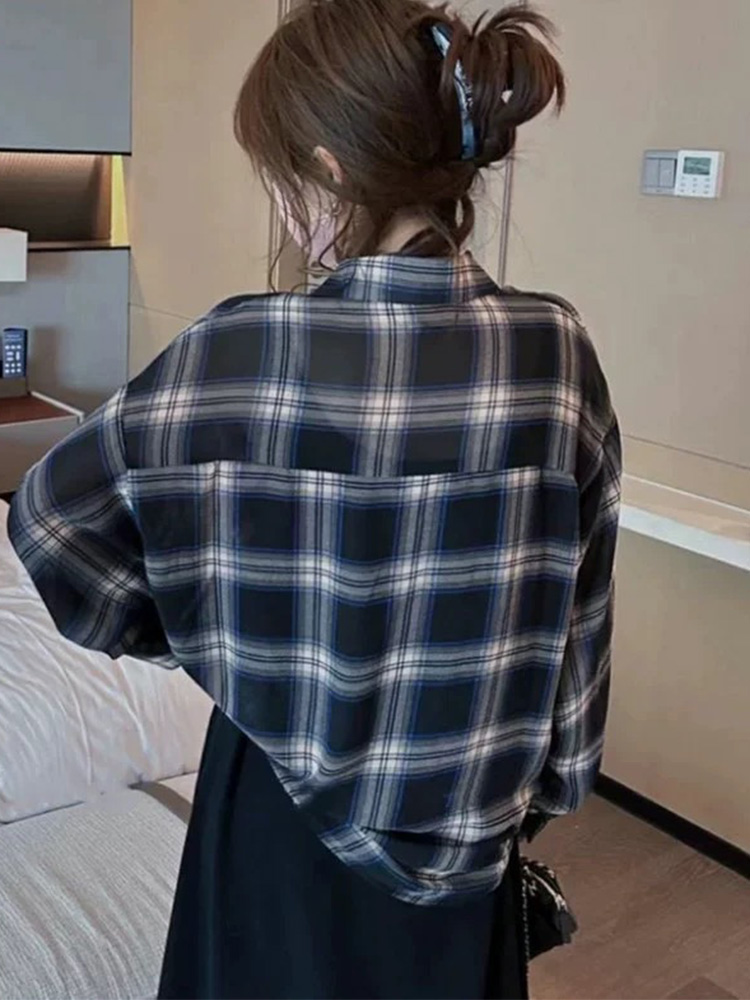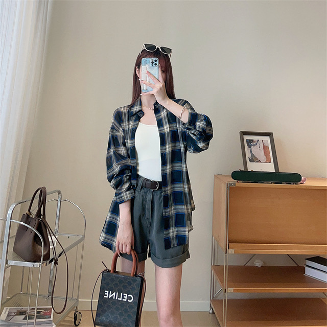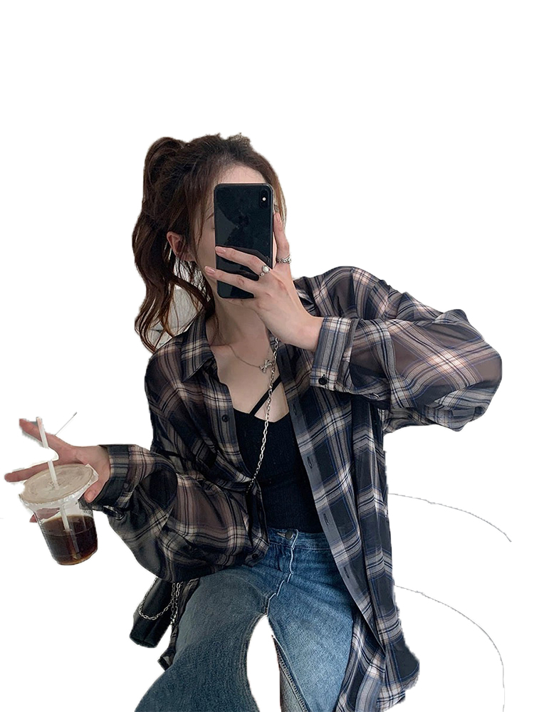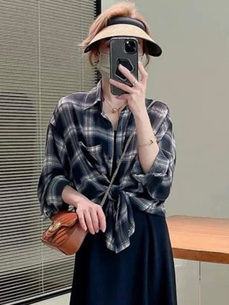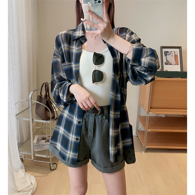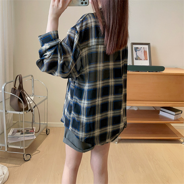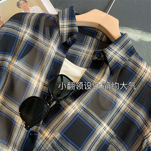 防曬襯衫女夏季小個子薄款雪紡長袖格子衫氣質大尺碼女胖mm上衣