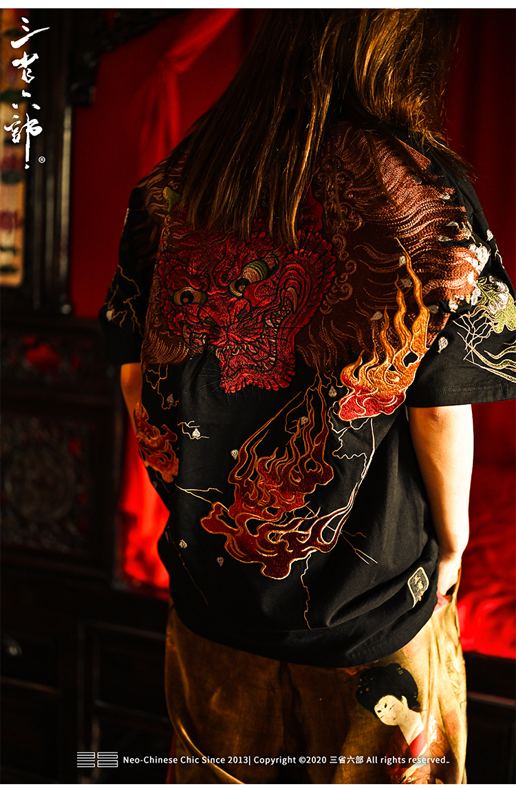 三省六部【刑部·酒吞童子】夏季重工百鬼夜行刺繡男士短袖T恤