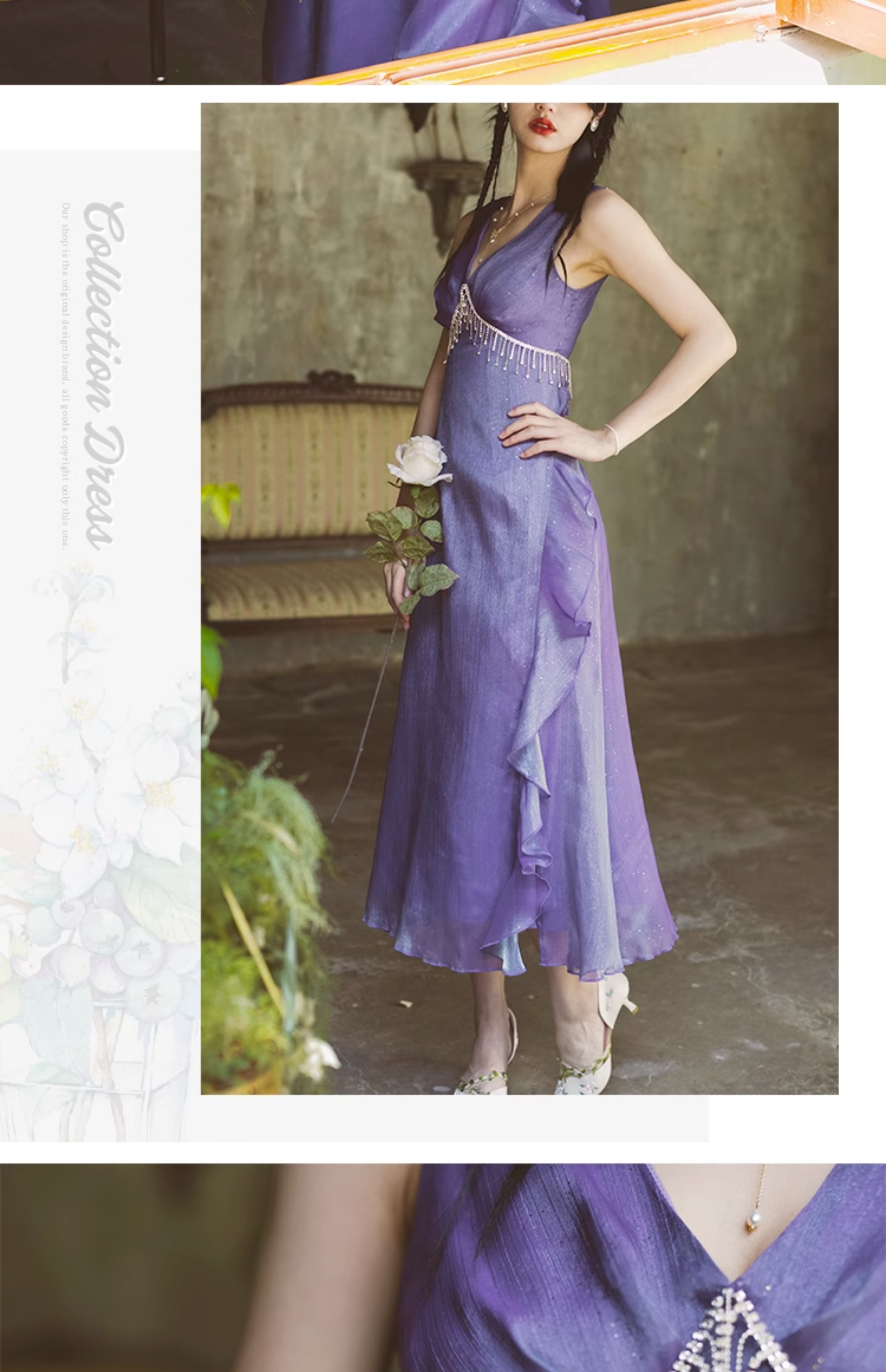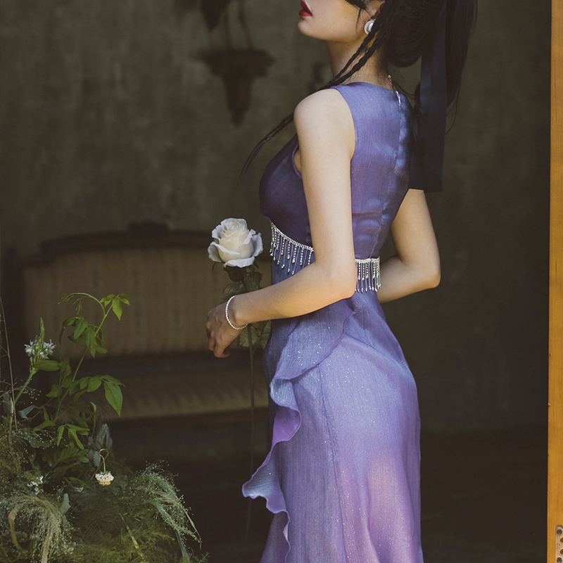 彌愛原創《洛神》宮廷復古流蘇鑽鍊漸層洋裝禮服宴會仙氣長裙夏