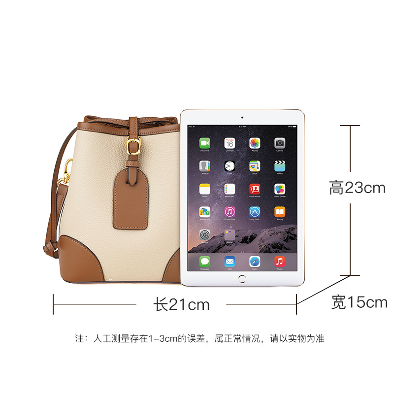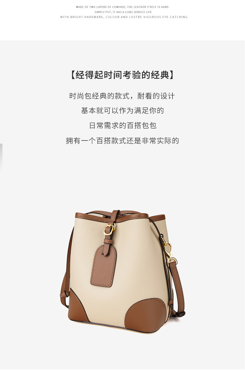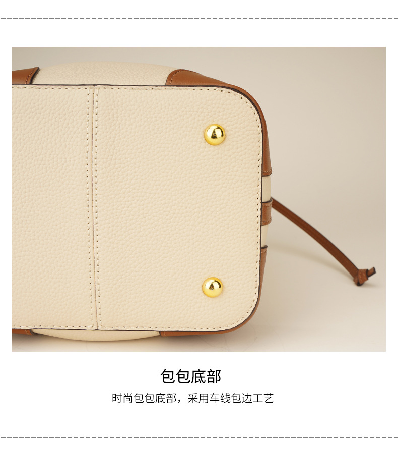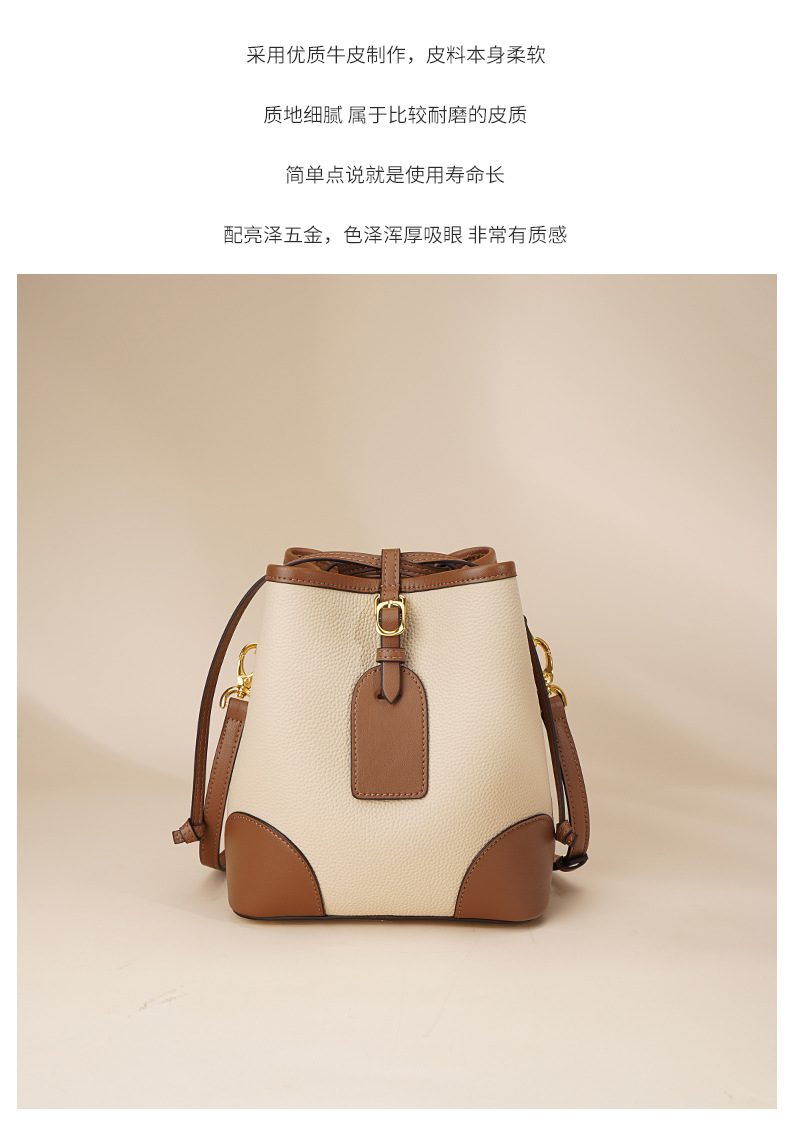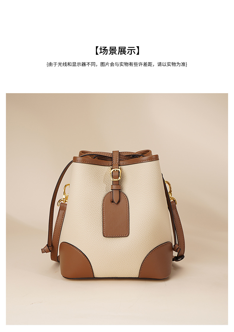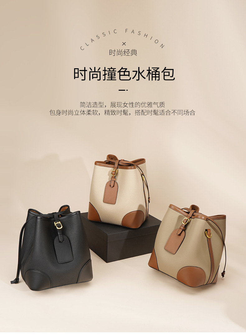 新款撞色真皮包女大容量上班通勤手提单肩斜挎包头层牛皮水桶包