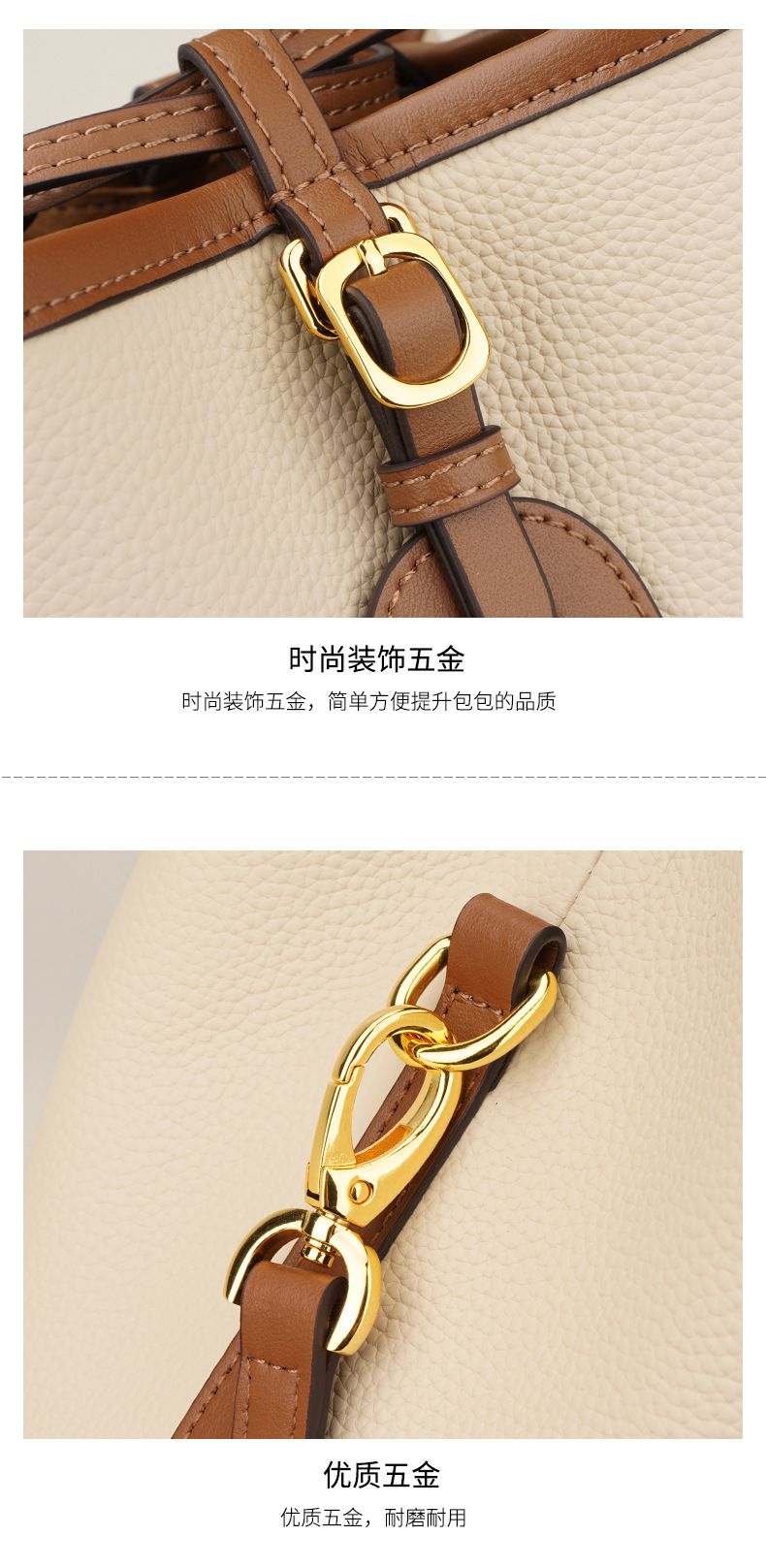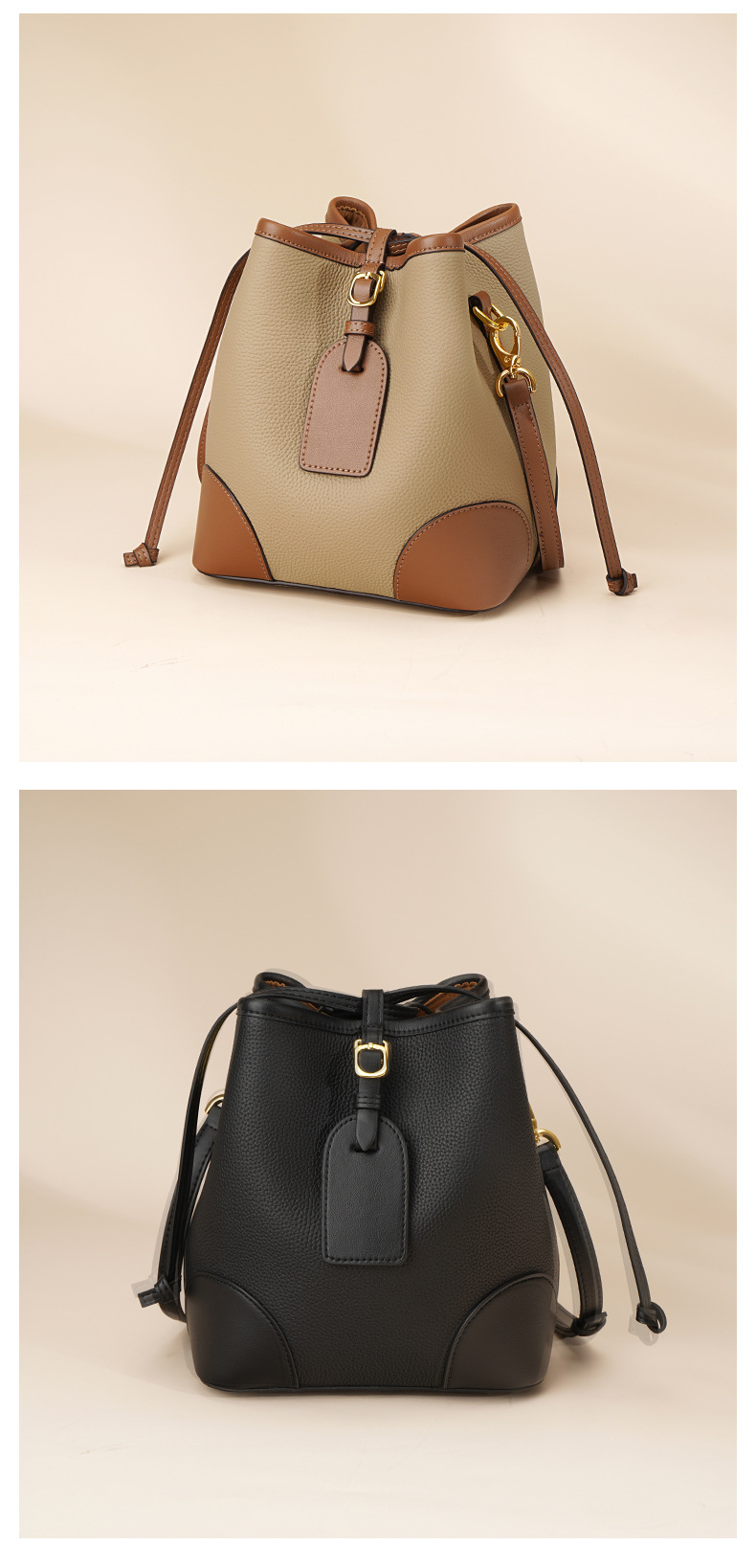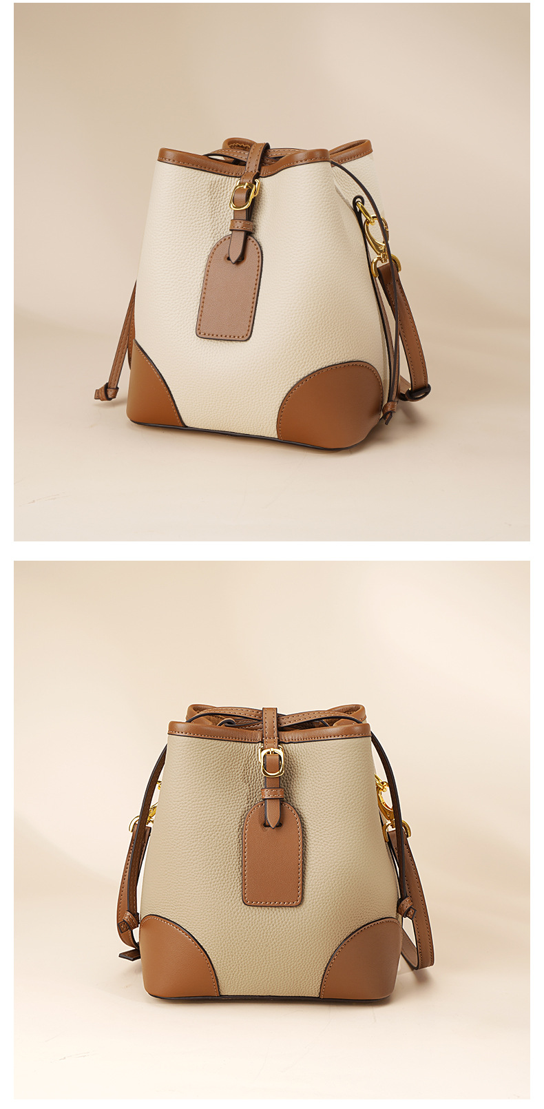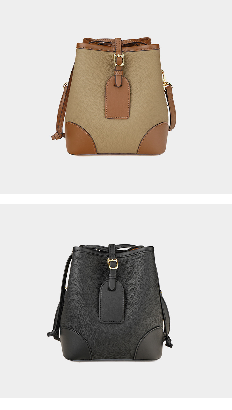 新款撞色真皮包女大容量上班通勤手提单肩斜挎包头层牛皮水桶包