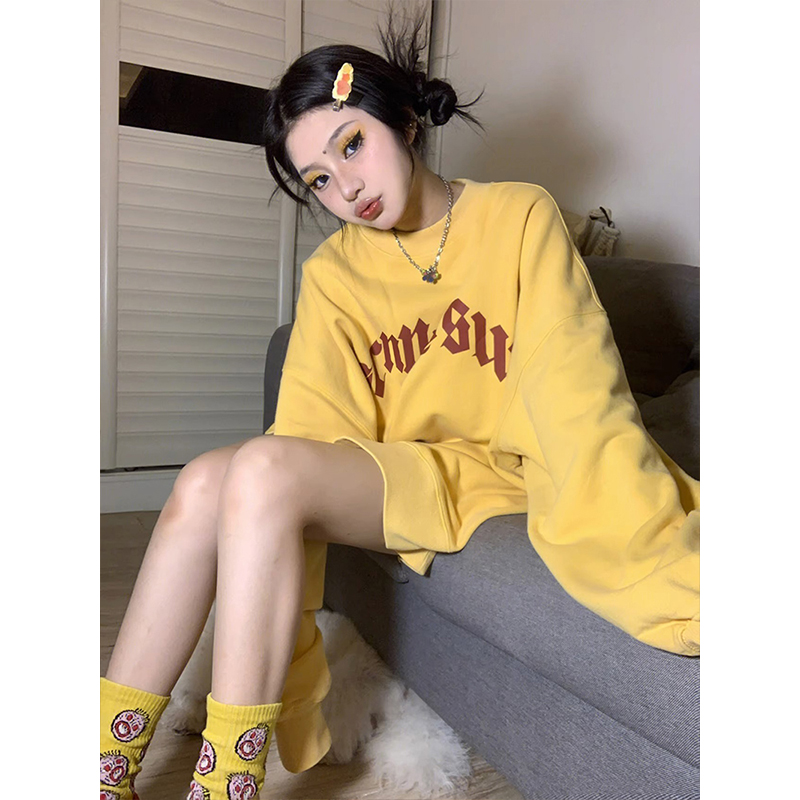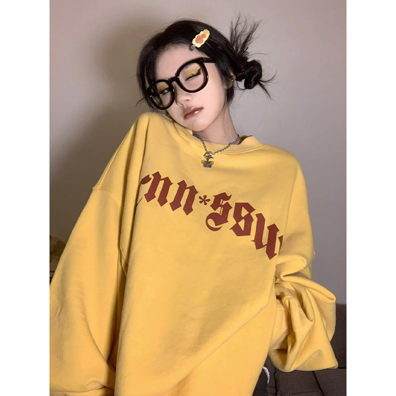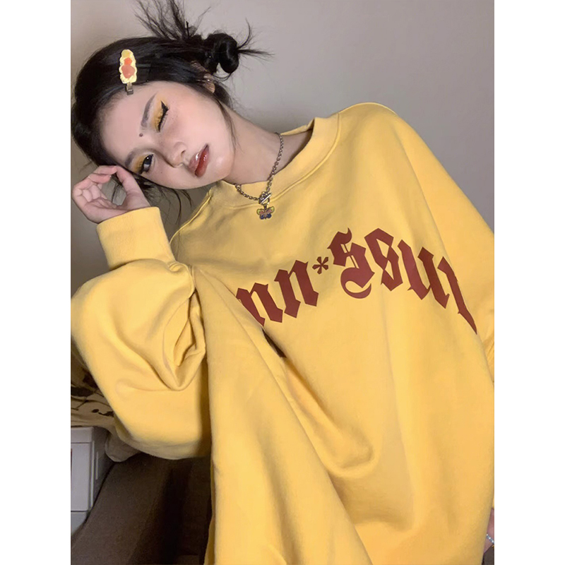 美式oversize衛衣女秋季哥特字母印花長袖外套寬鬆套頭慵懶風上衣