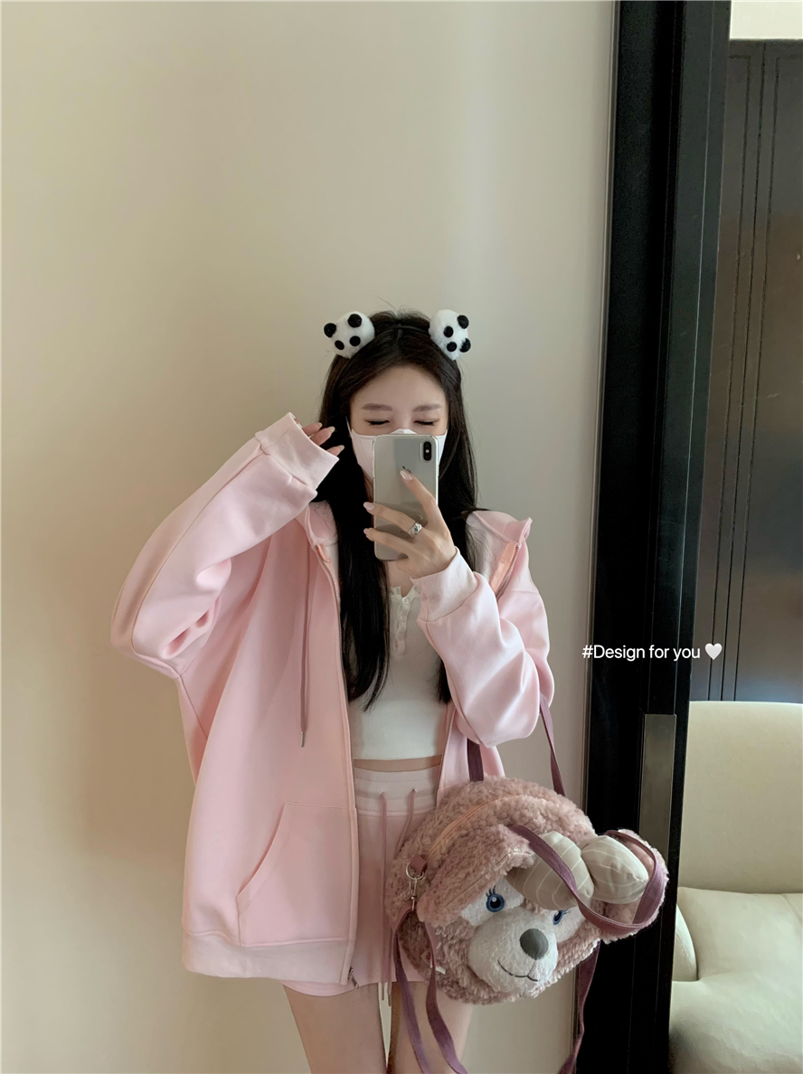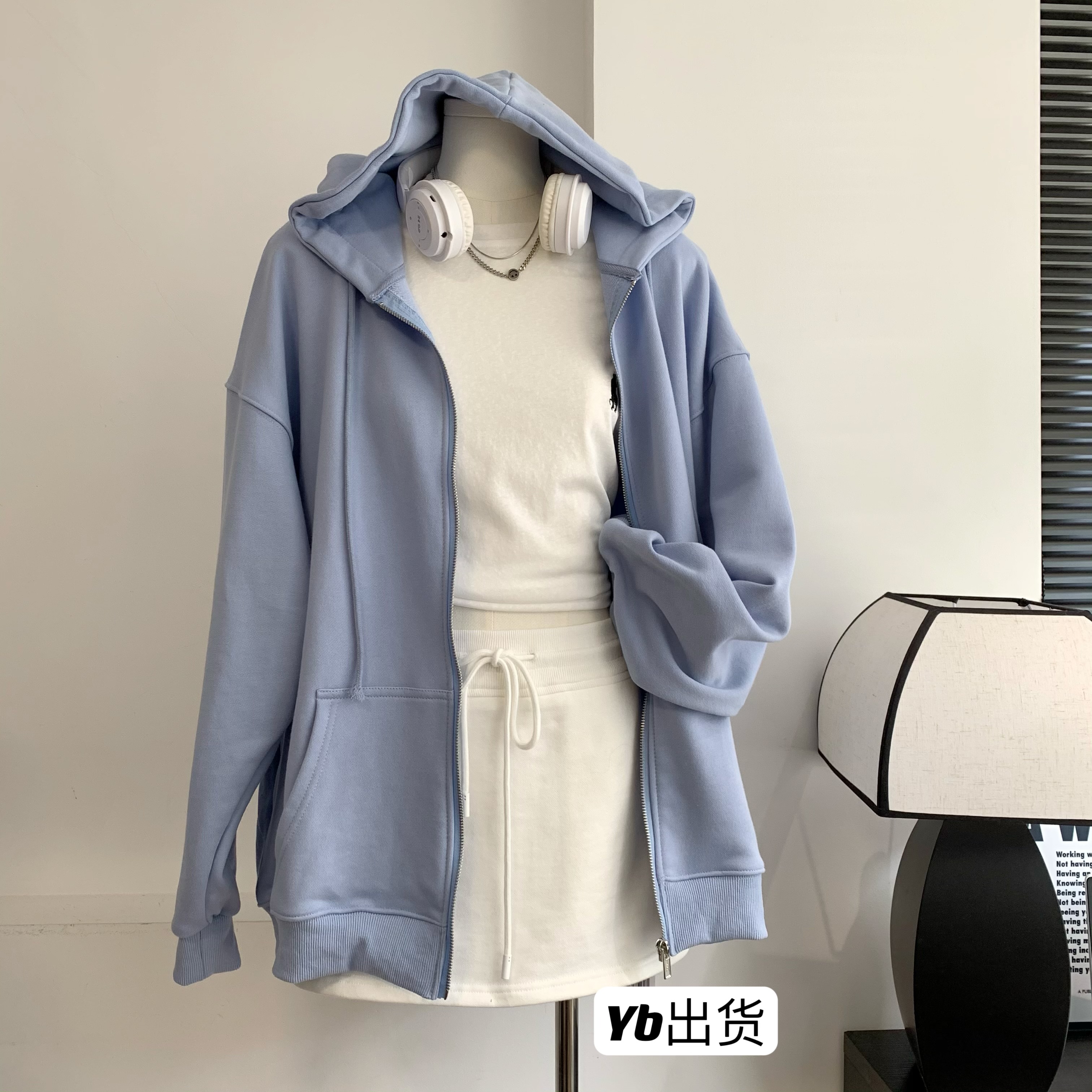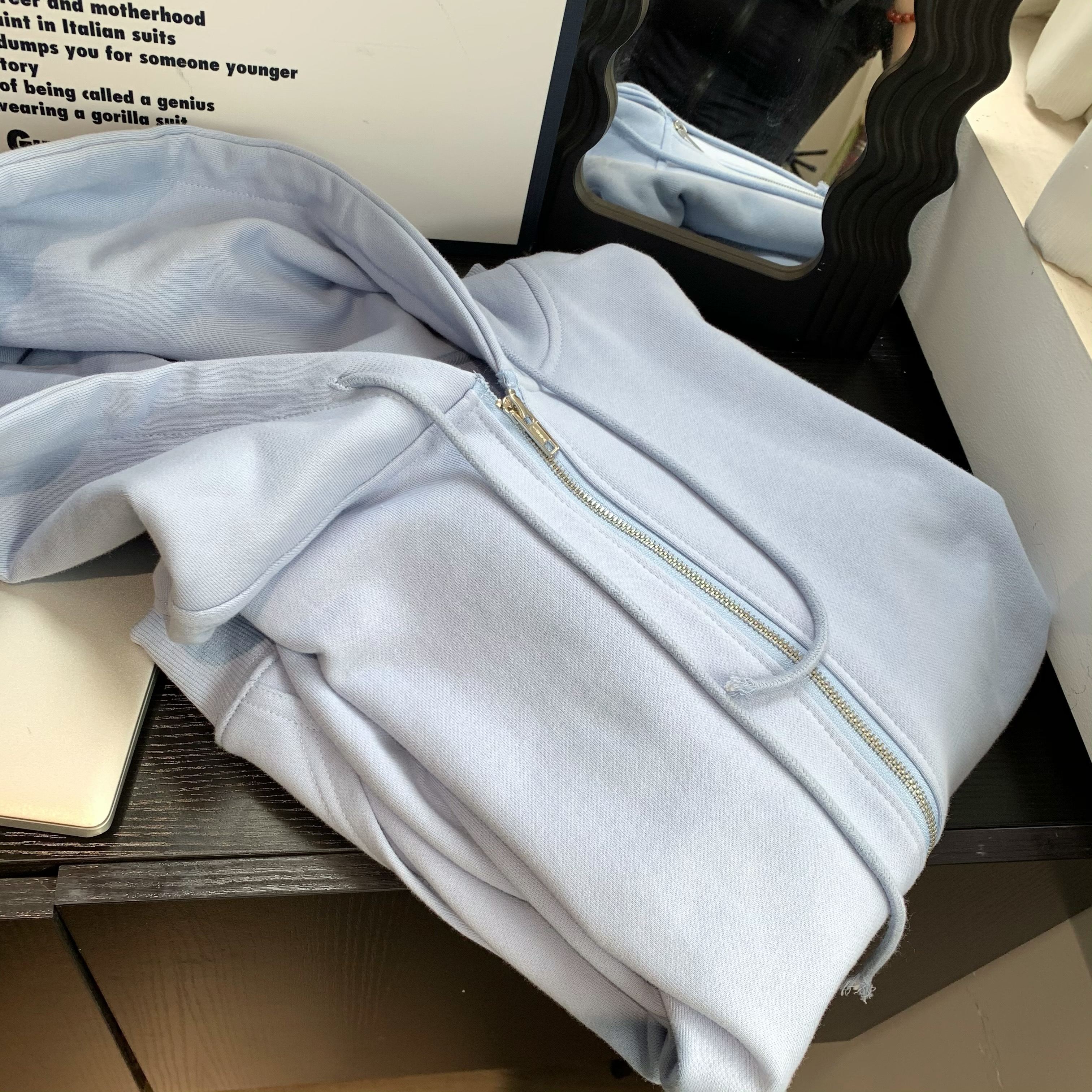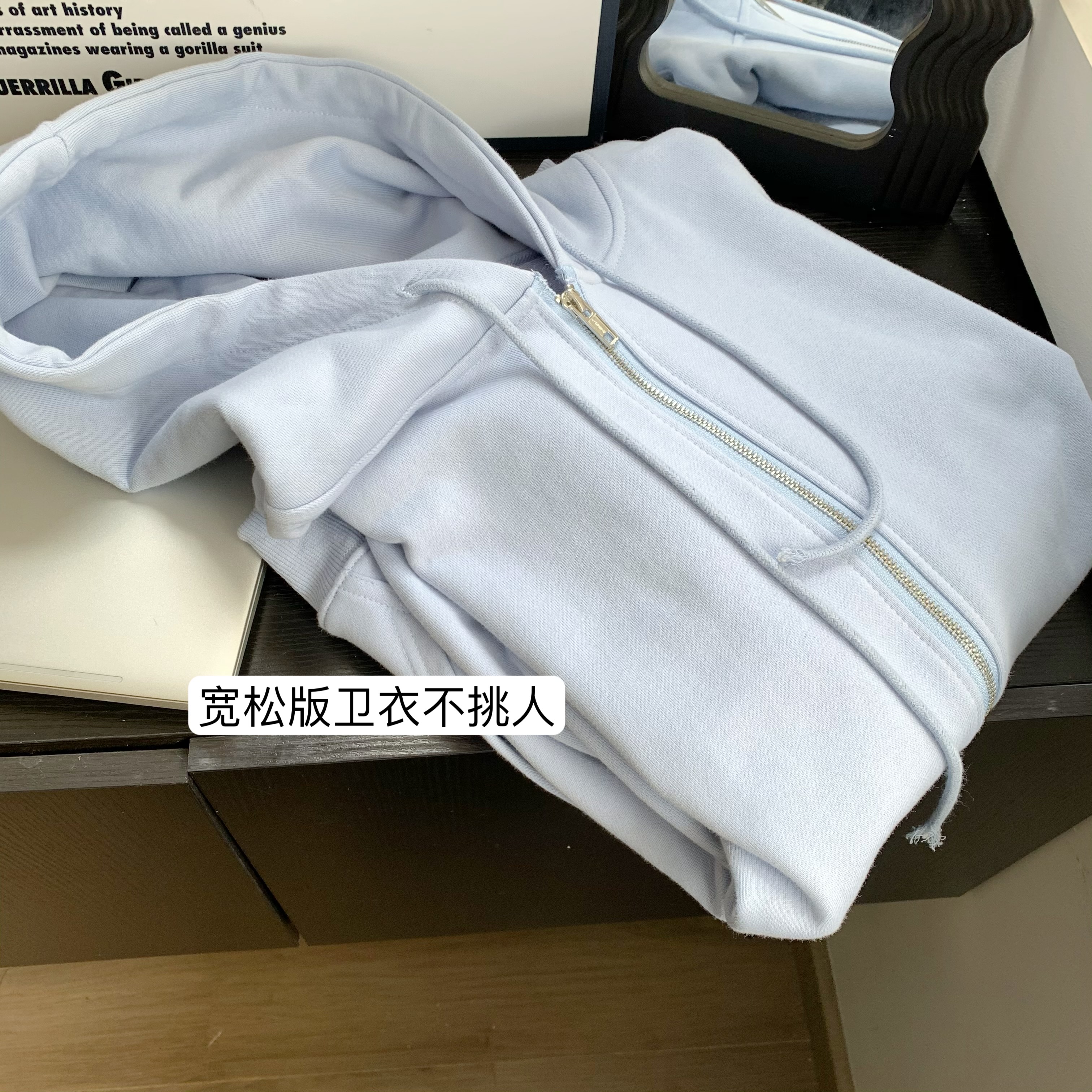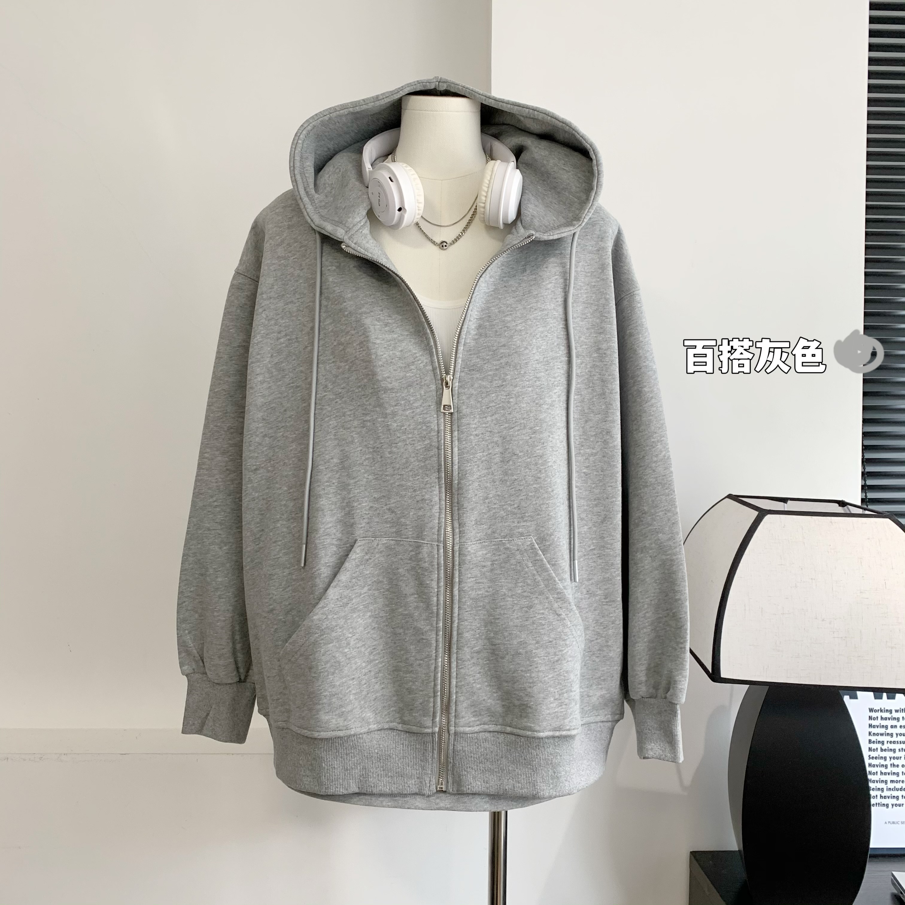 MOXI裸粉蜜桃 新款運動休閒感韓系寬鬆純色連帽開衫衛衣休閒外套