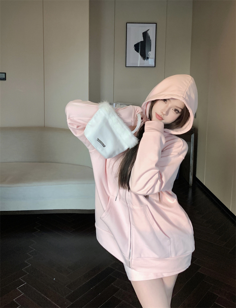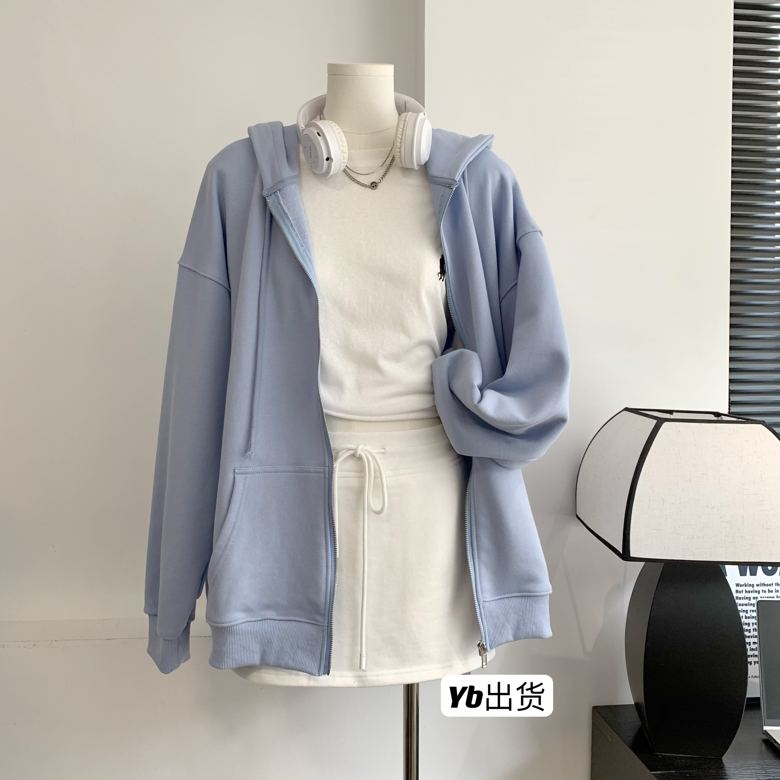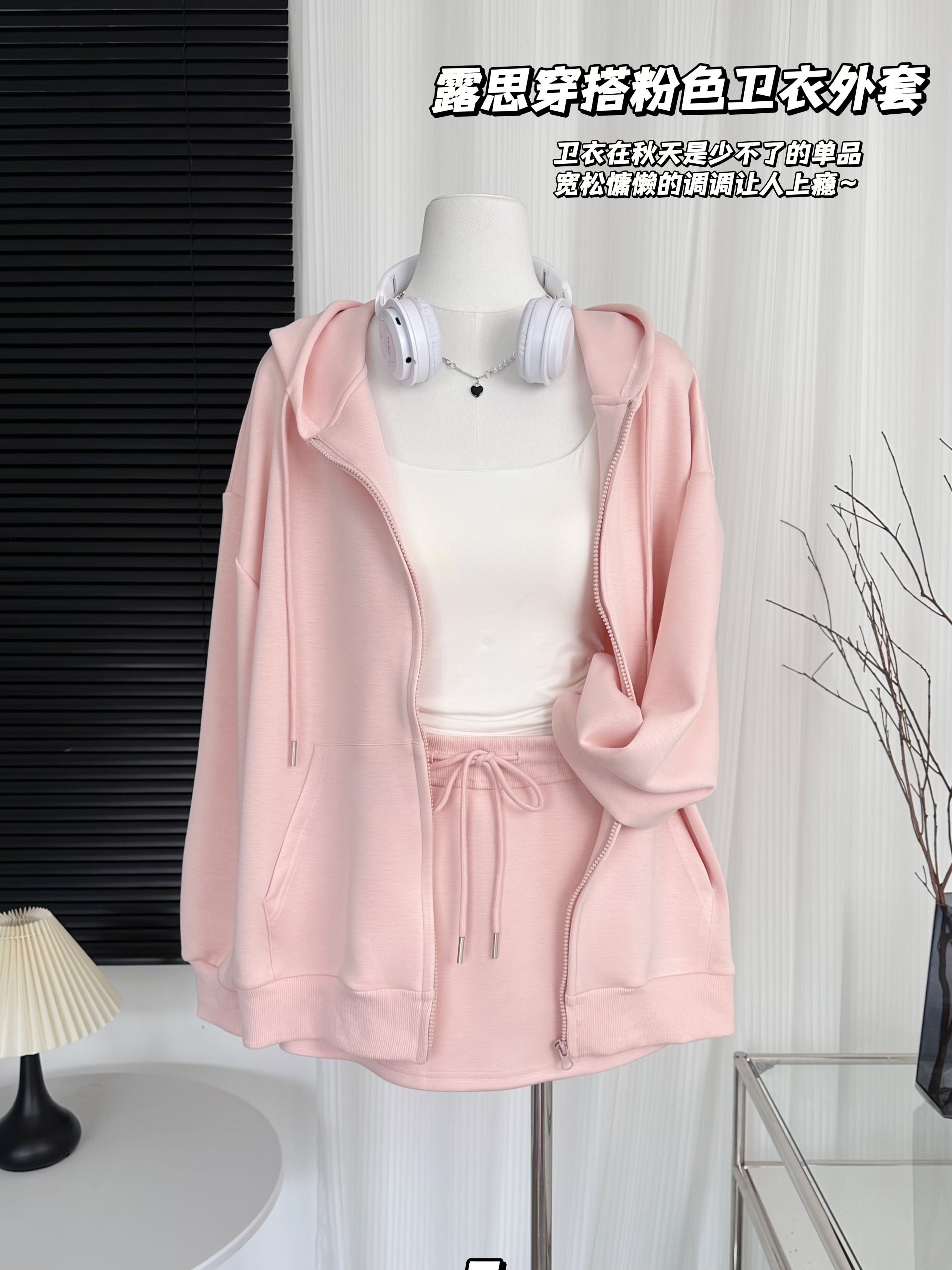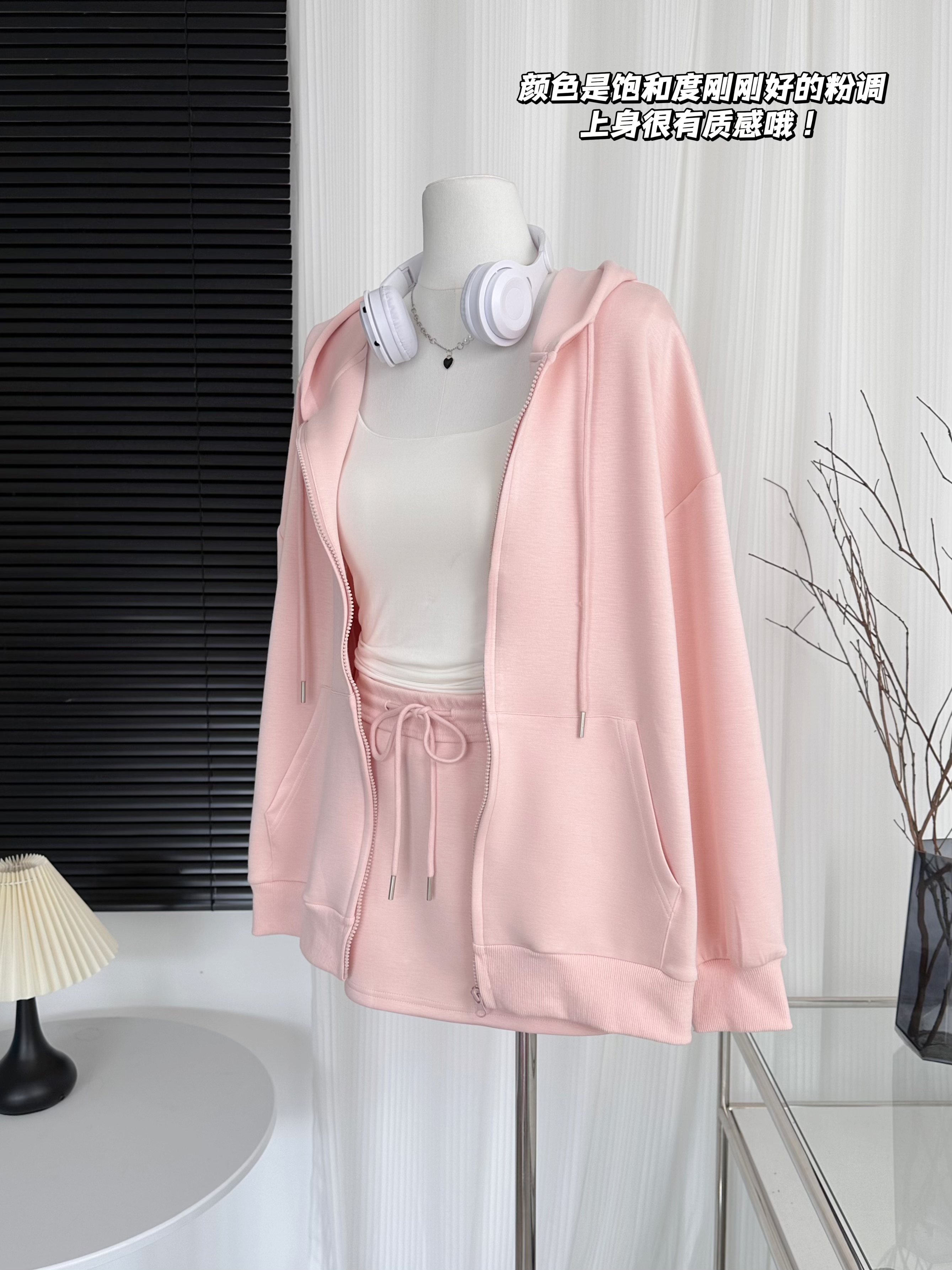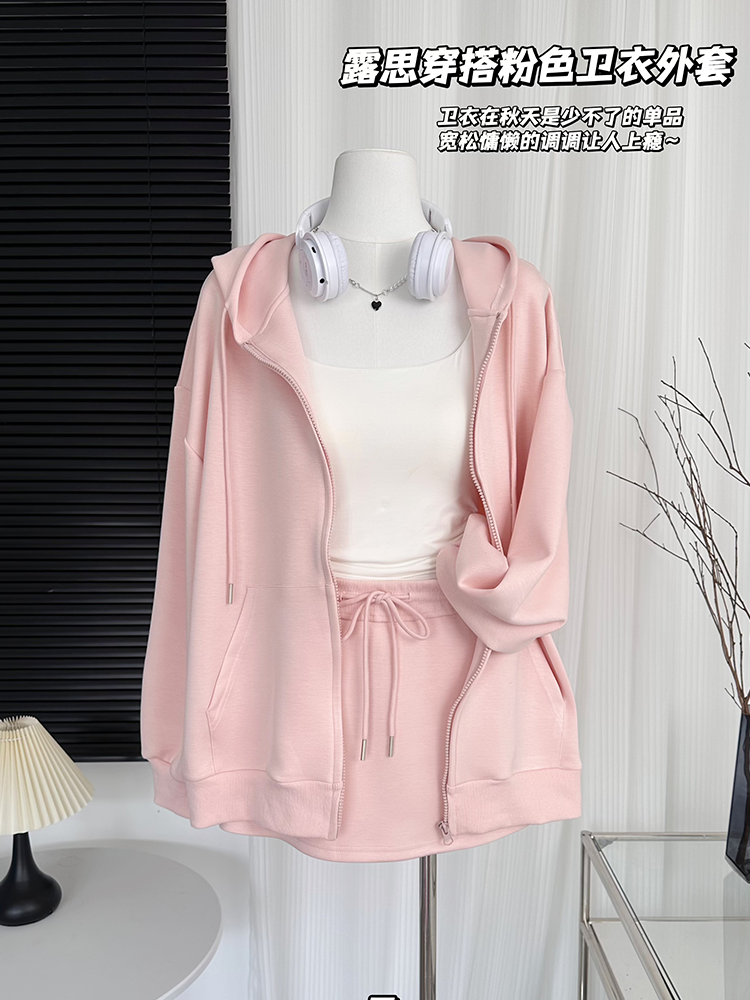 MOXI裸粉蜜桃 新款運動休閒感韓系寬鬆純色連帽開衫衛衣休閒外套