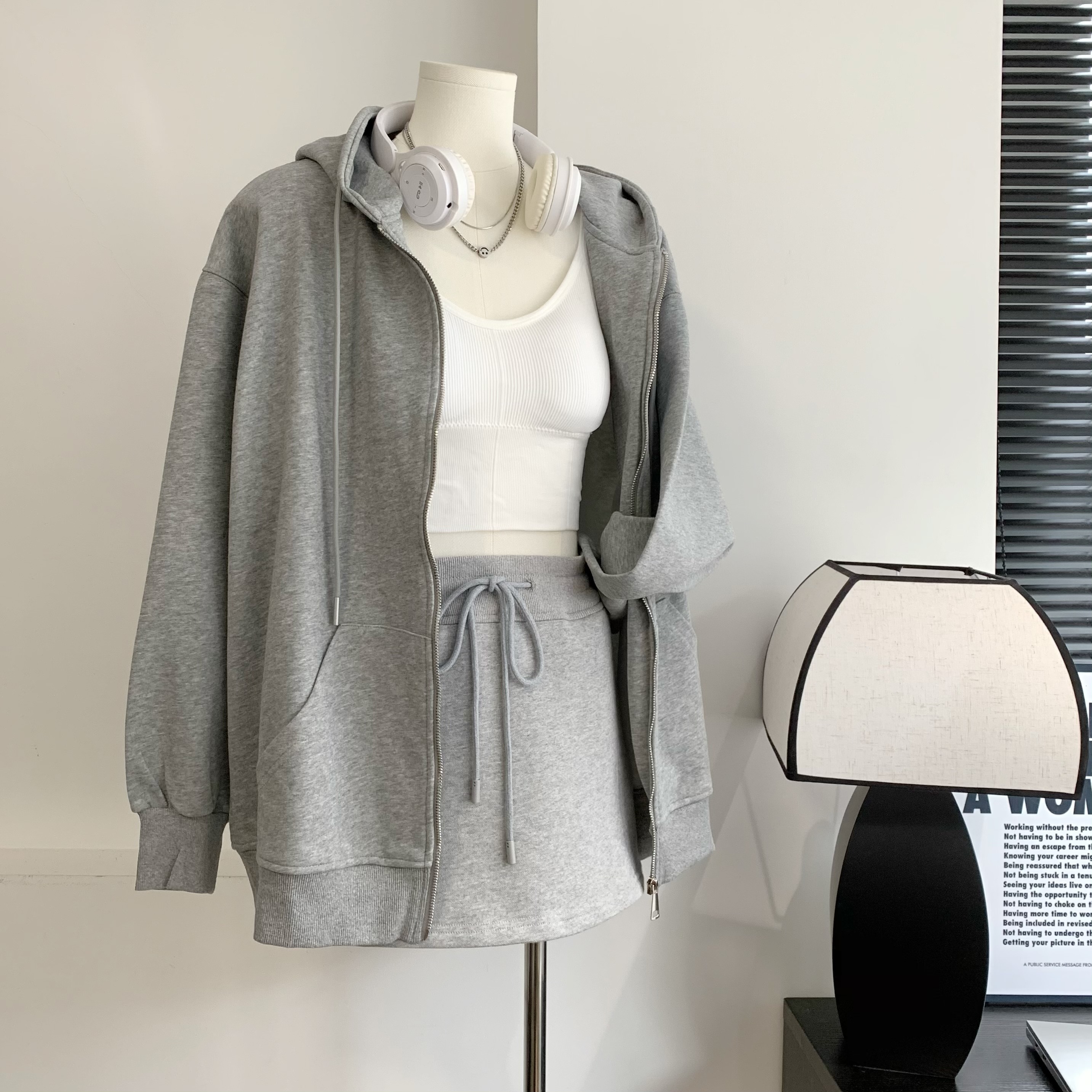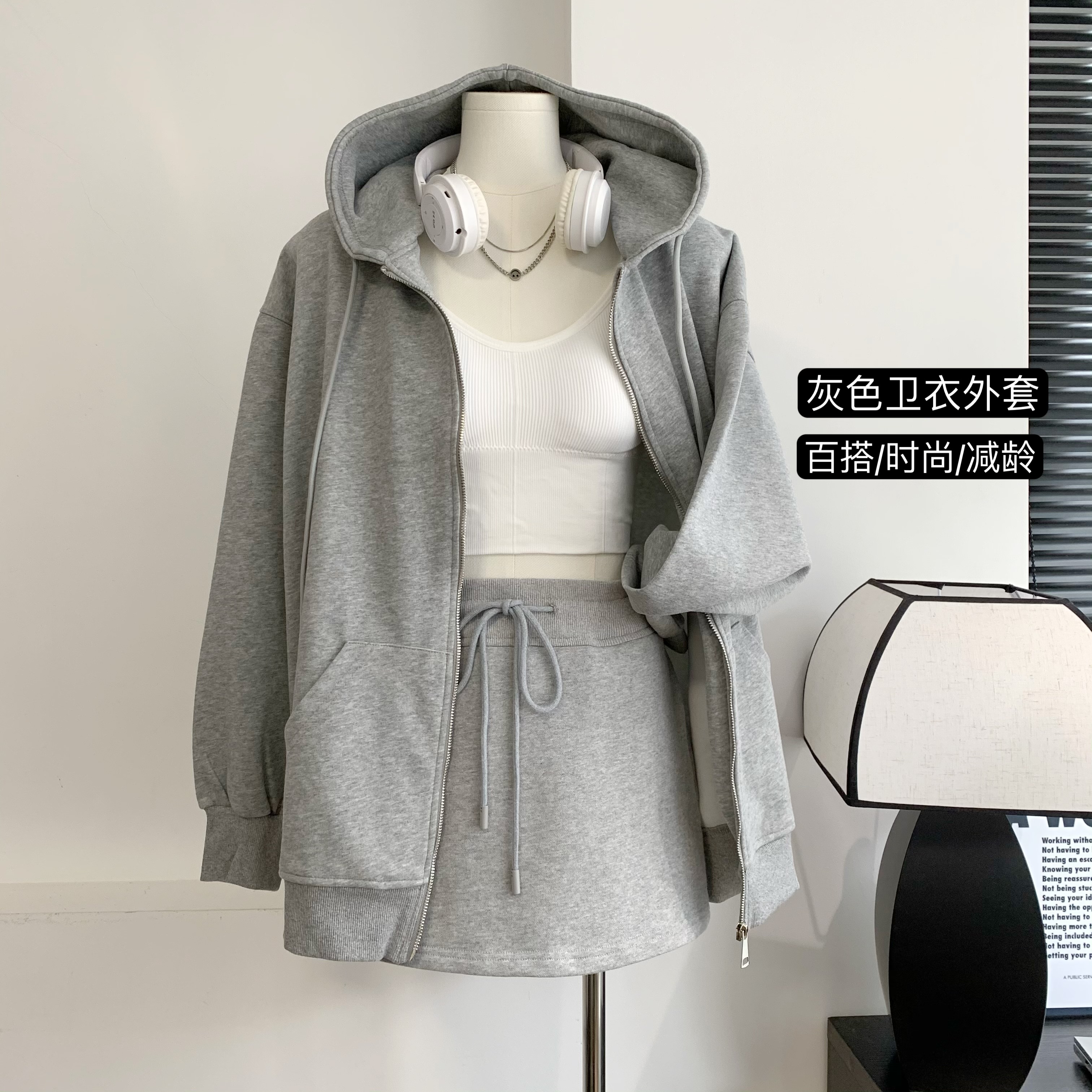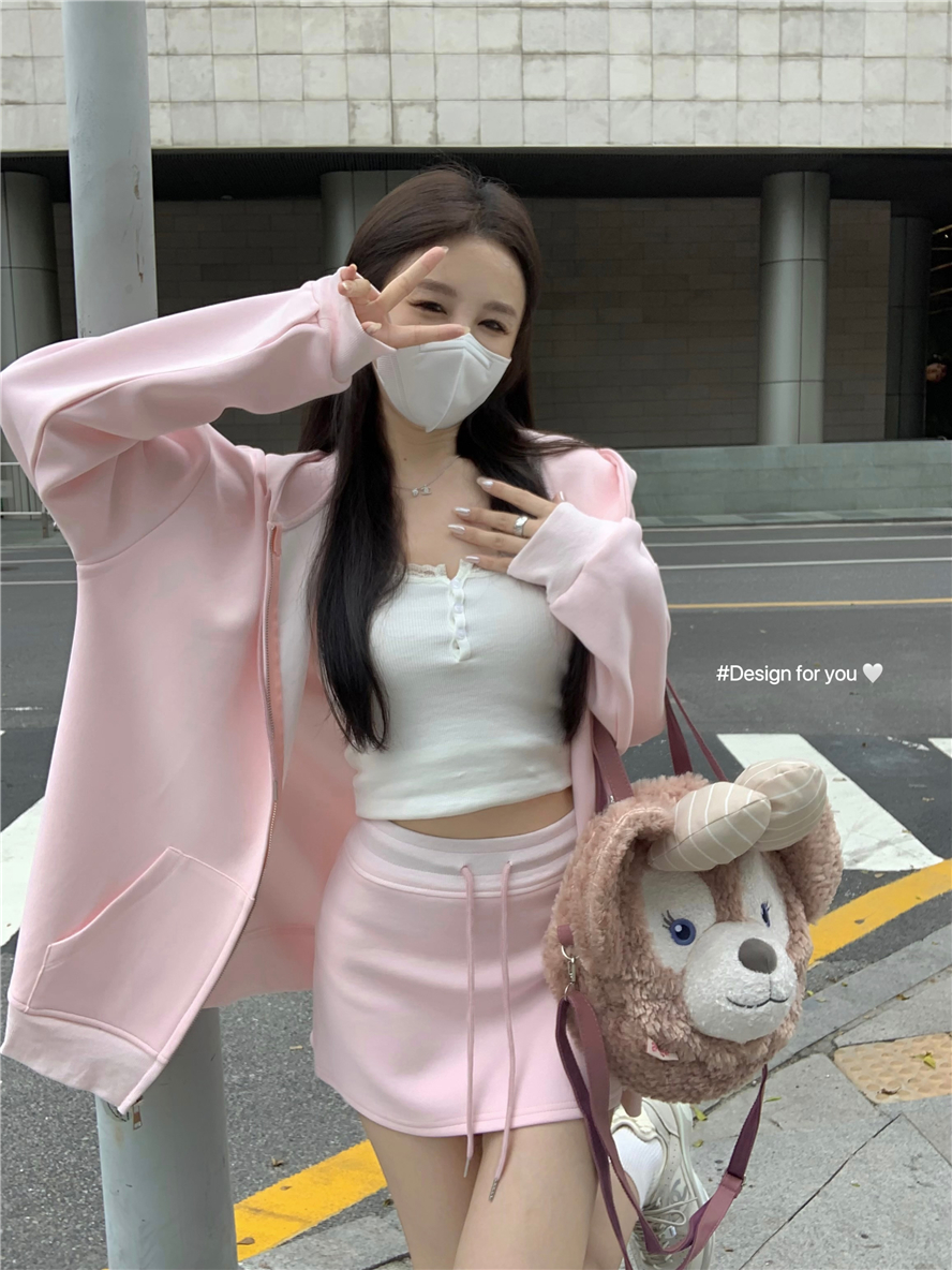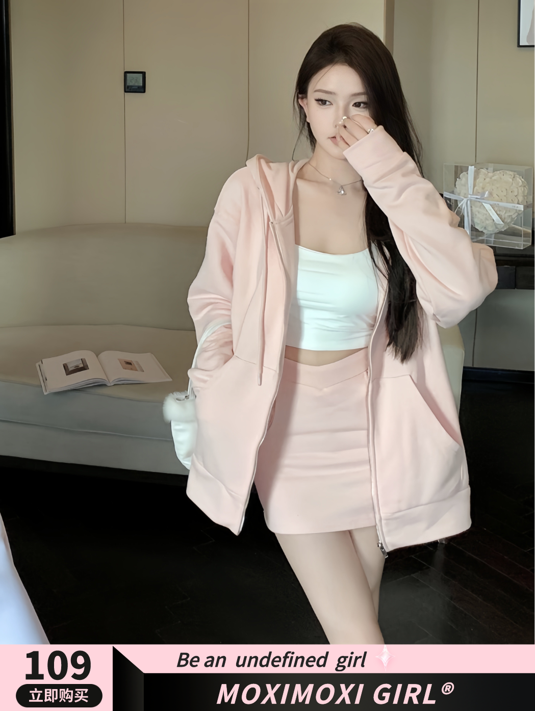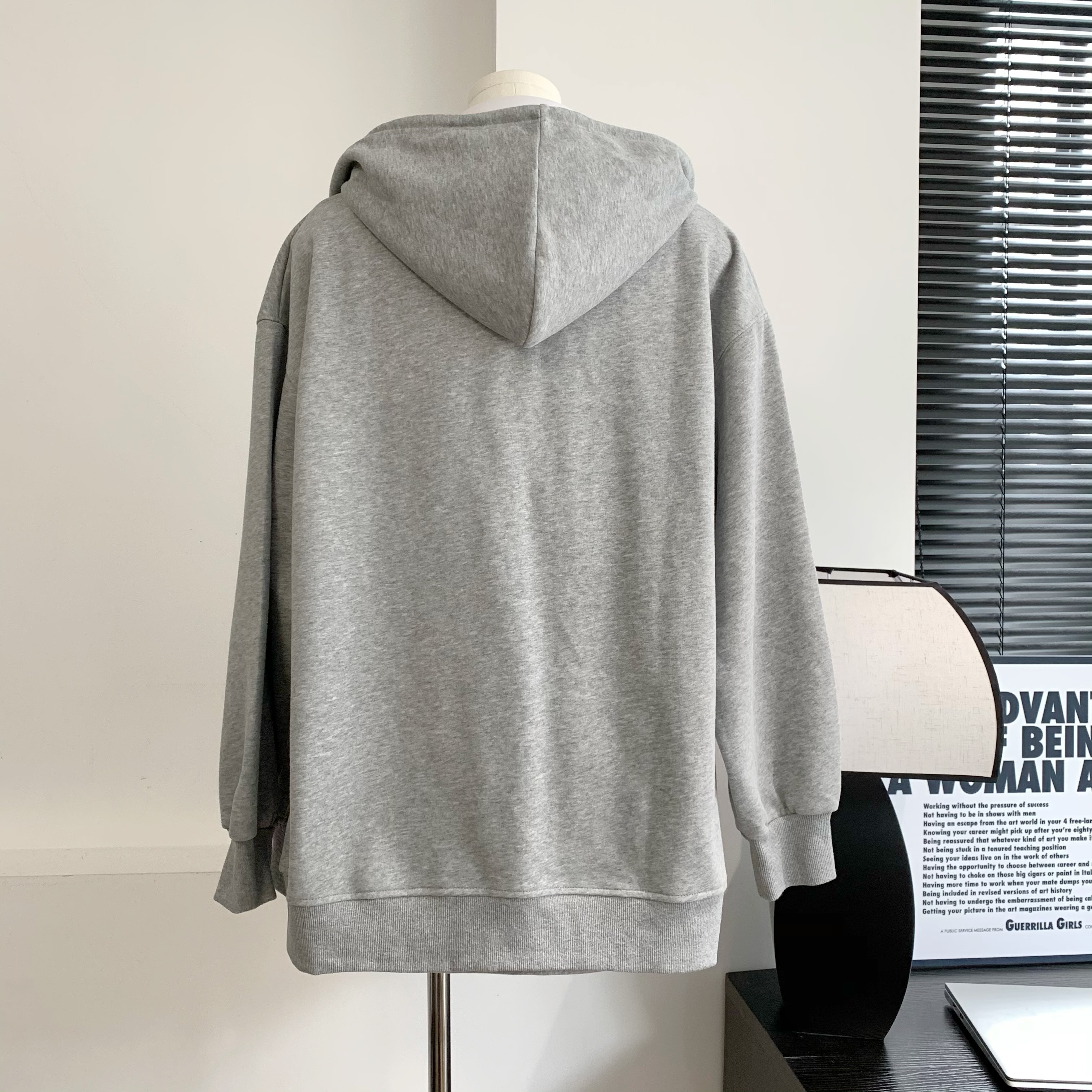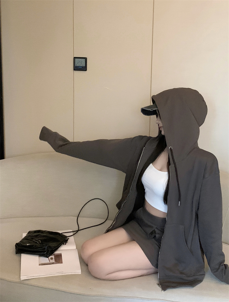 MOXI裸粉蜜桃 新款運動休閒感韓系寬鬆純色連帽開衫衛衣休閒外套