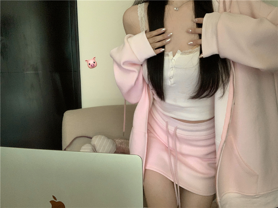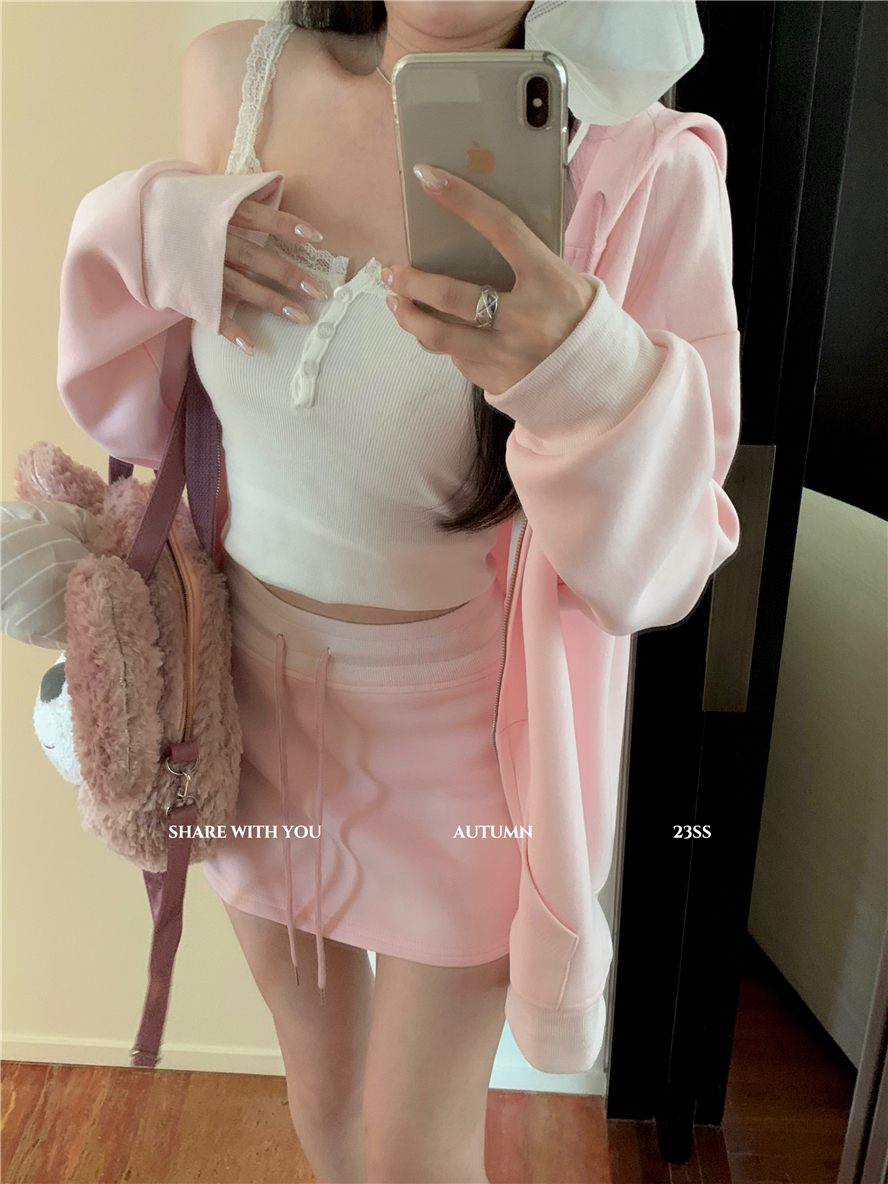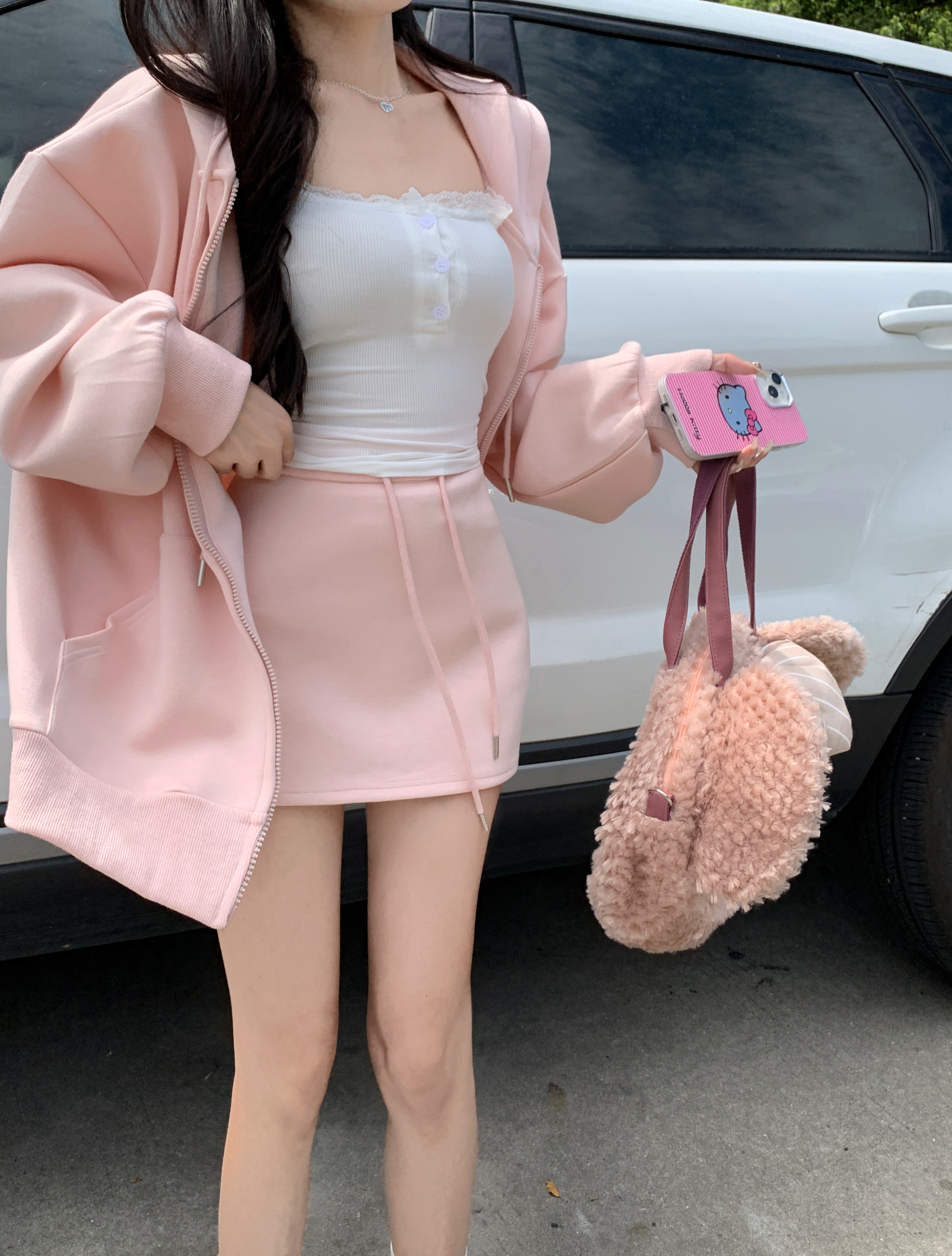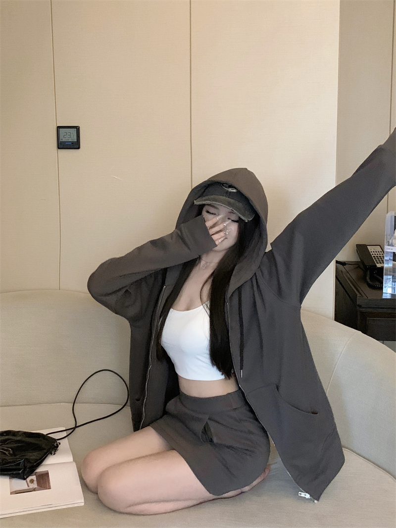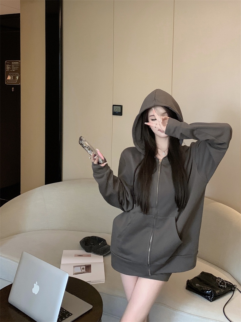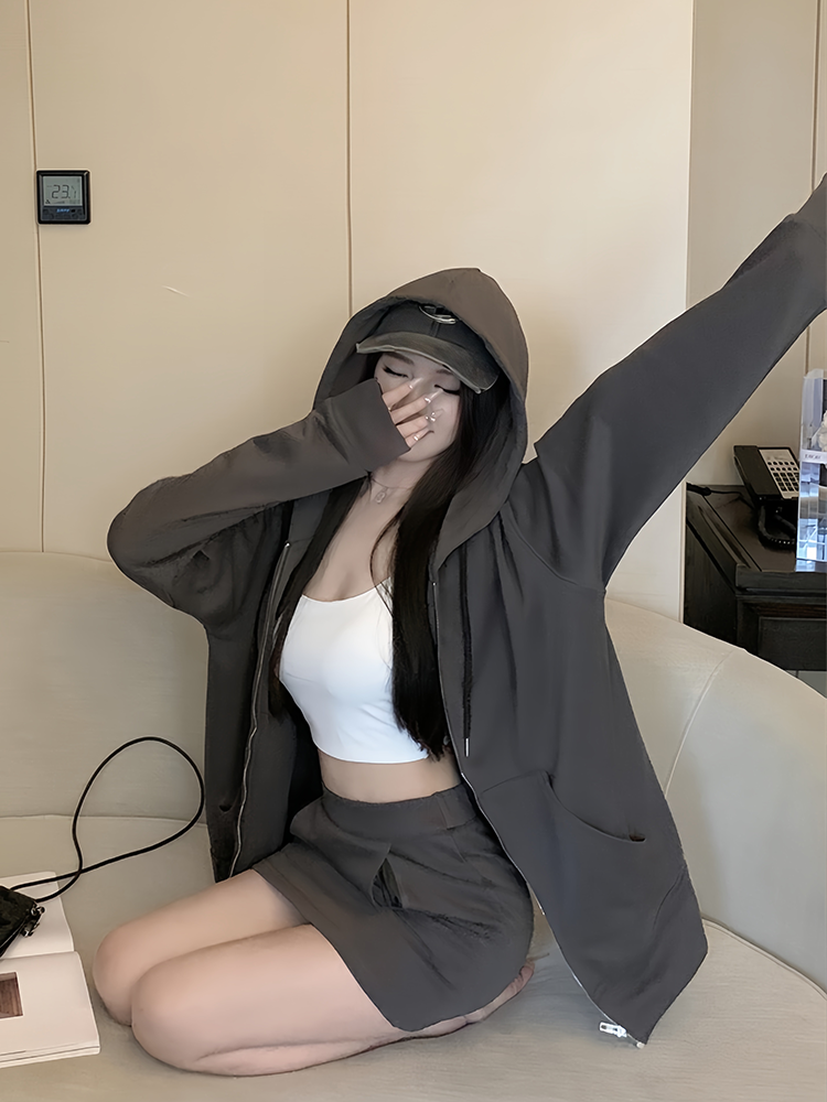 MOXI裸粉蜜桃 新款運動休閒感韓系寬鬆純色連帽開衫衛衣休閒外套