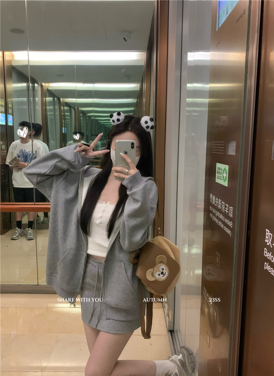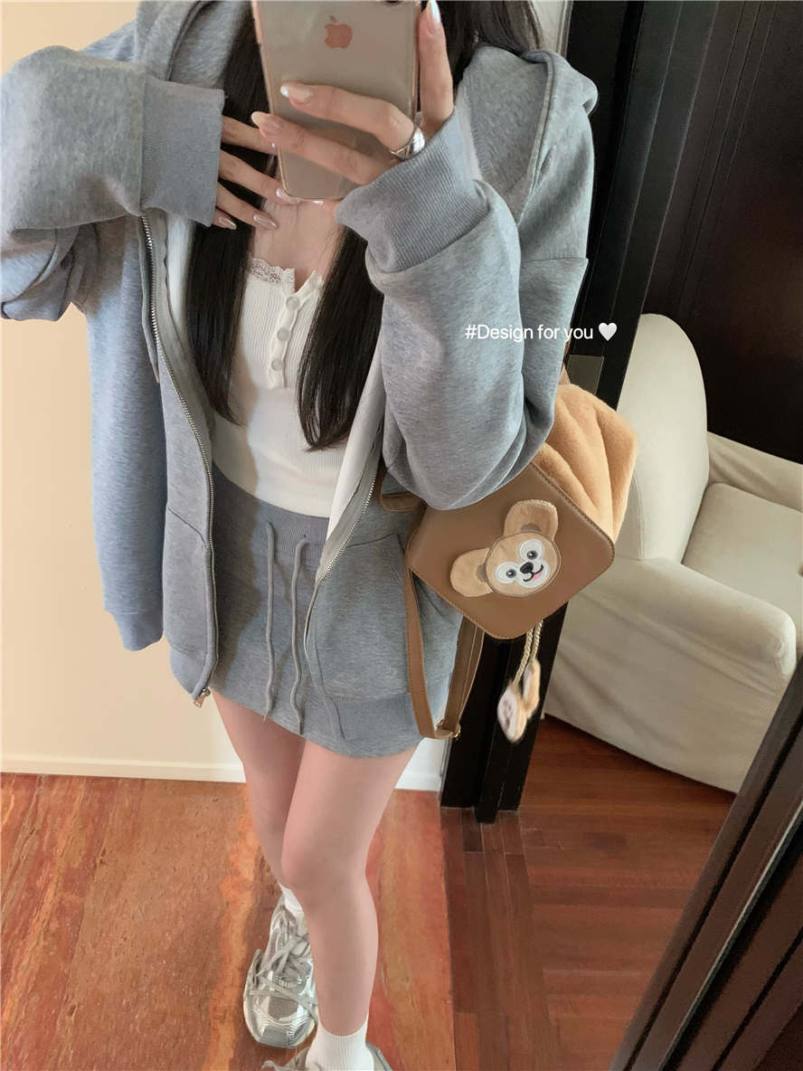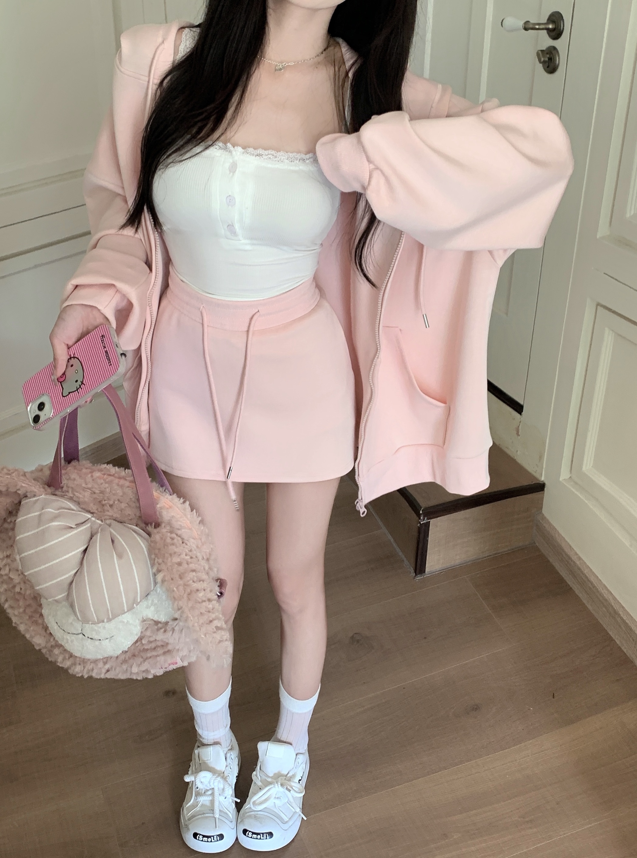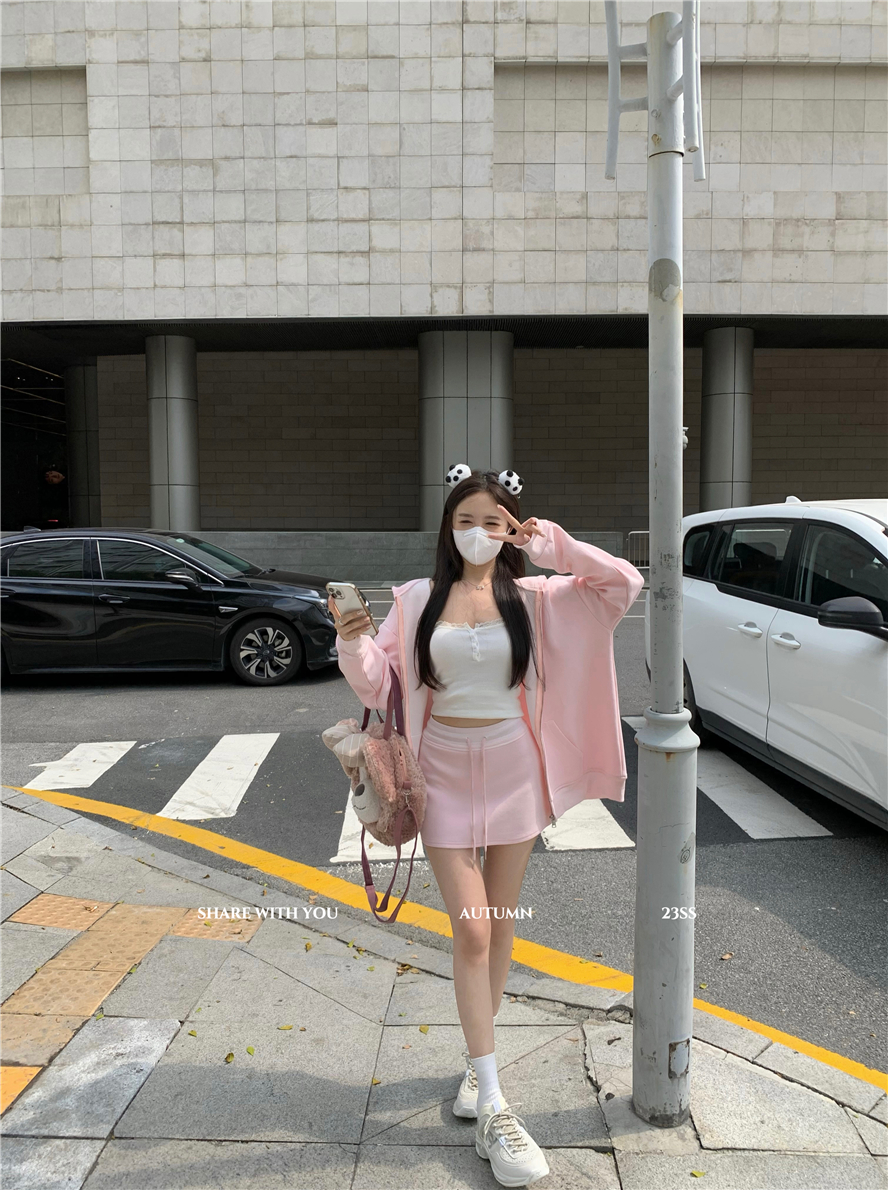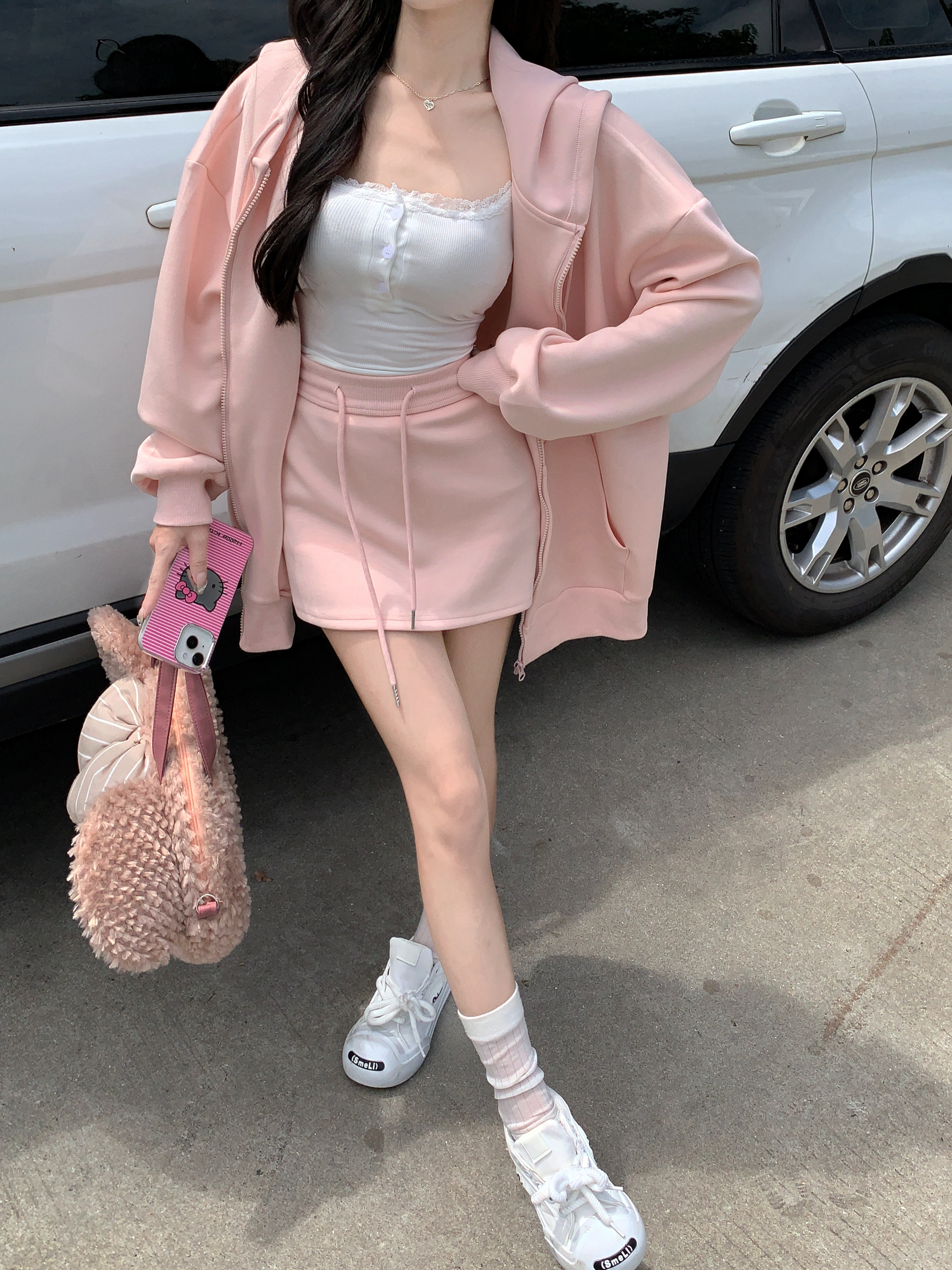 MOXI裸粉蜜桃 新款運動休閒感韓系寬鬆純色連帽開衫衛衣休閒外套