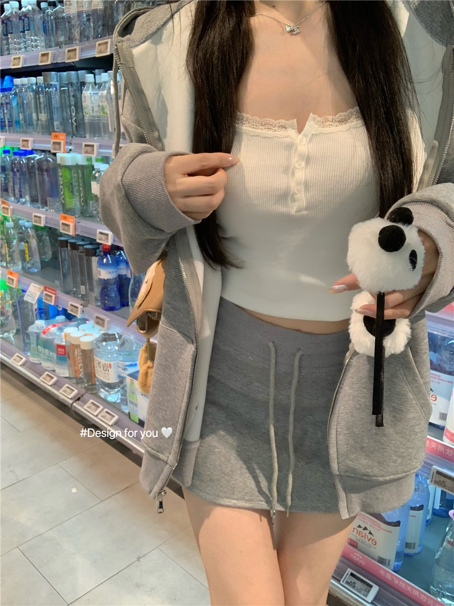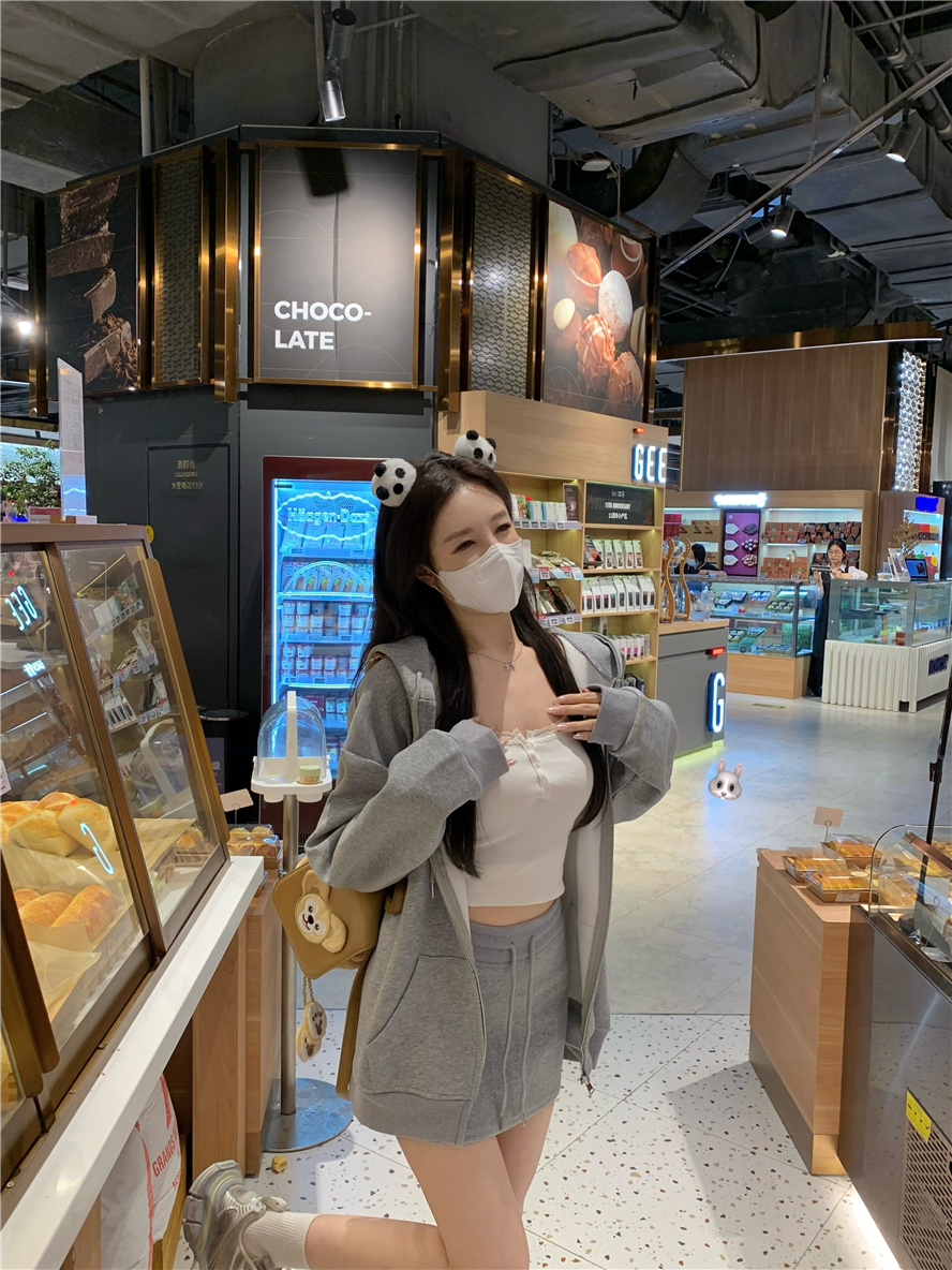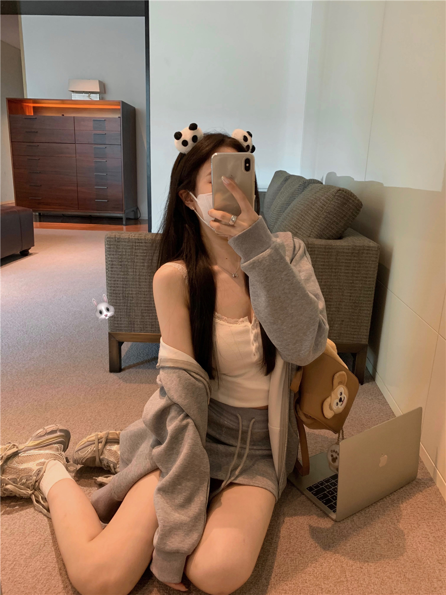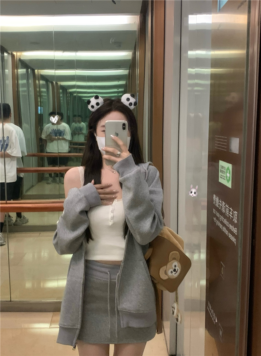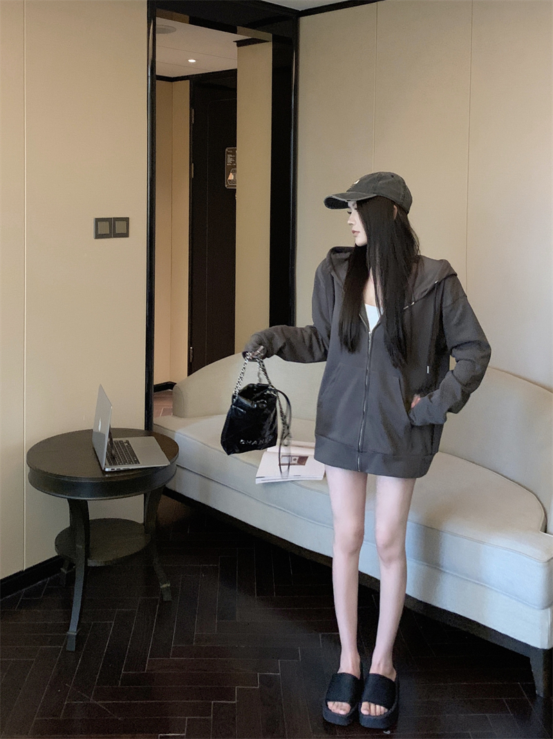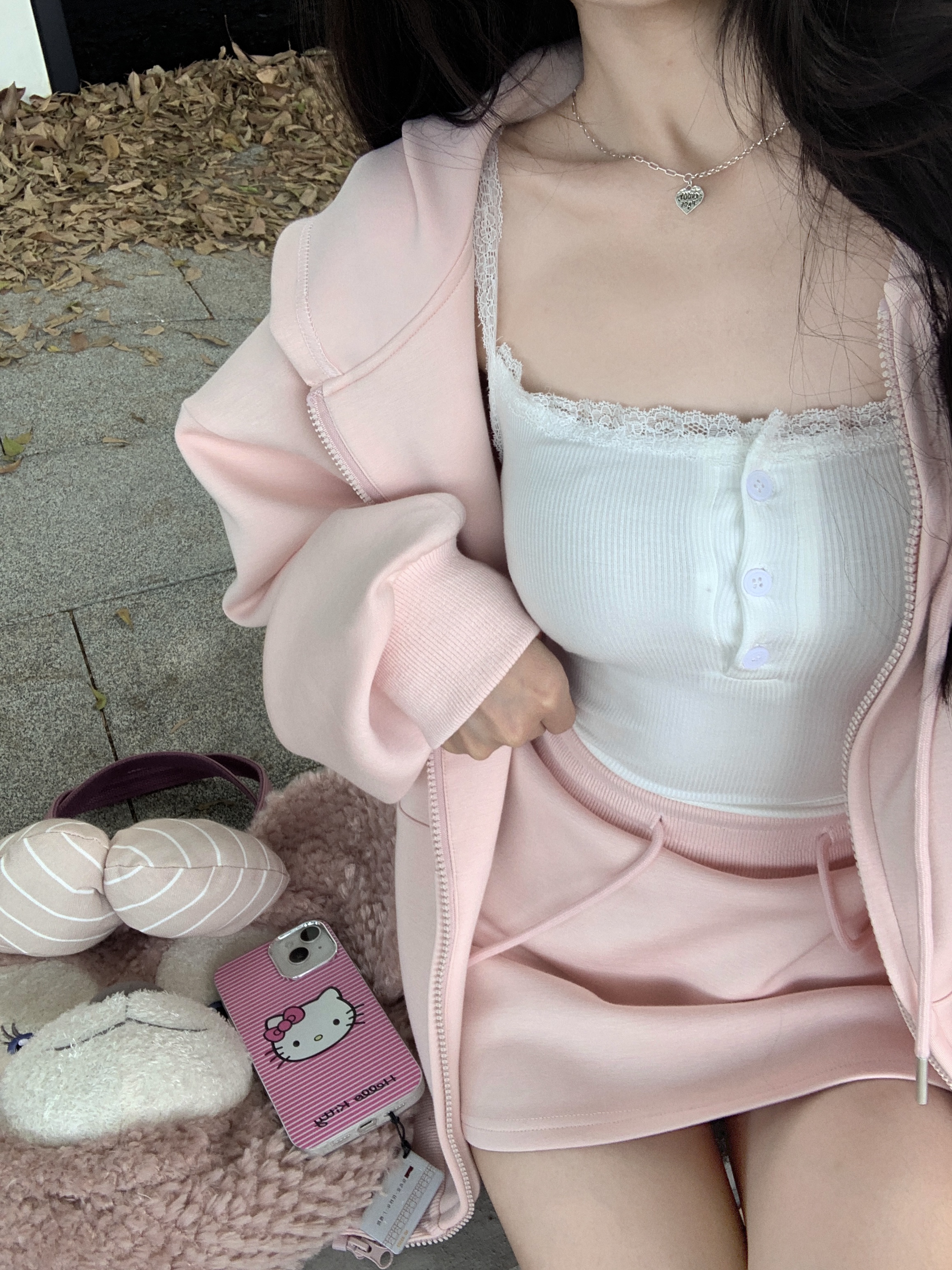 MOXI裸粉蜜桃 新款運動休閒感韓系寬鬆純色連帽開衫衛衣休閒外套