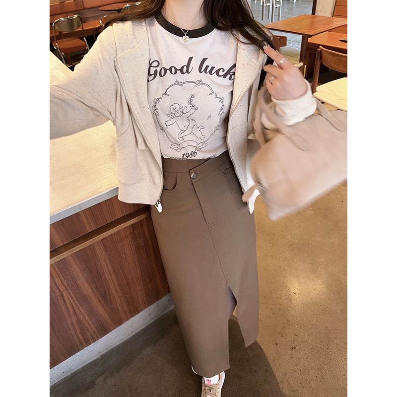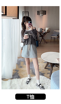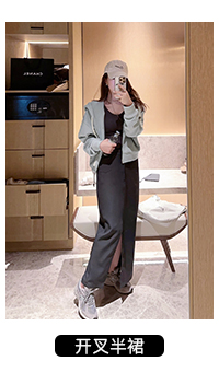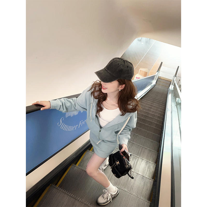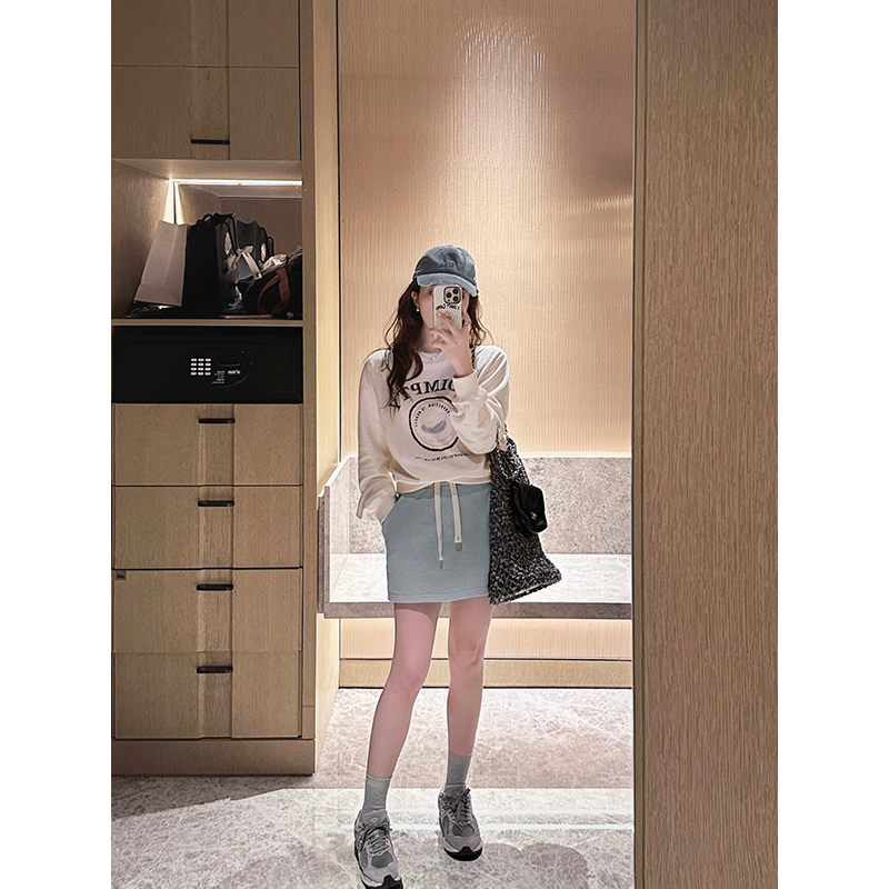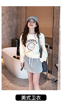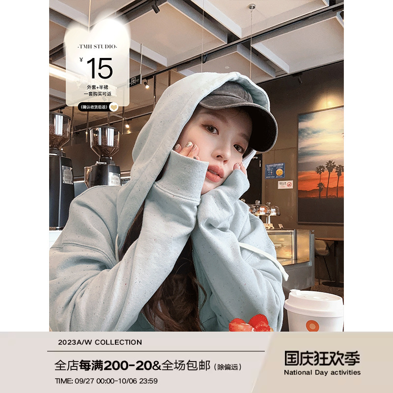 TMH STUDIO 顆粒冰淇淋/慵懶短款連帽運動衫外套女秋季半身裙兩件套