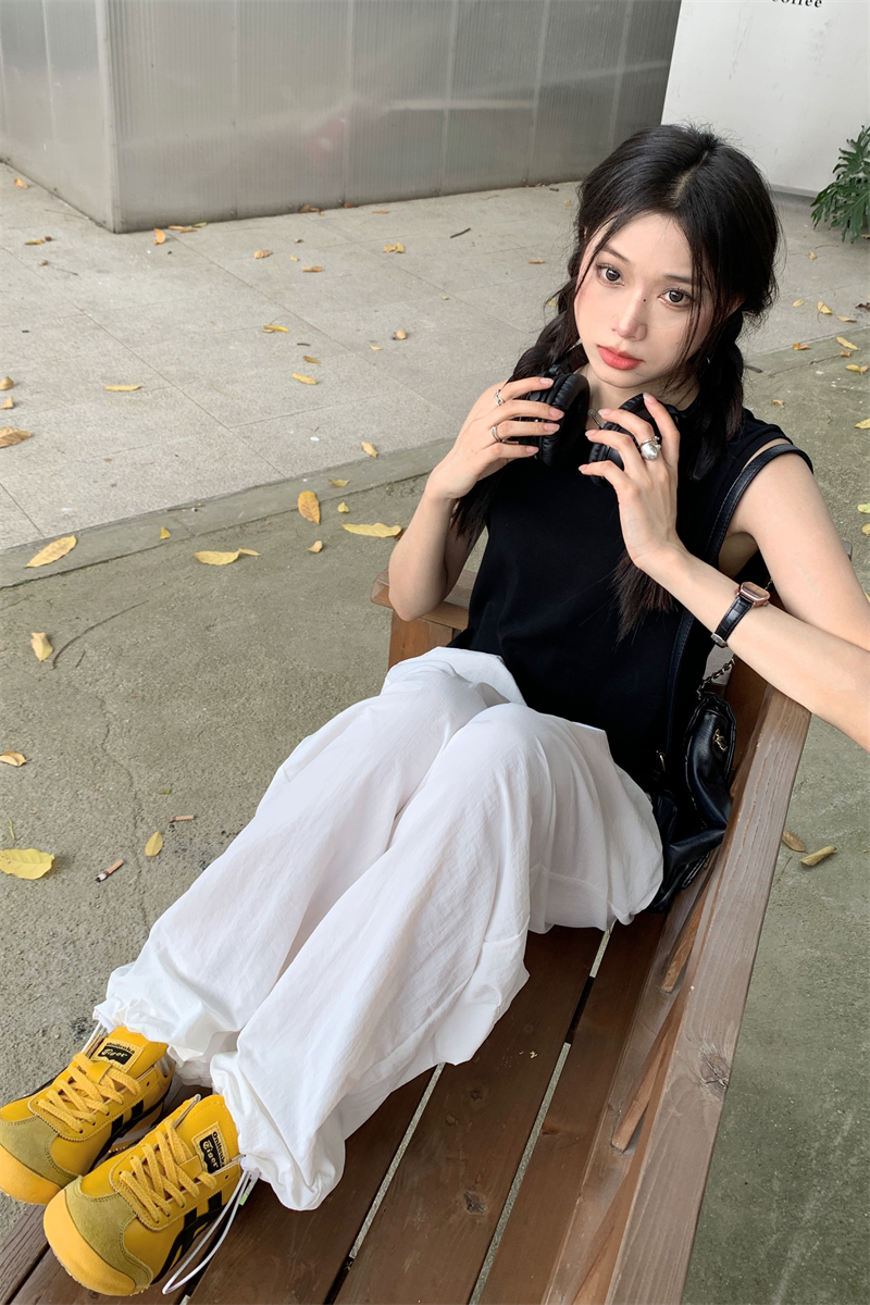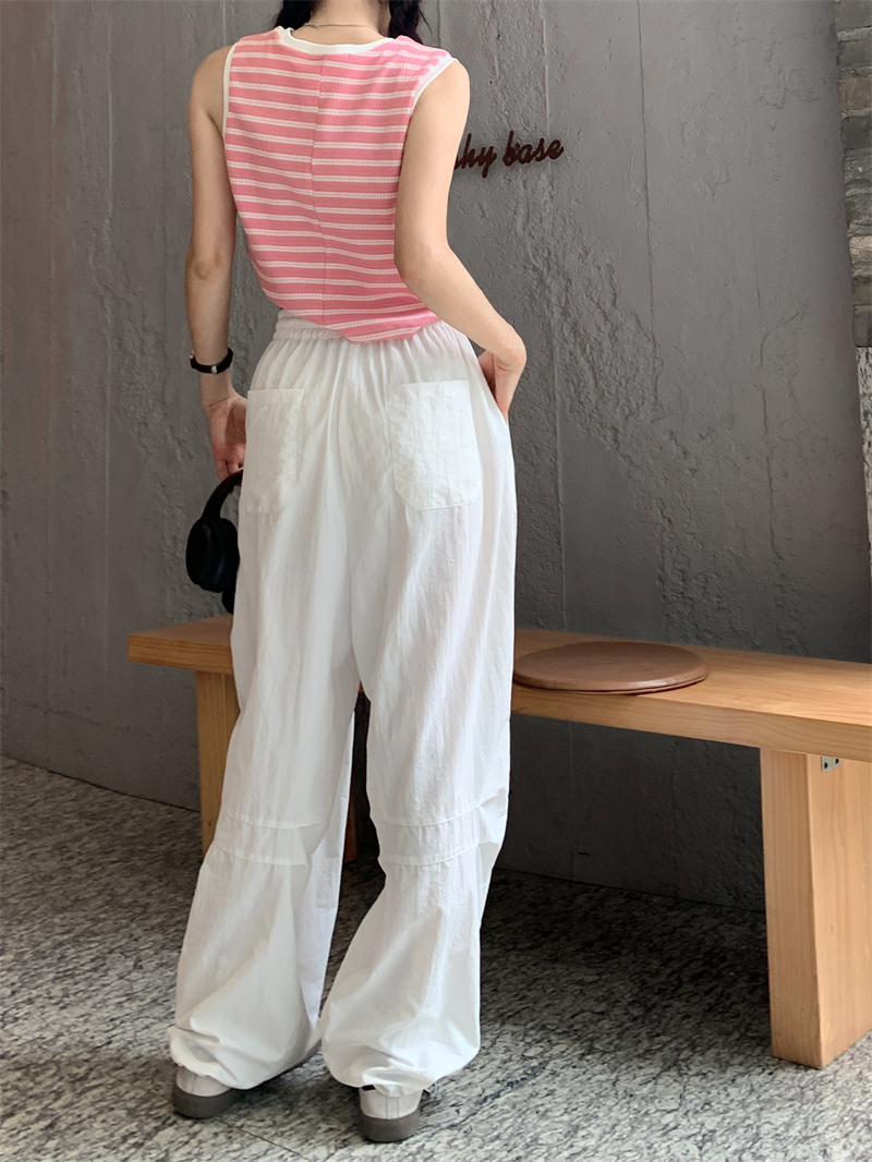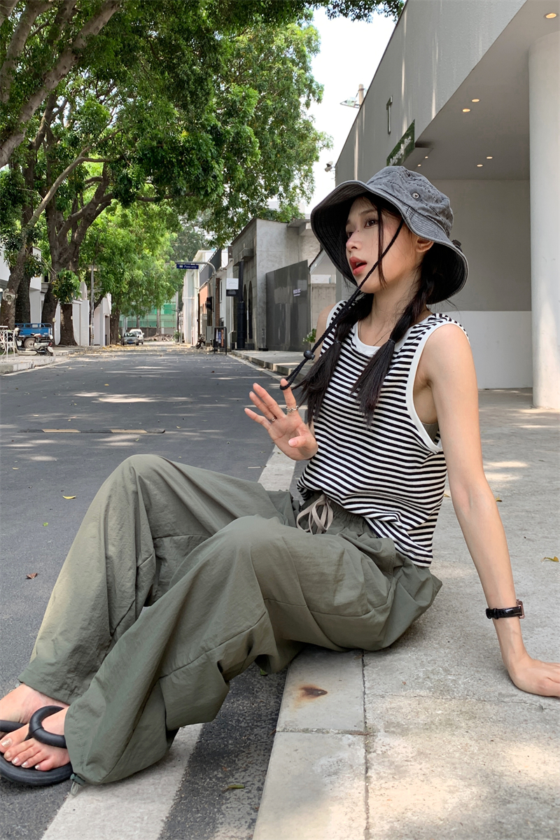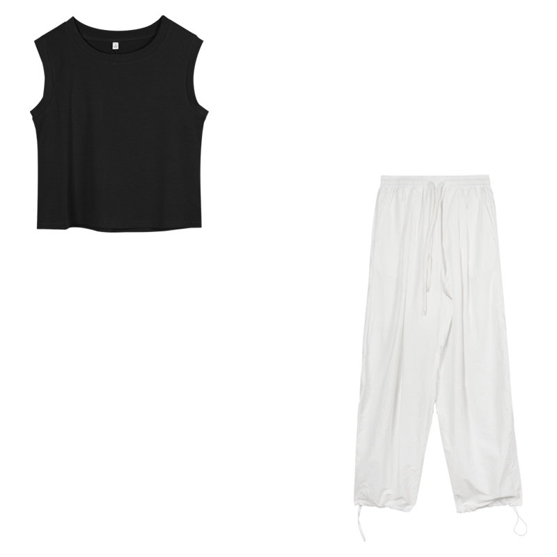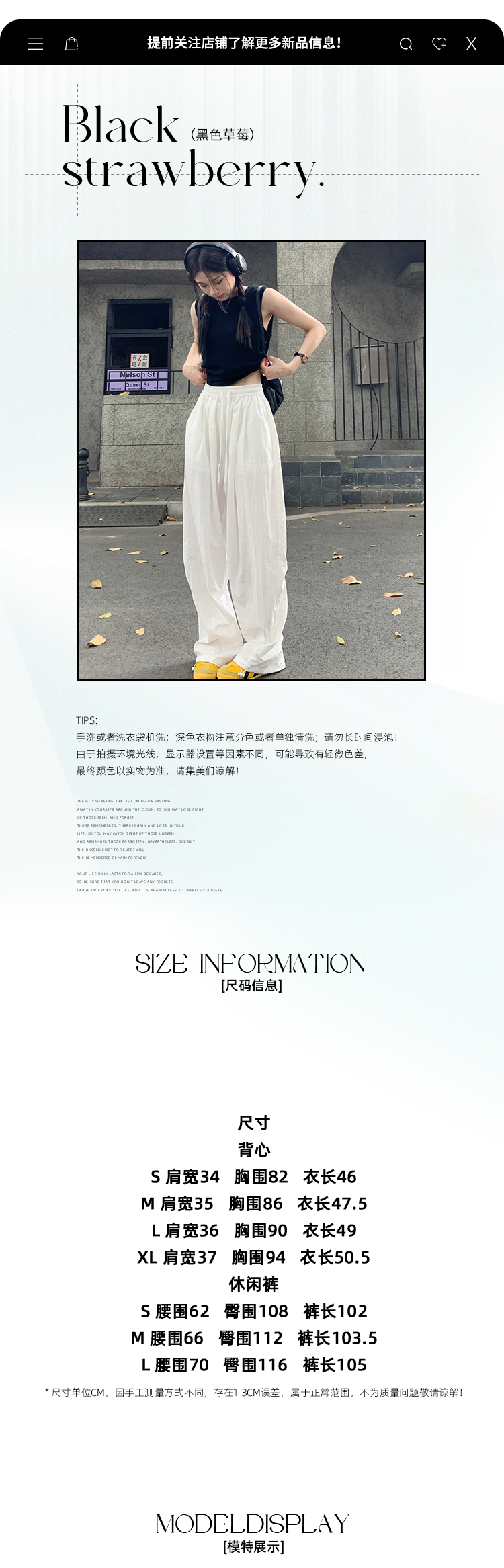 顏色分類 粉條紋背心,黑白背心,卡其背心,白色背心,黑色休閒褲,白色休閒褲,軍綠休閒褲,黑色背心
