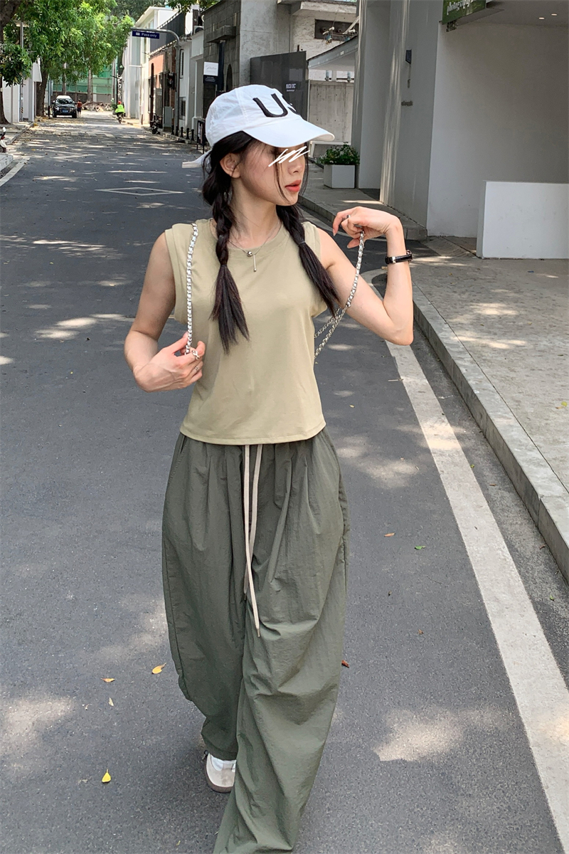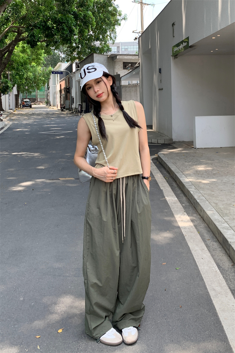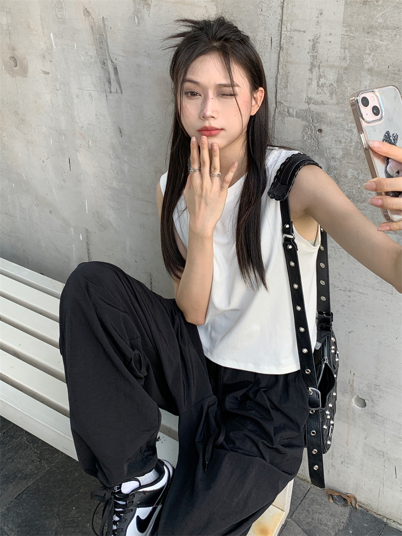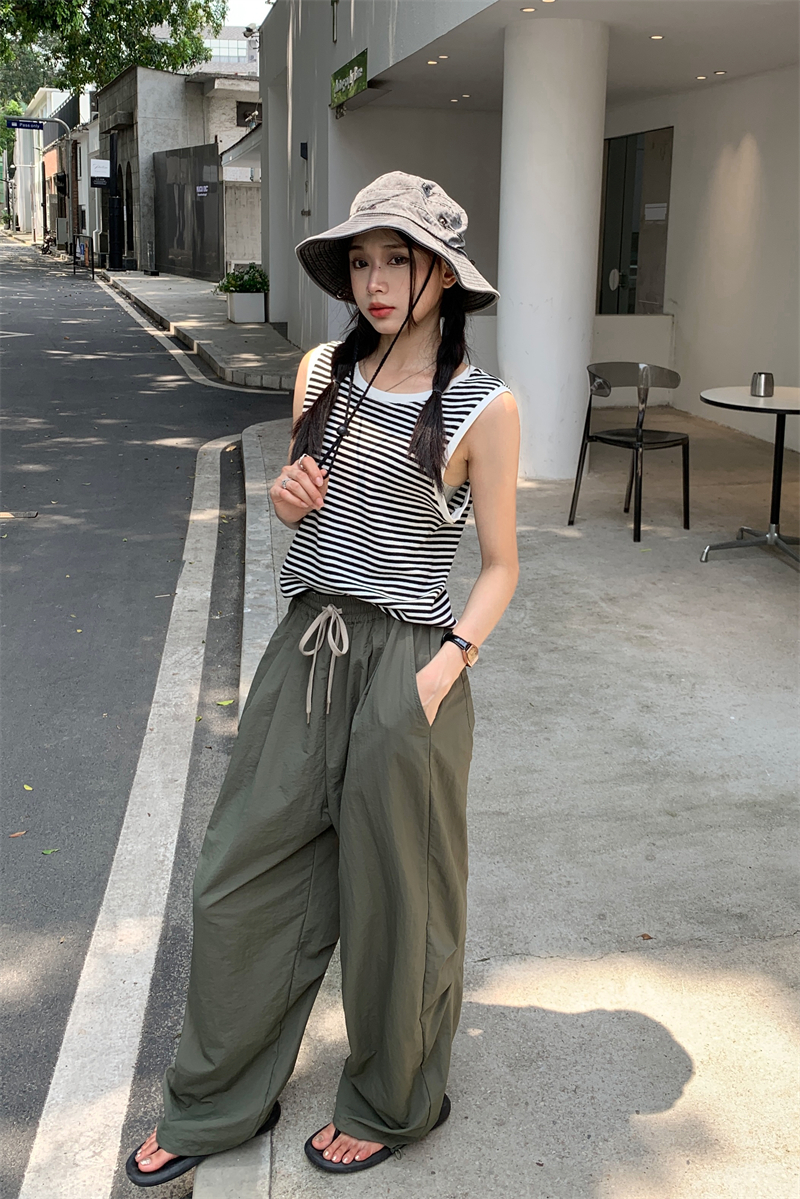 顏色分類 粉條紋背心,黑白背心,卡其背心,白色背心,黑色休閒褲,白色休閒褲,軍綠休閒褲,黑色背心