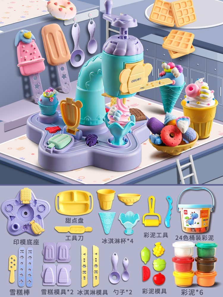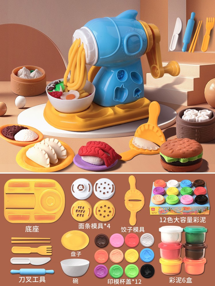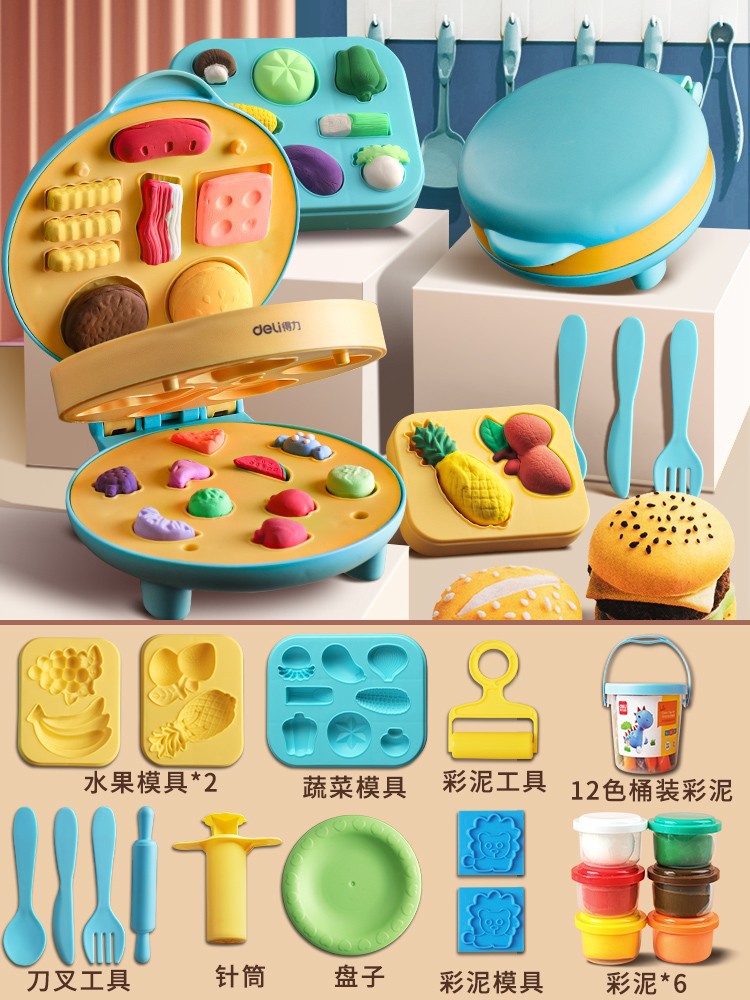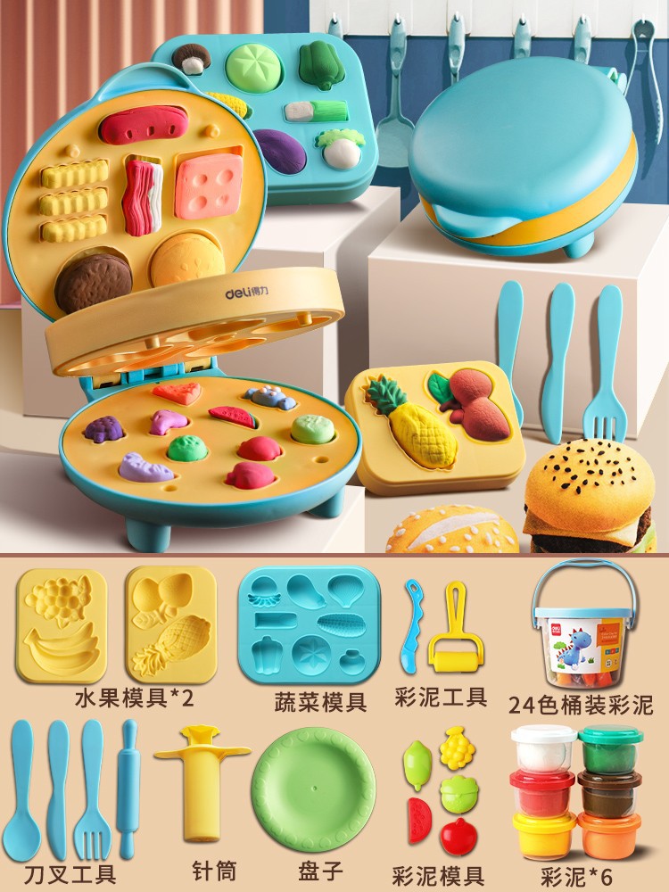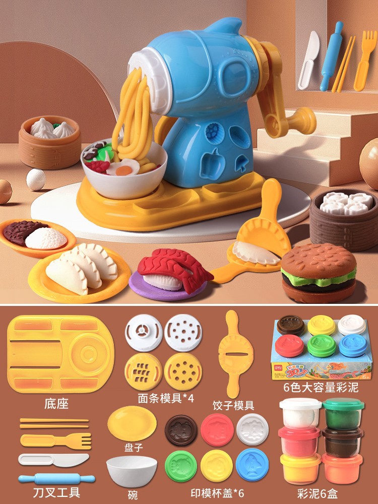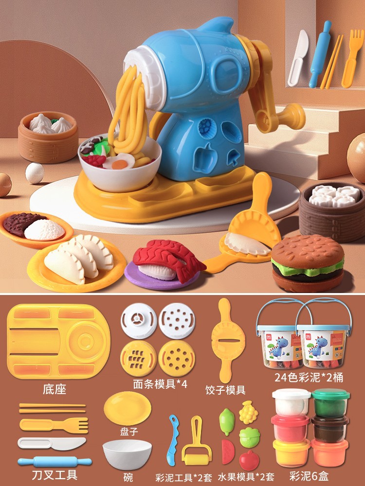 得力67801面条机儿童玩具橡皮泥食品级粘土黏土彩泥模具批发套装