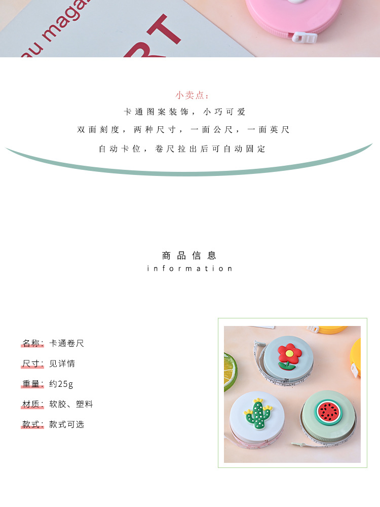卡通迷你小卷尺多功能圆形便携皮尺测量三围胸围腰围软尺子量衣尺
