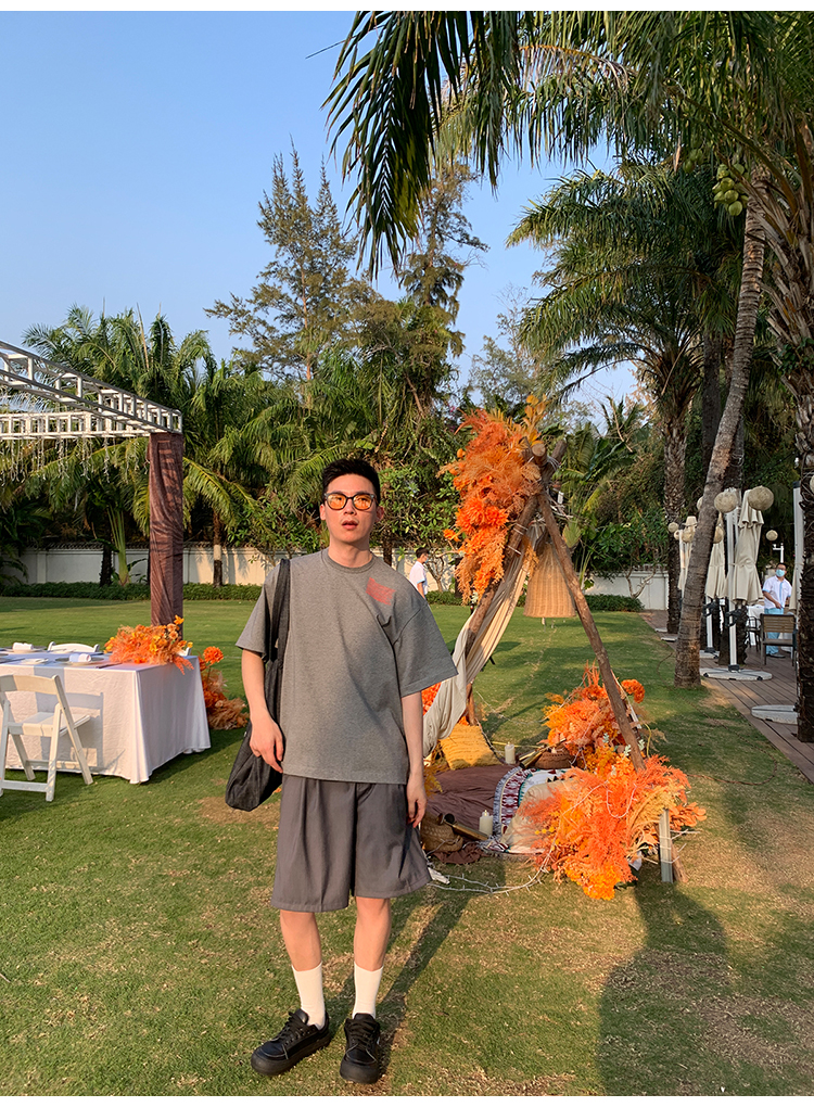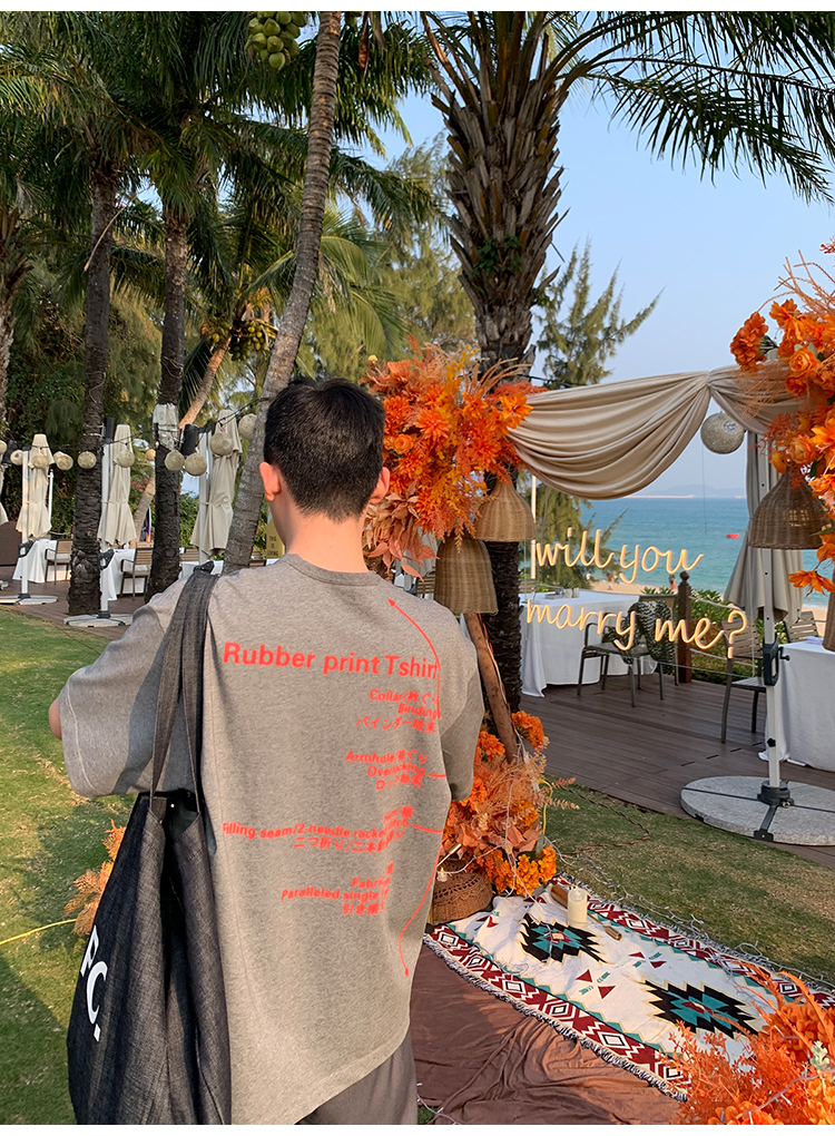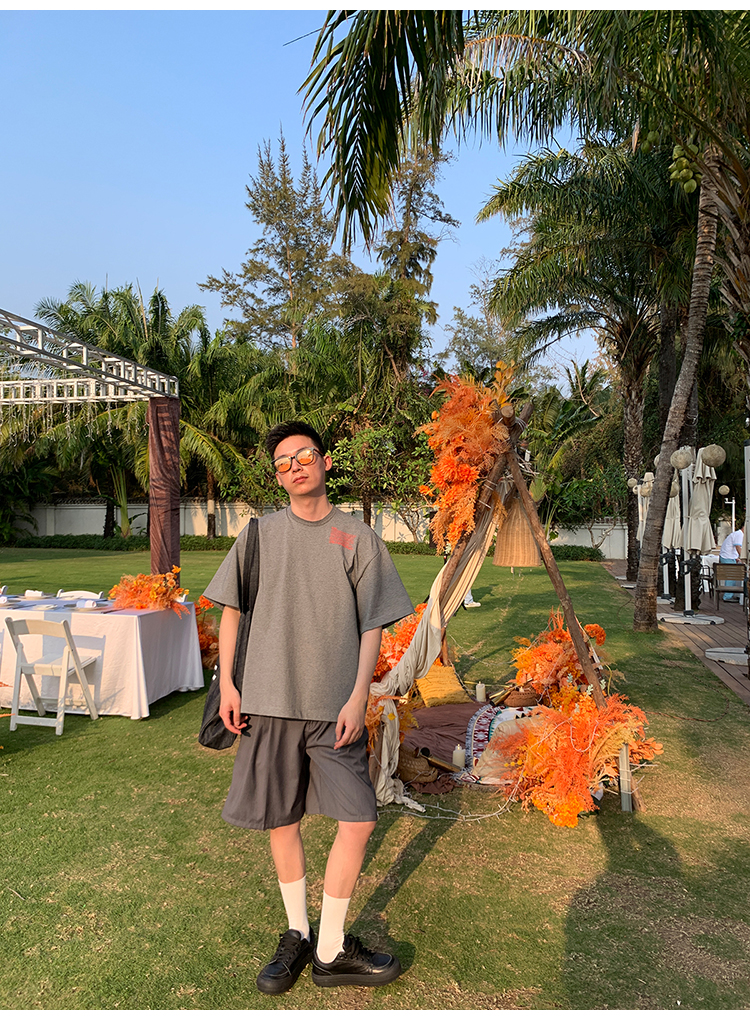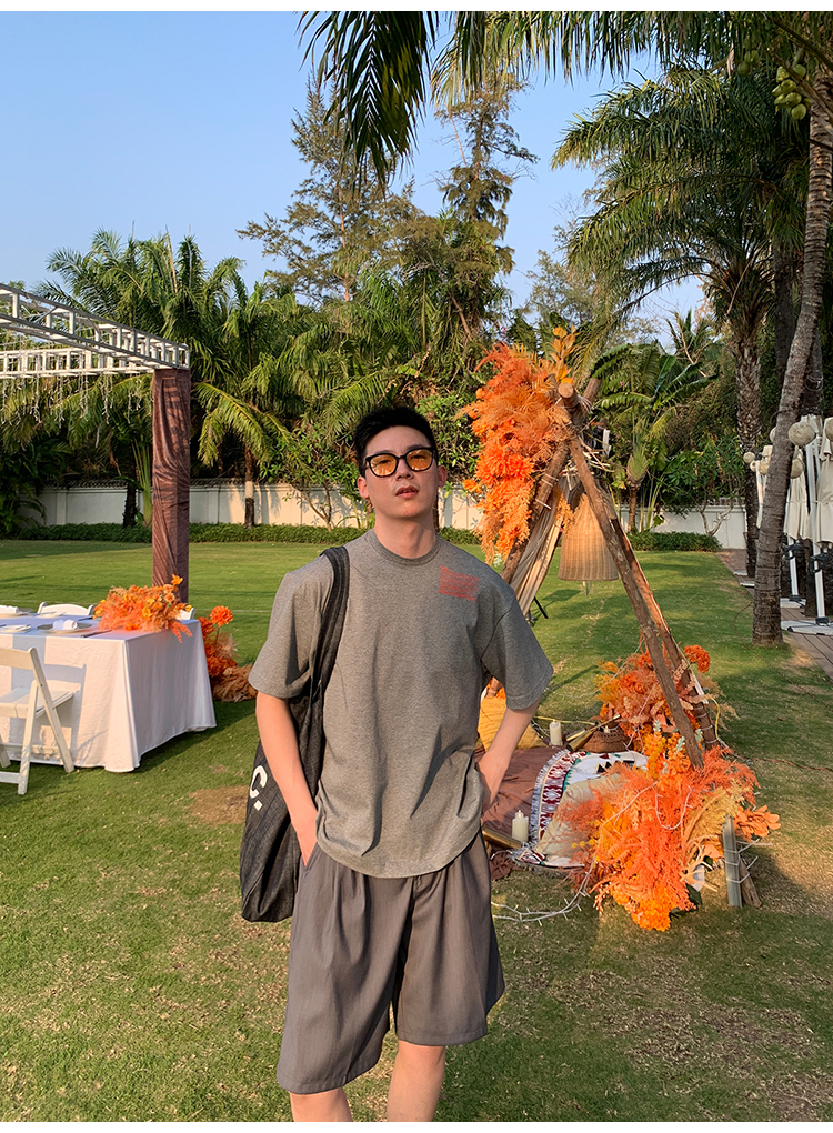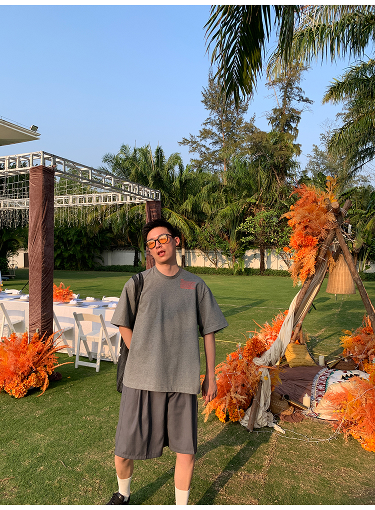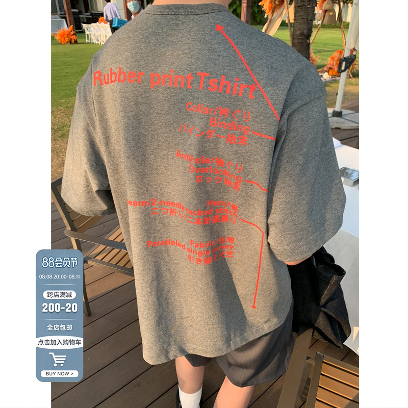 Kolor自制日系350g重磅印花短袖T恤男純棉內搭衣寬鬆情侶圓領T恤