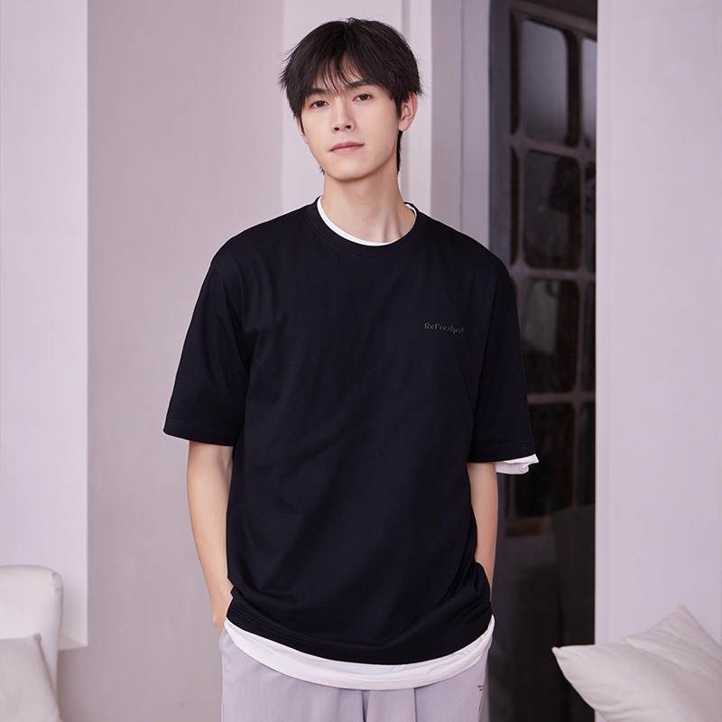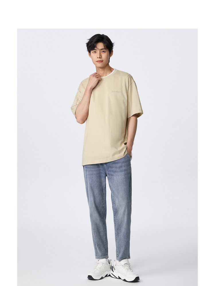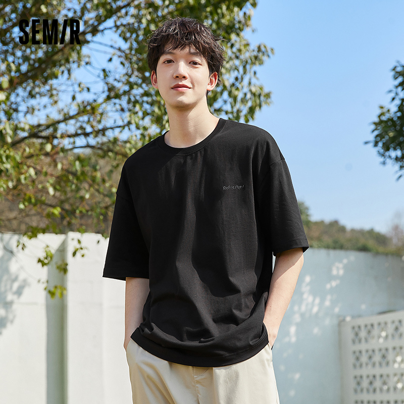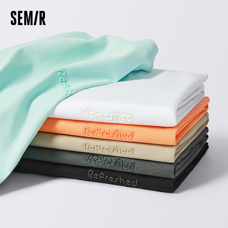 森馬短袖T恤男2023年夏季新款情侶字母印花日常休閒舒適純棉上衣