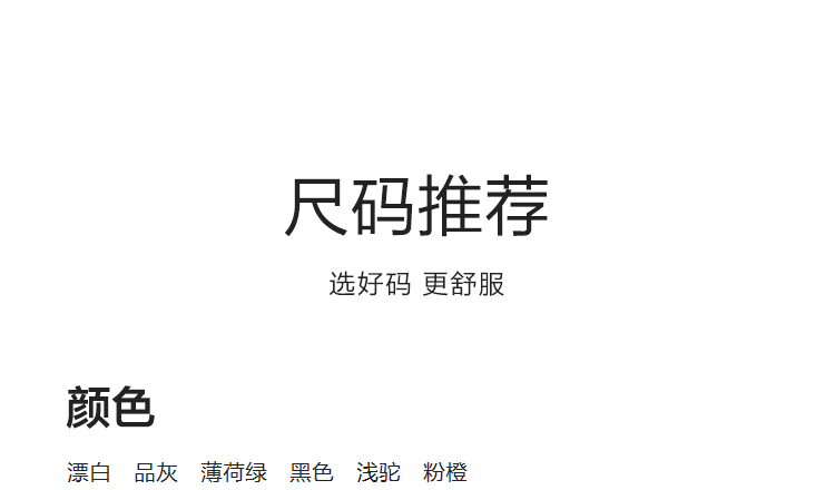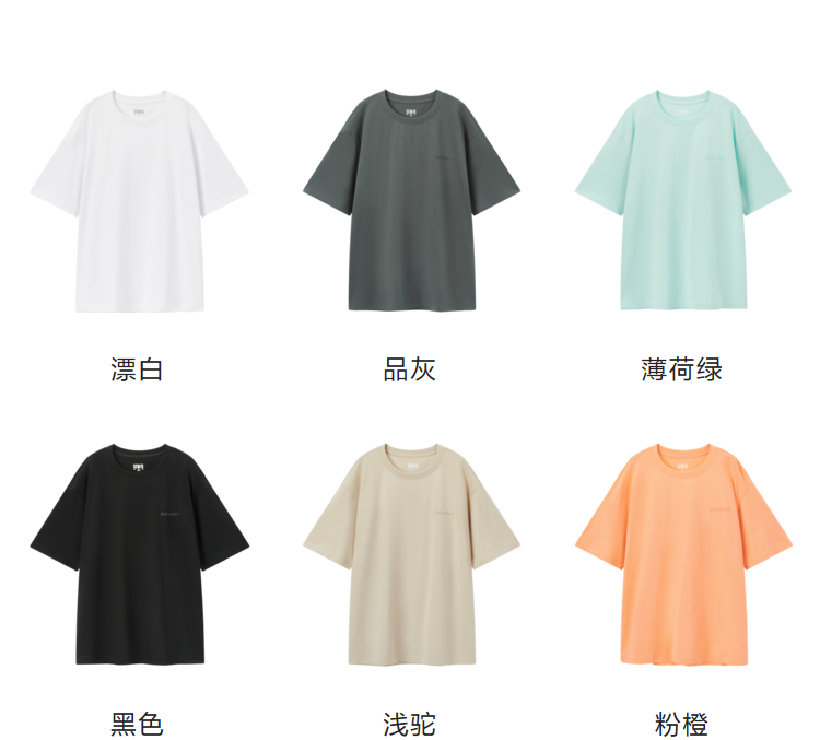 顏色 品灰20222 漂白10007 黑色90001 淺駝50025 薄荷綠41308 粉橙60839
