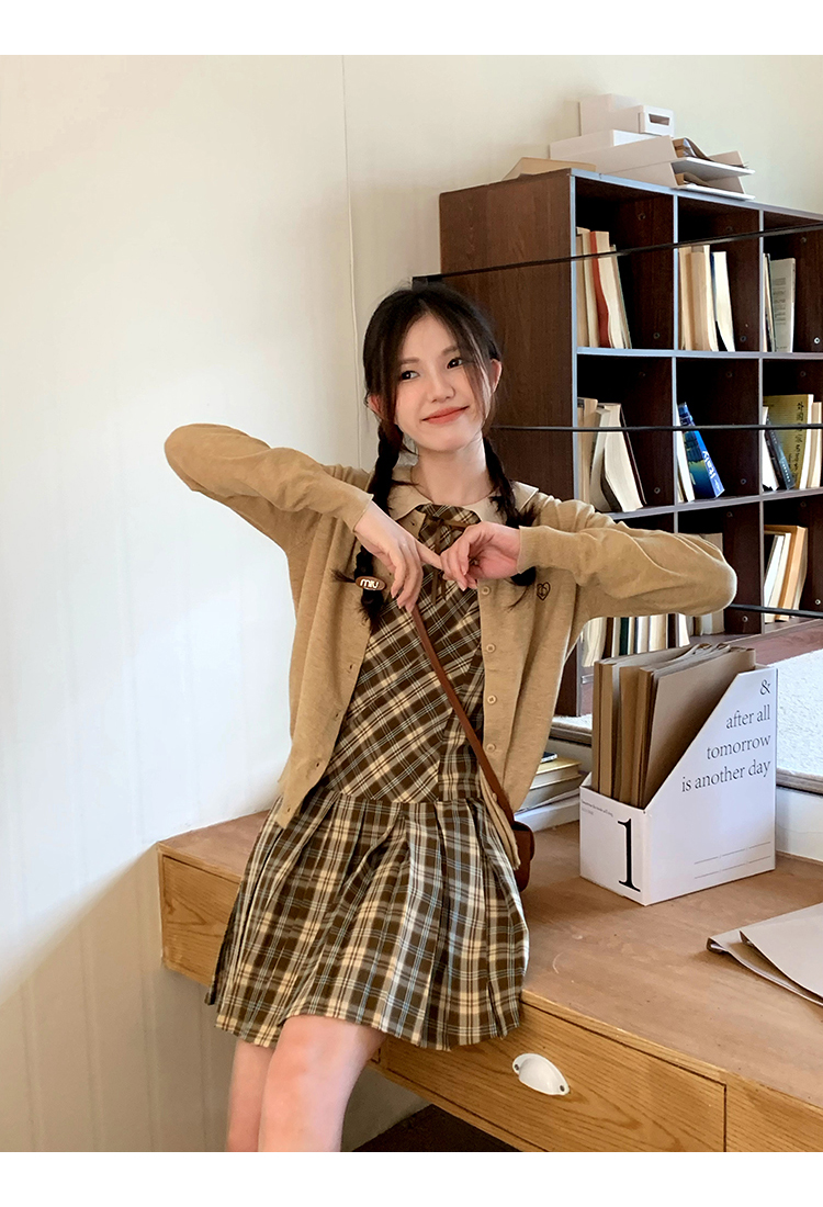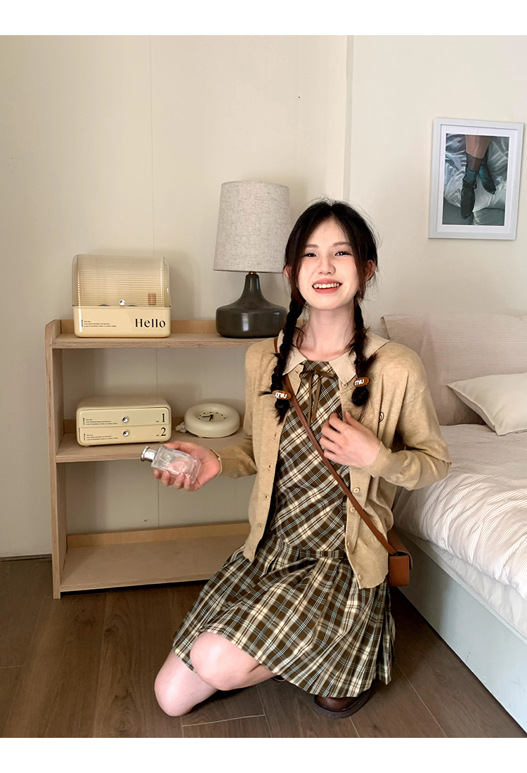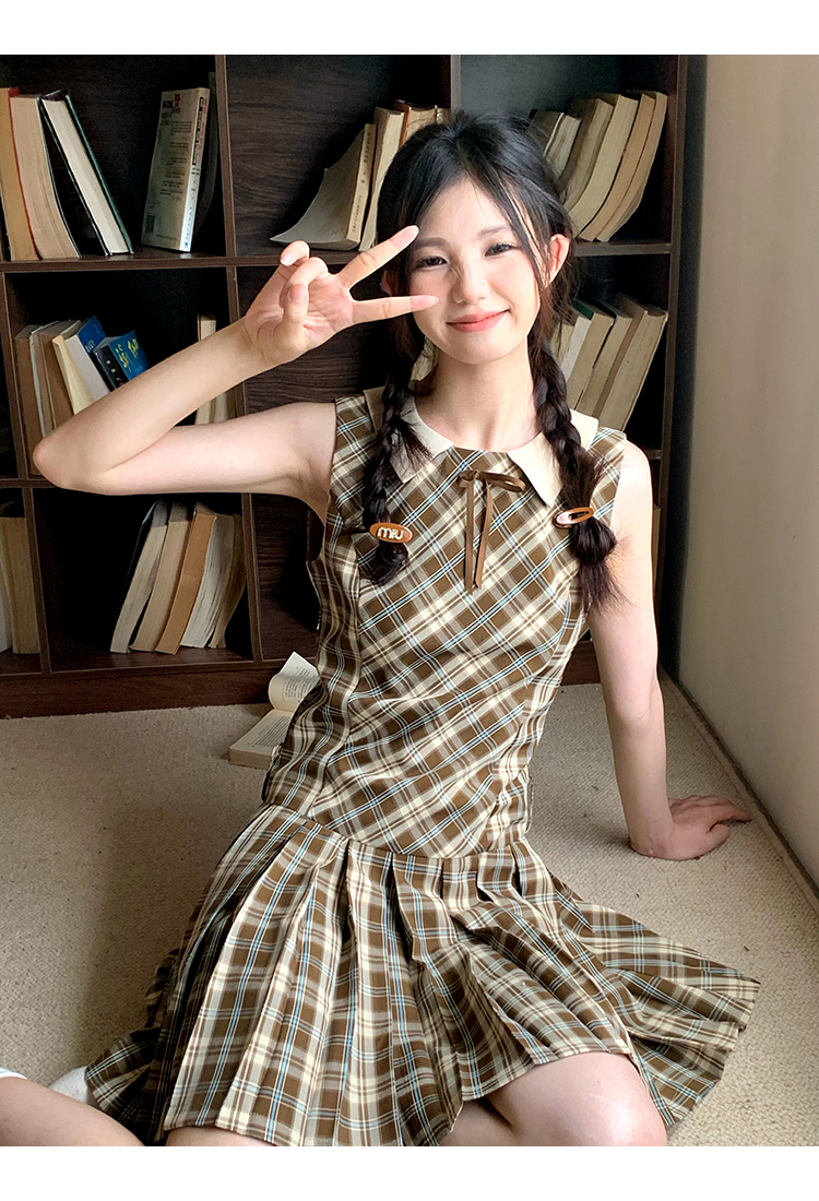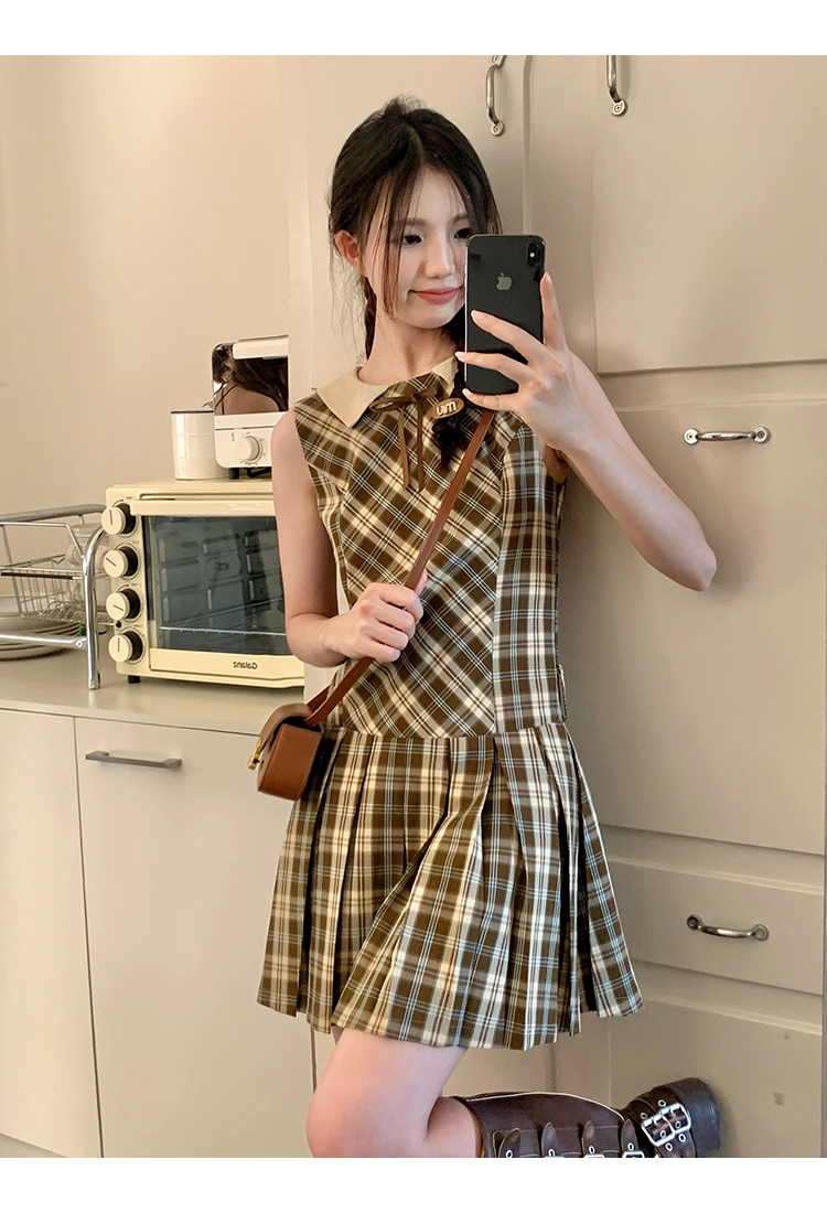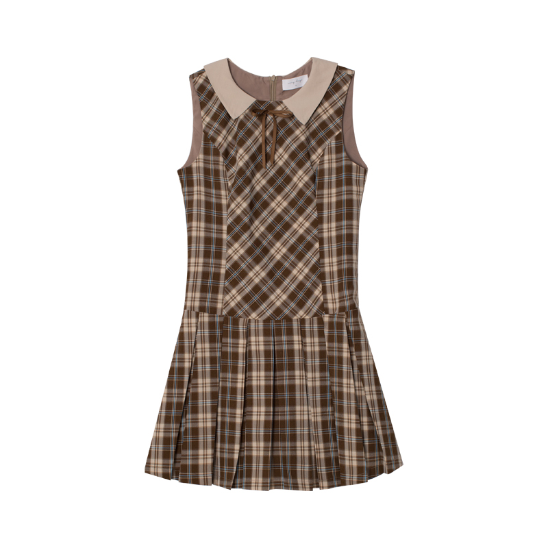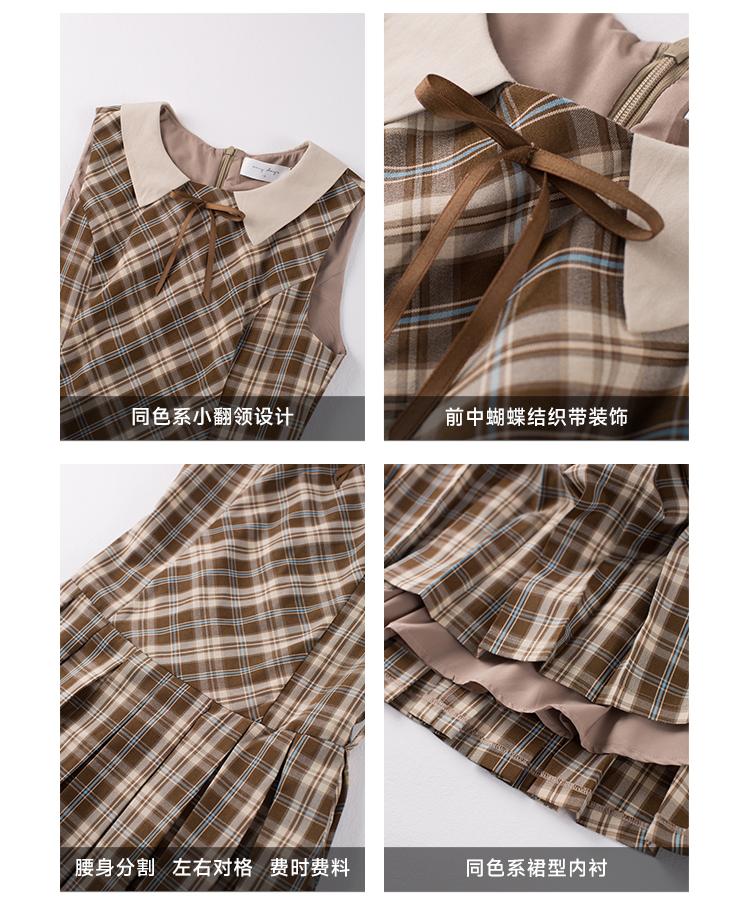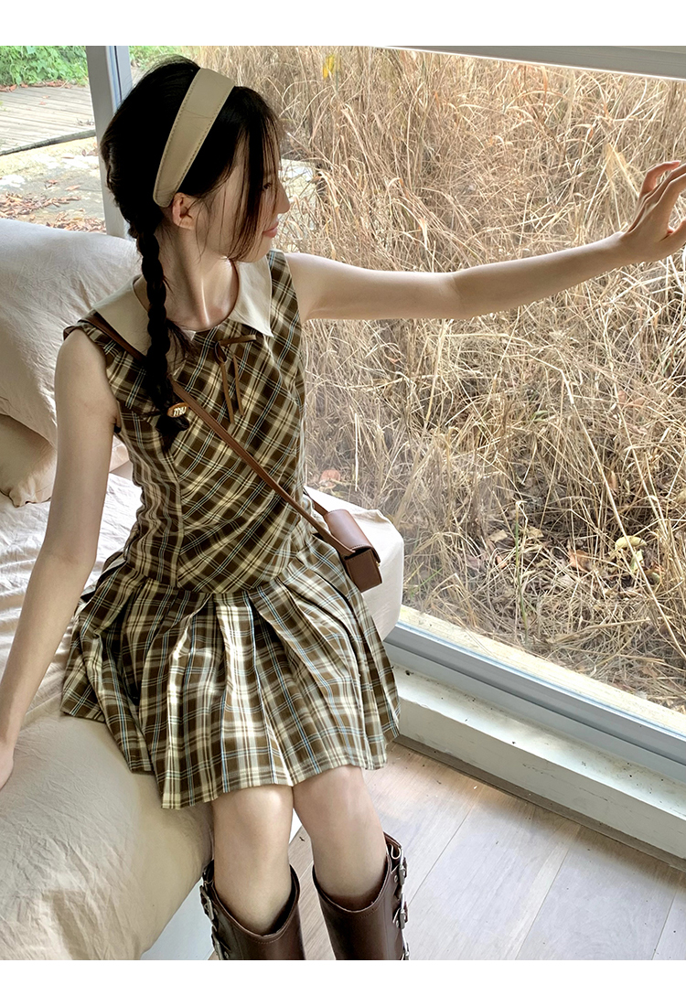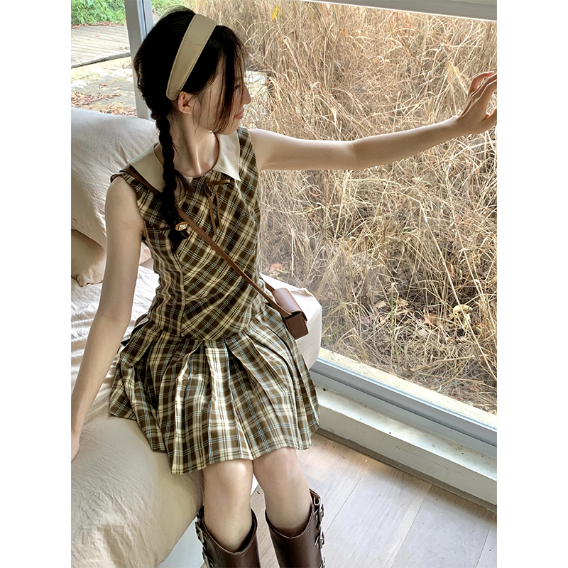 cozydays「霍格沃茨」秋冬季多巴胺格紋無袖洋裝翻領設計感小眾