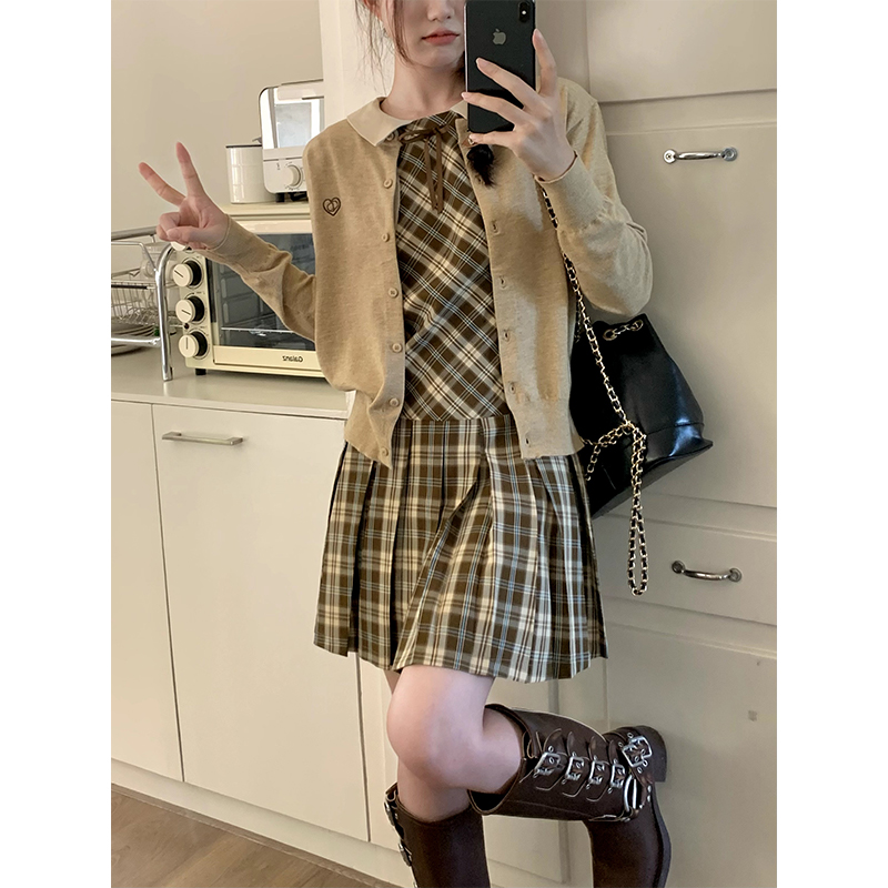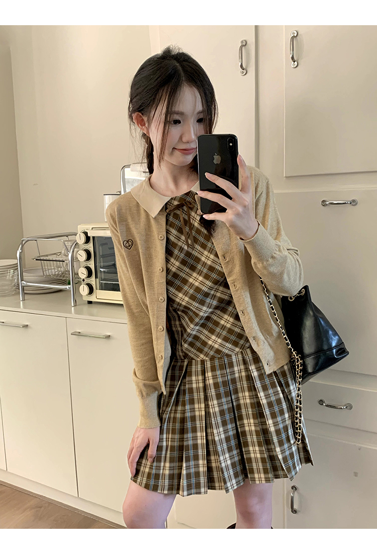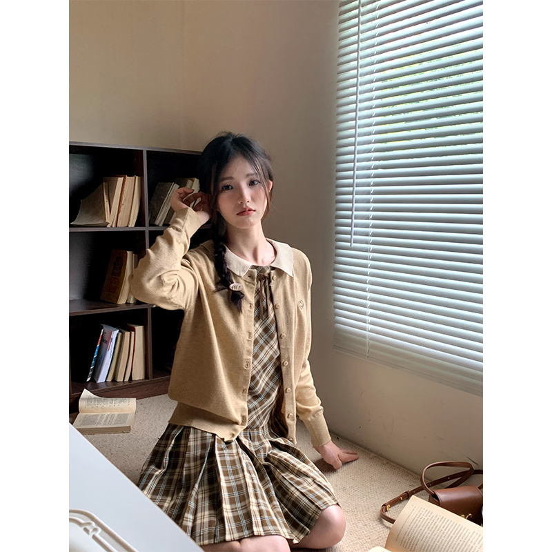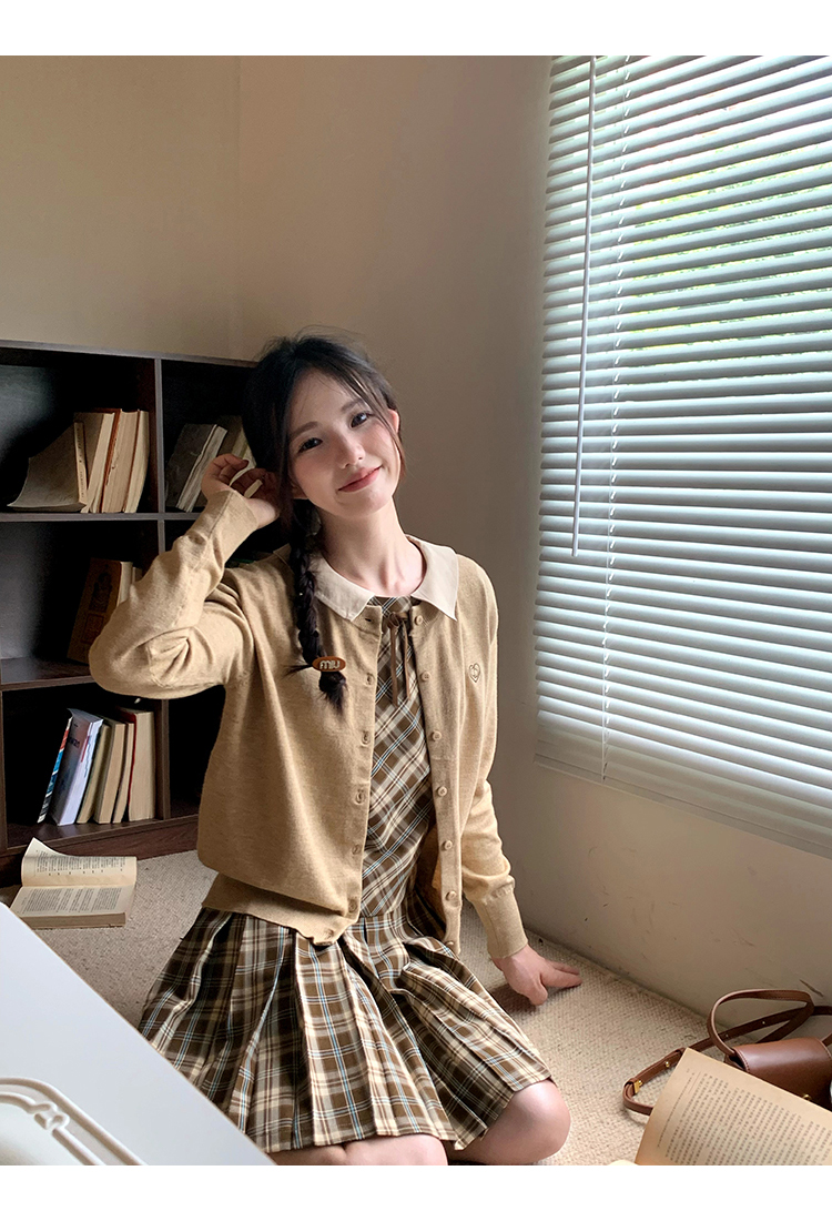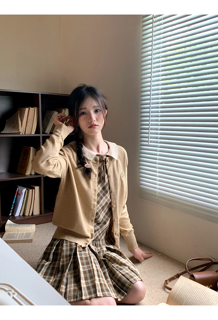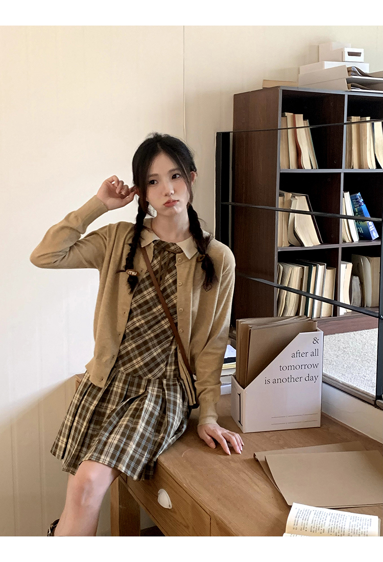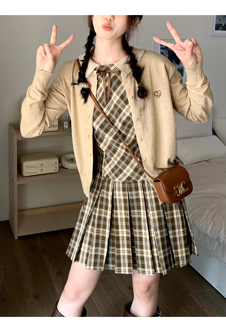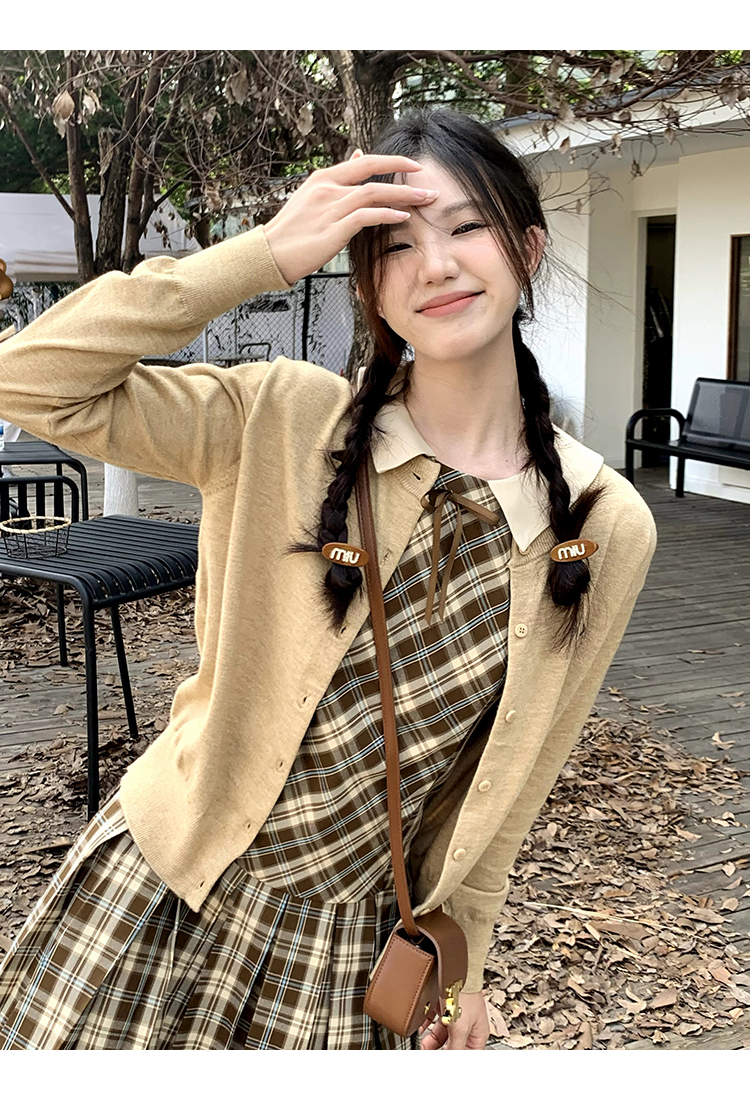 cozydays「霍格沃茨」秋冬季多巴胺格紋無袖洋裝翻領設計感小眾