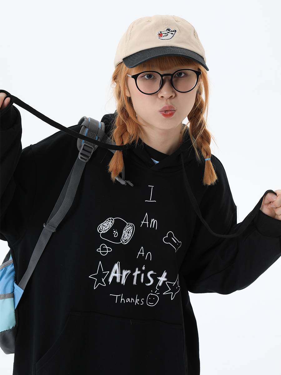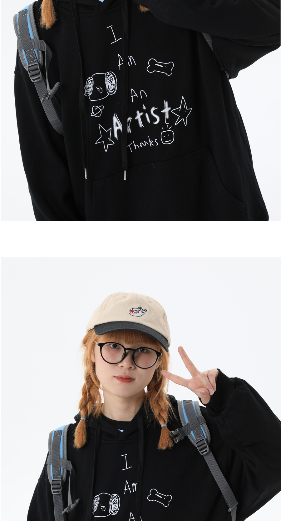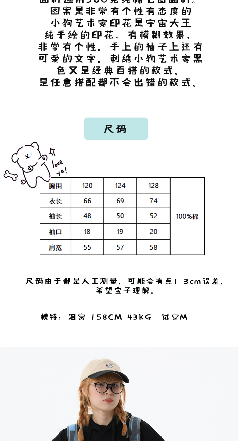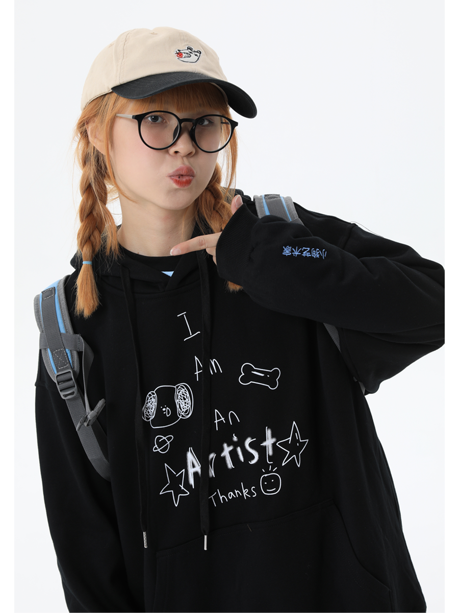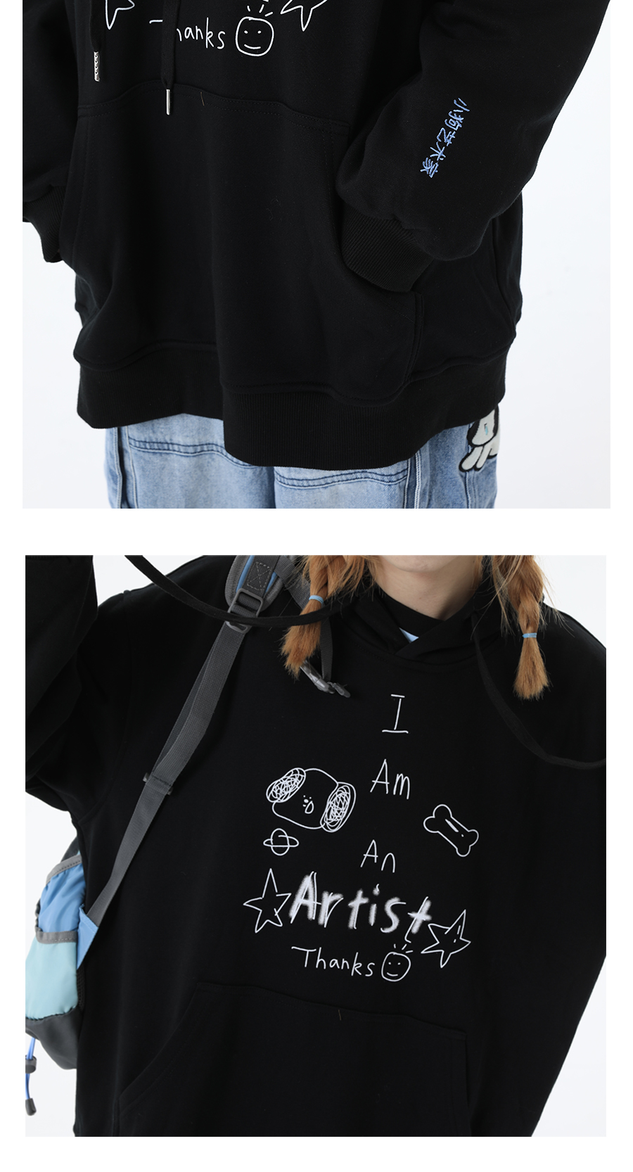 宇宙大王原創手繪塗鴉小狗藝術家刺繡連帽運動衫