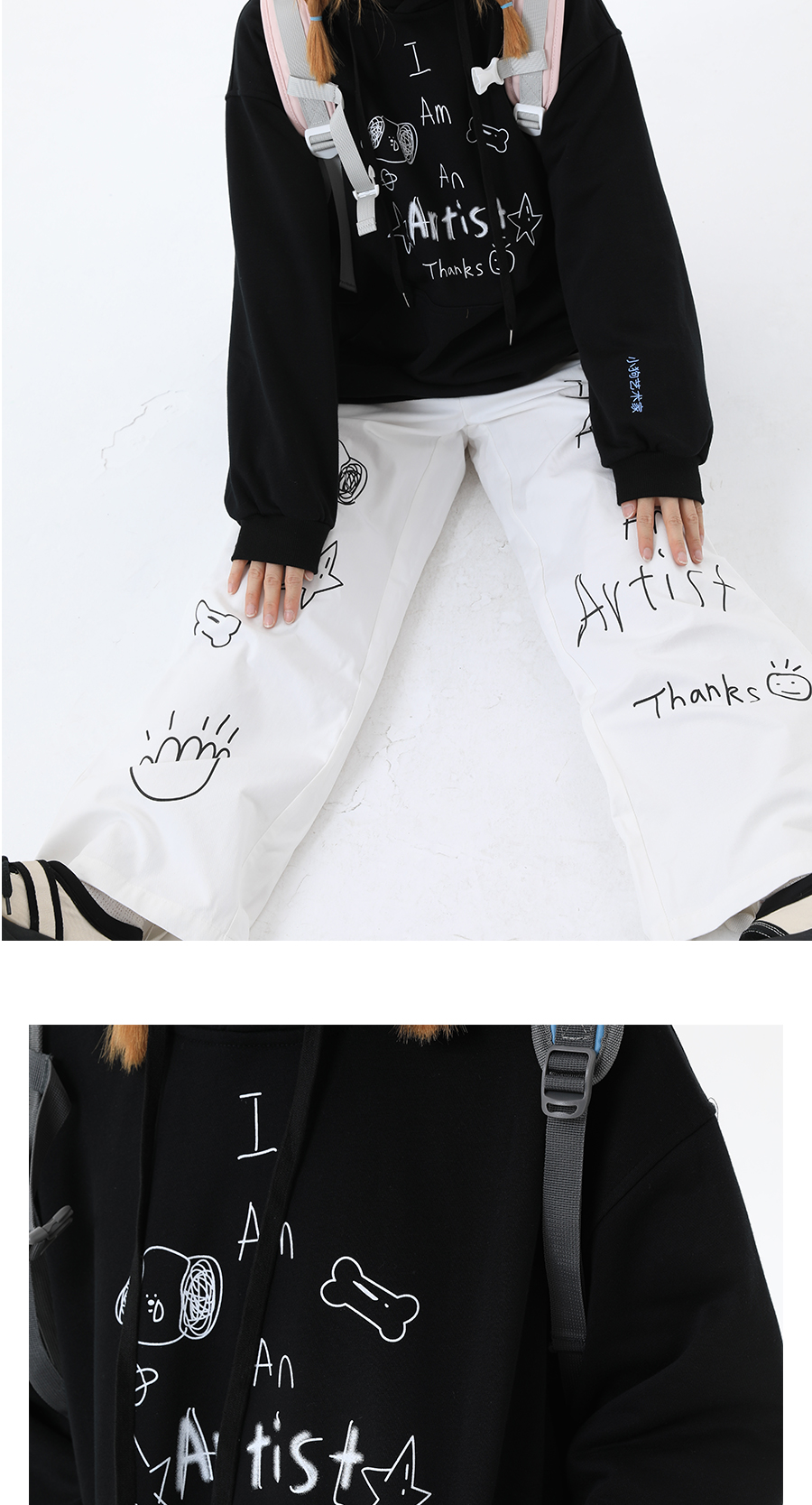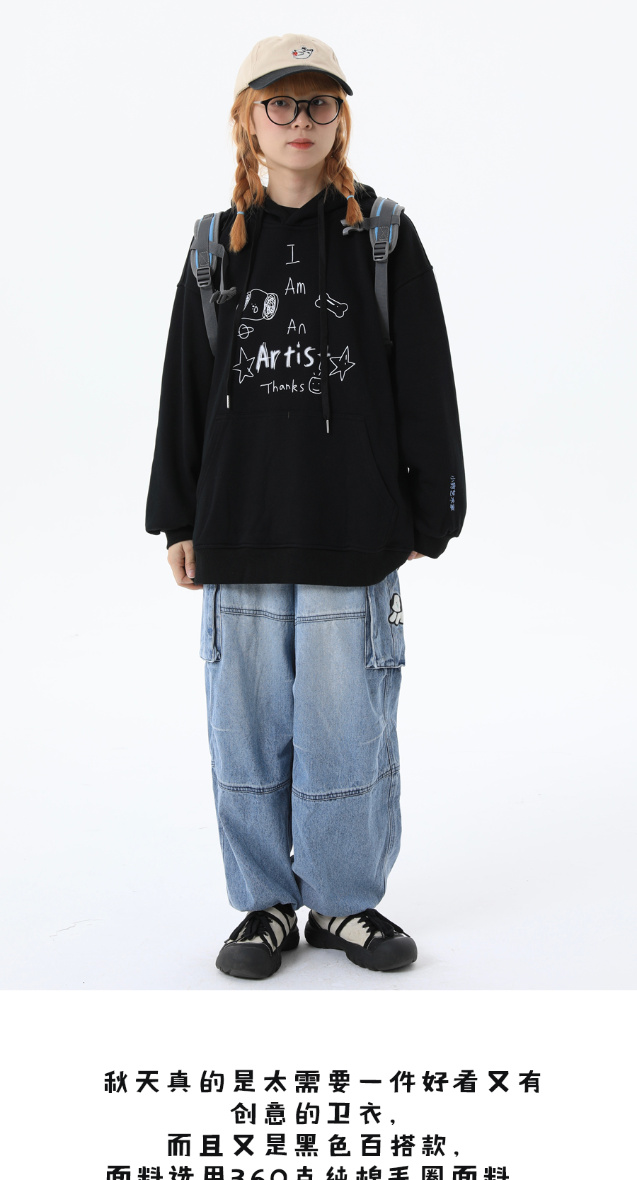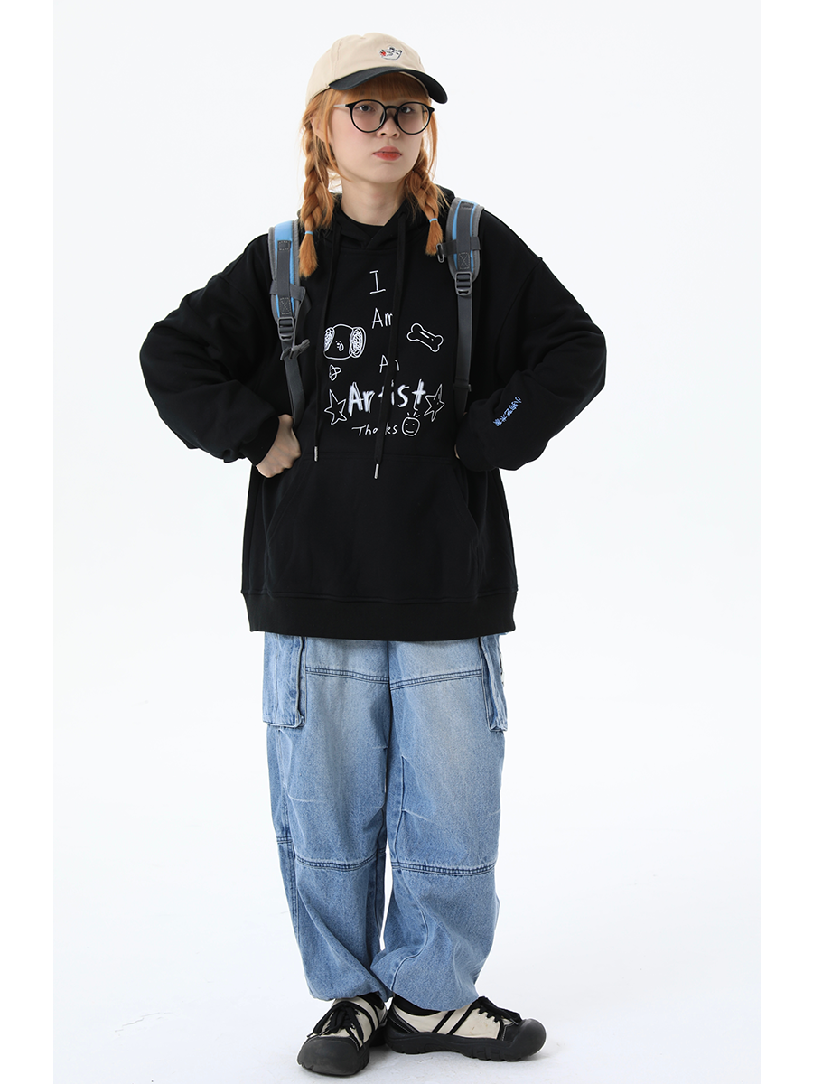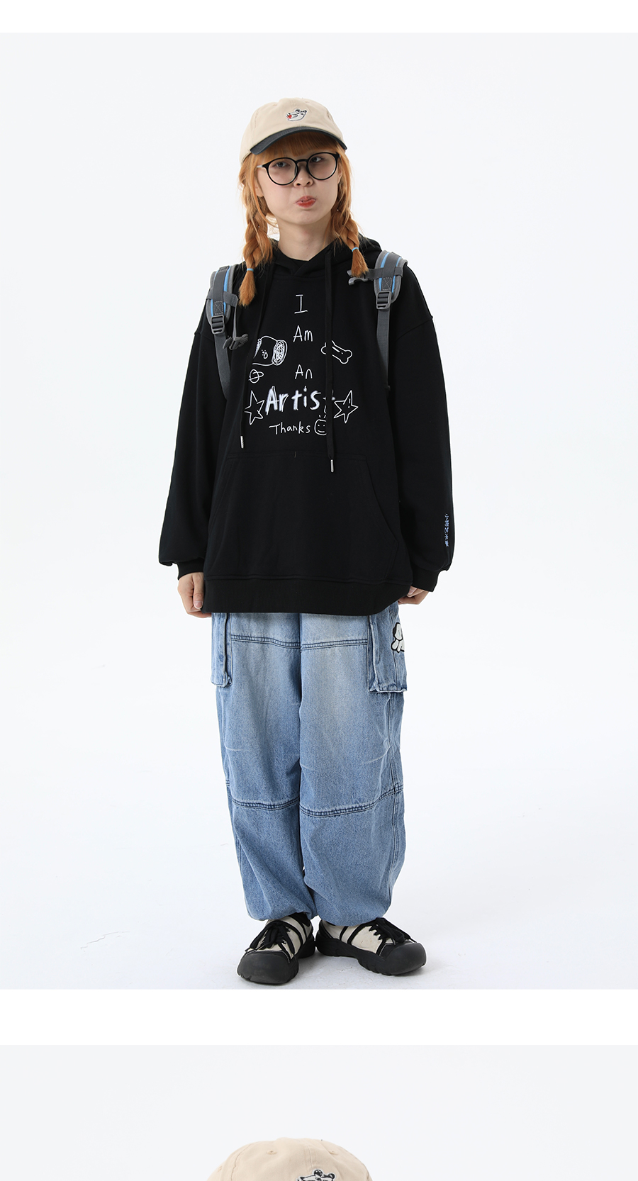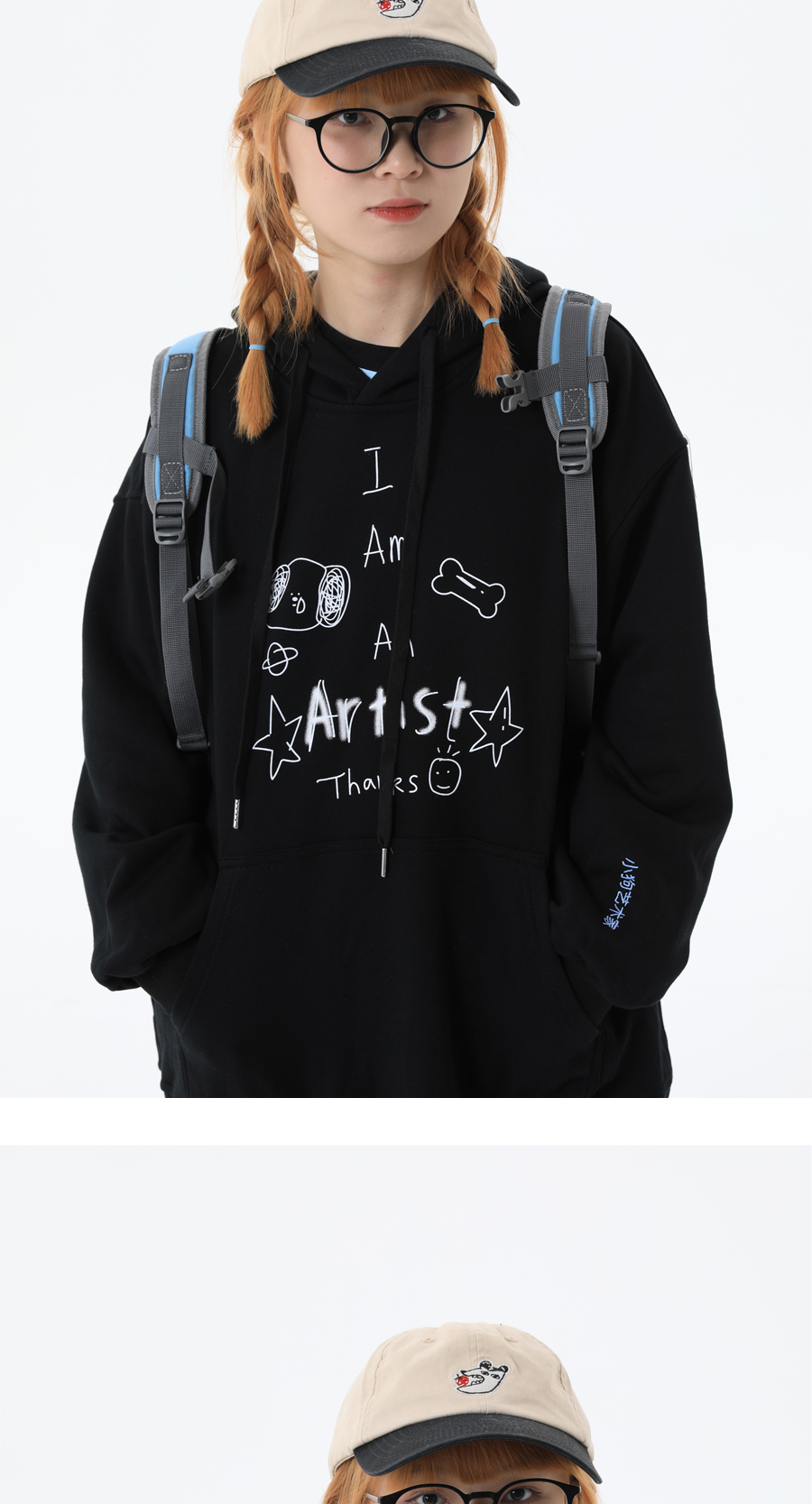 宇宙大王原創手繪塗鴉小狗藝術家刺繡連帽運動衫