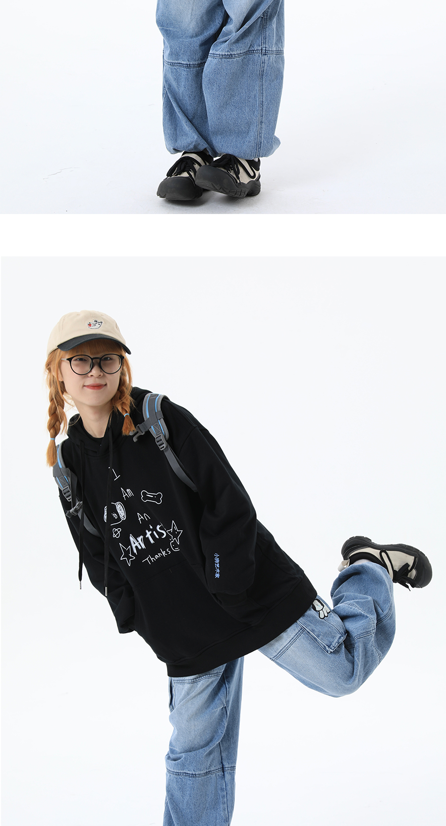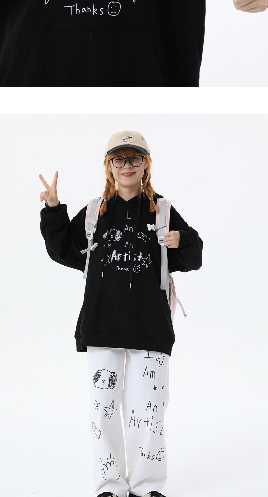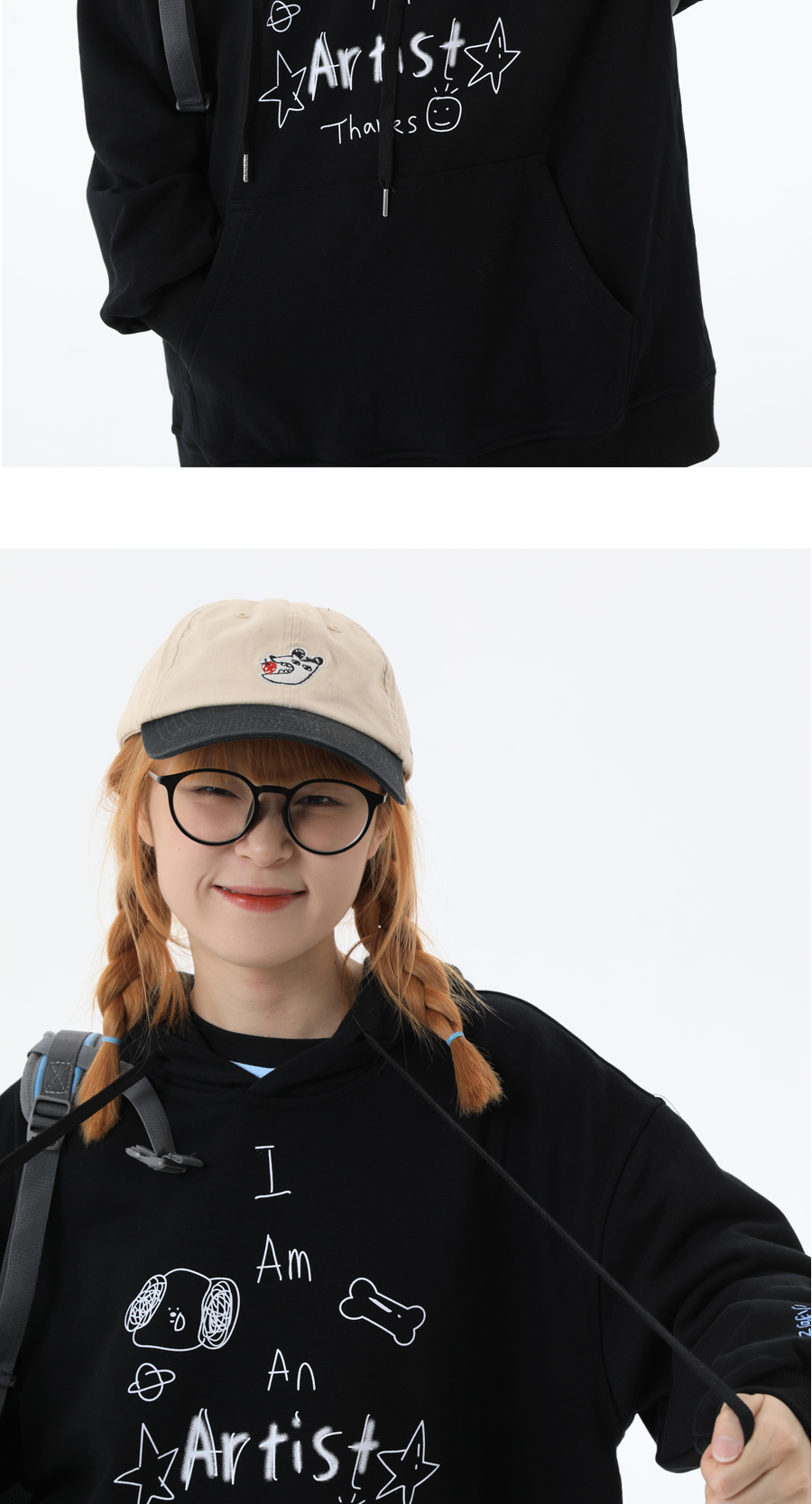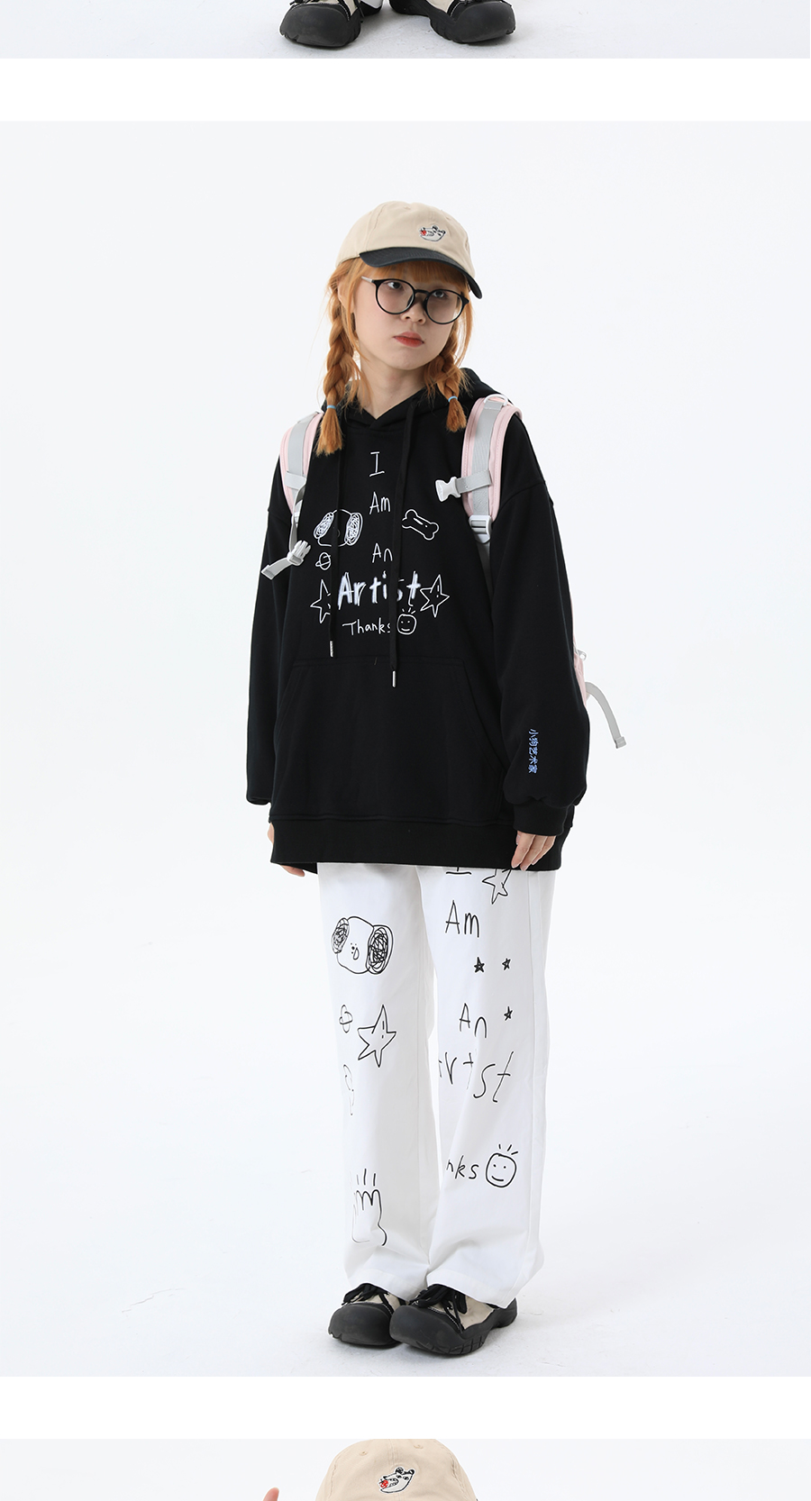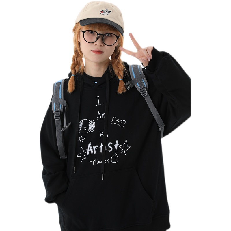宇宙大王原創手繪塗鴉小狗藝術家刺繡連帽運動衫