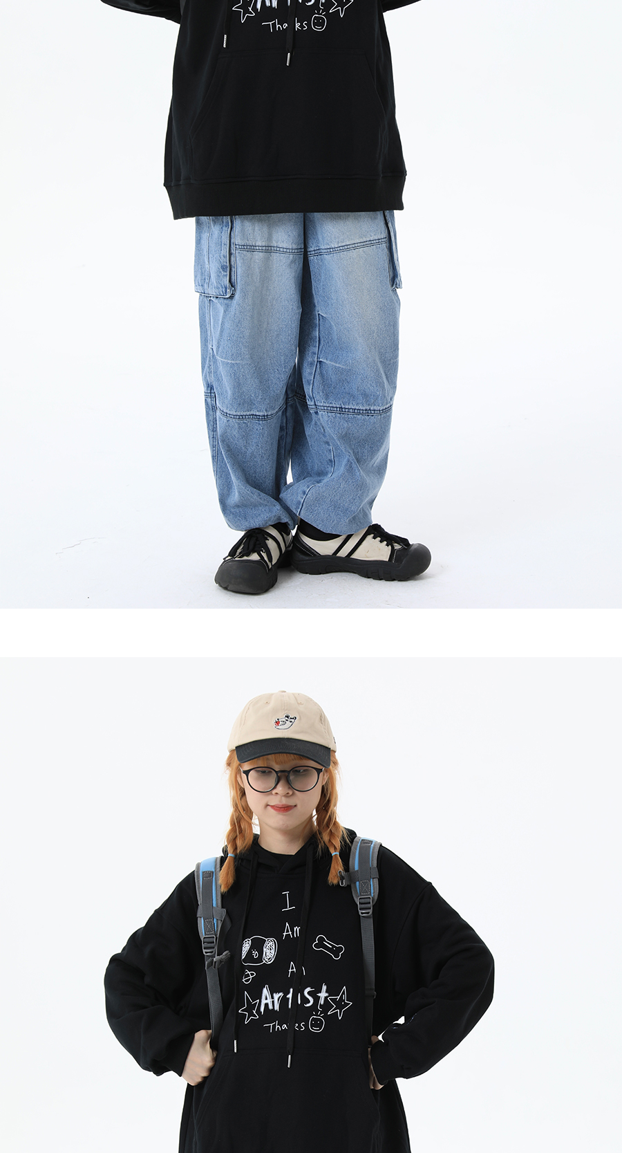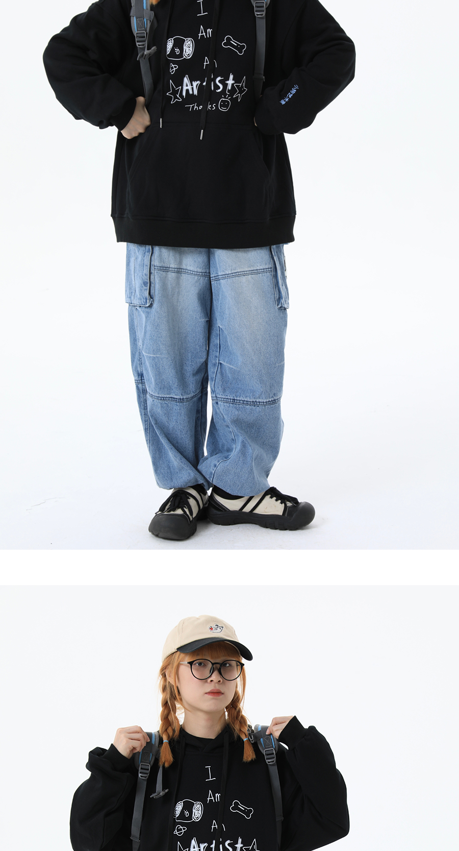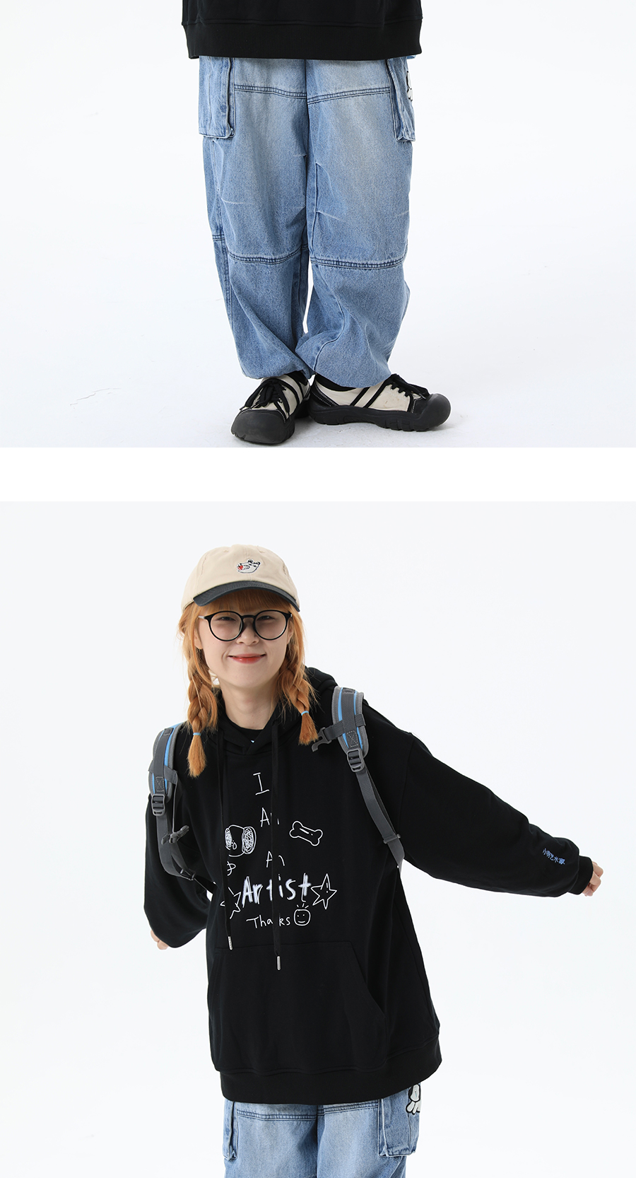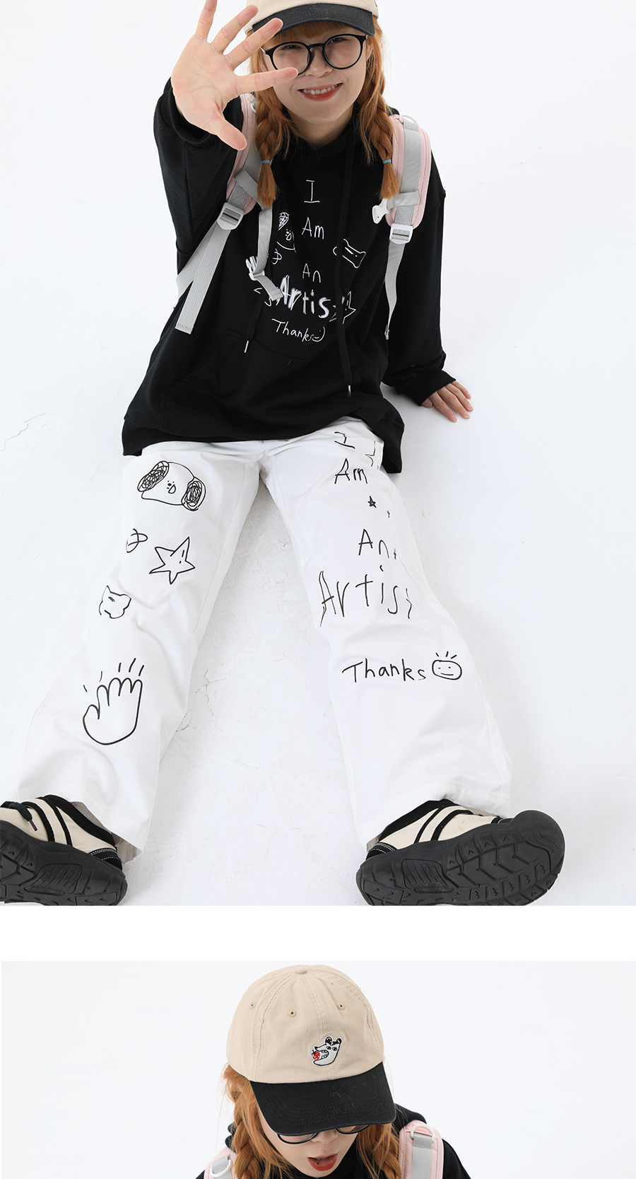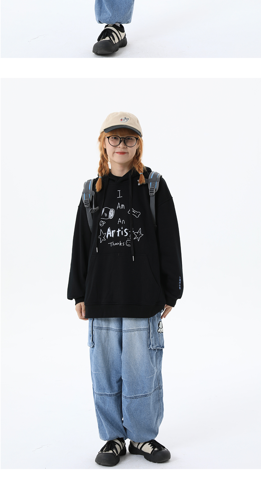 宇宙大王原創手繪塗鴉小狗藝術家刺繡連帽運動衫