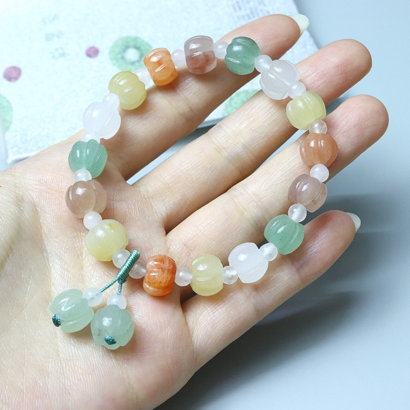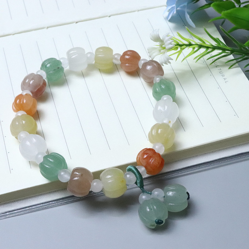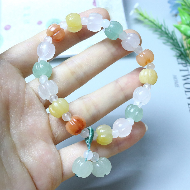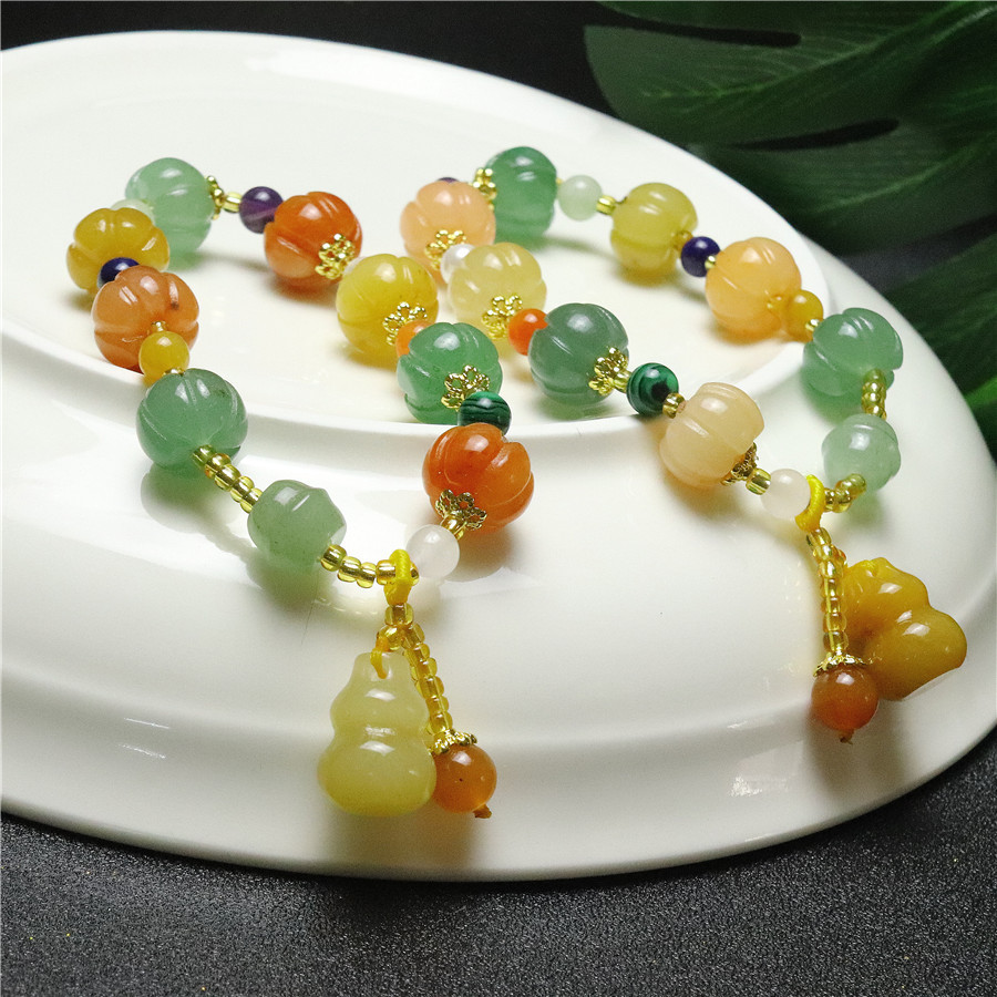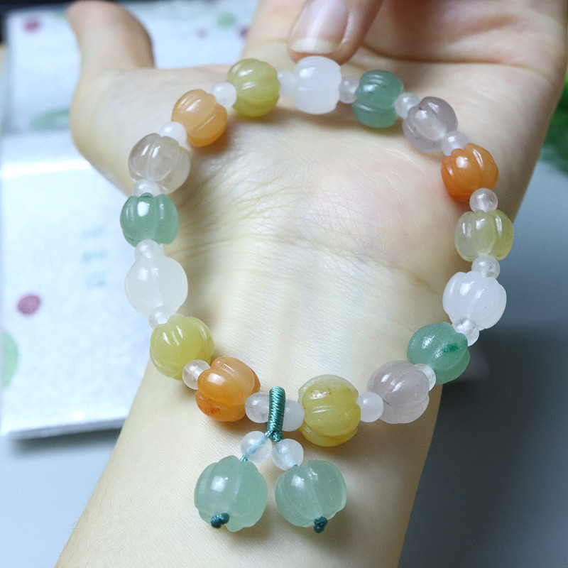 颜色 三彩南瓜珠手串,南瓜珠手串,苹果桶珠,三彩南瓜竹节,风铃花,10mm南瓜手串